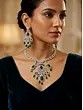 Green Stone Studded Kundan Bridal Necklace Set with Earrings