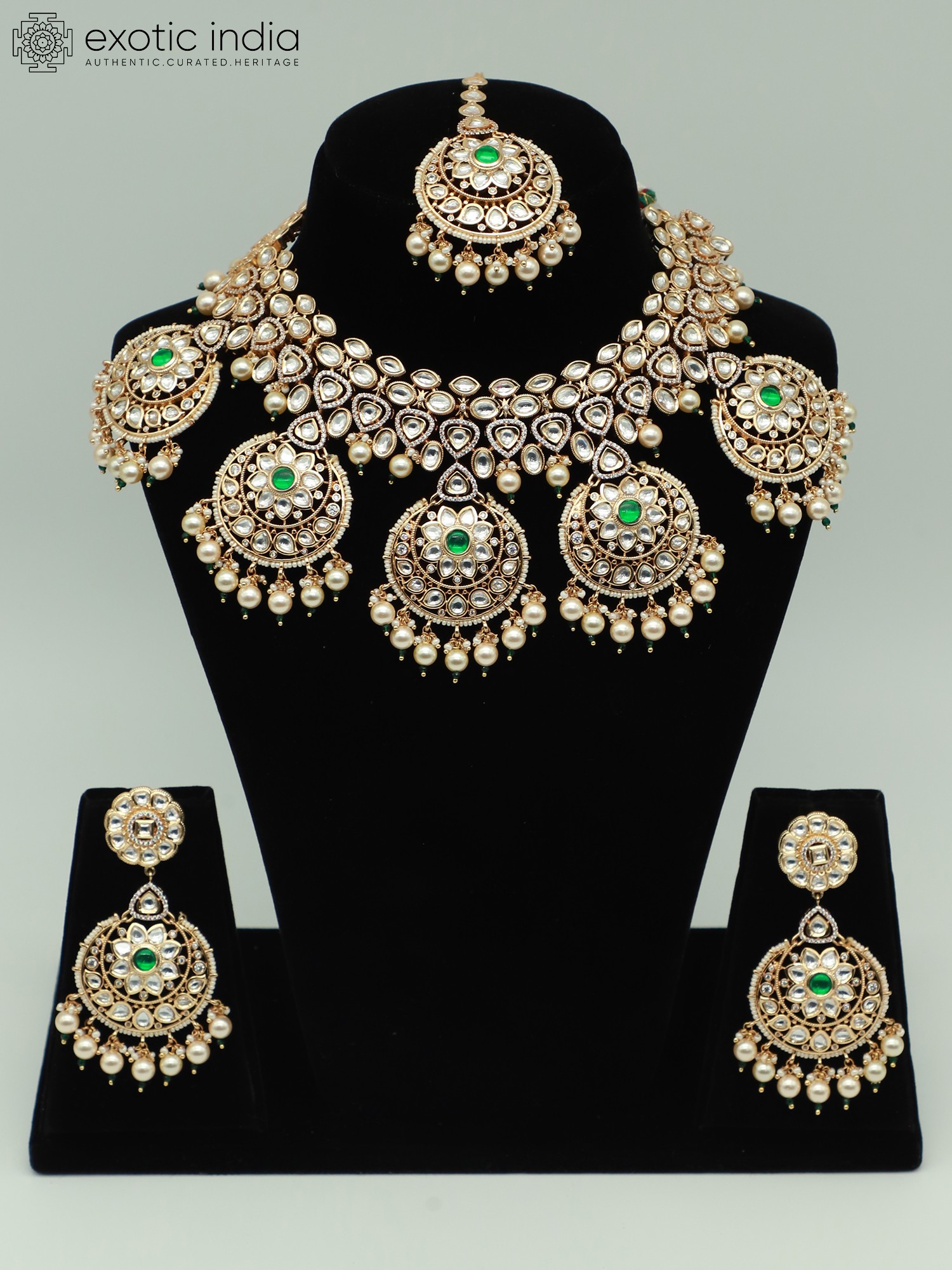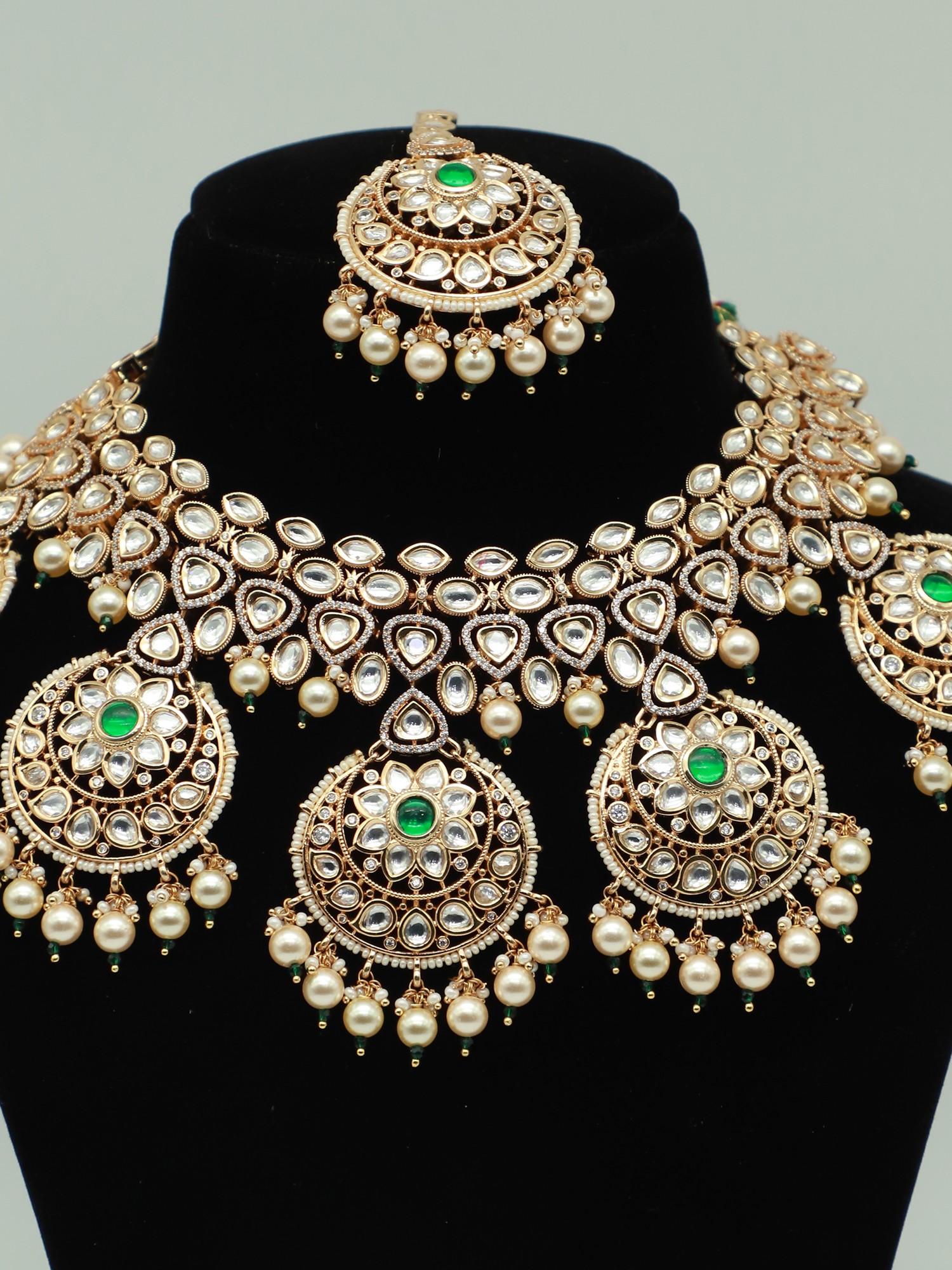 NECKLACE : 20 INCH LENGTH X 5.3 INCH WIDTH EARRINGS : 2.5 INCH HEIGHT X 1.5 INCH WIDTH Mangtika - 5.2 Inch Length