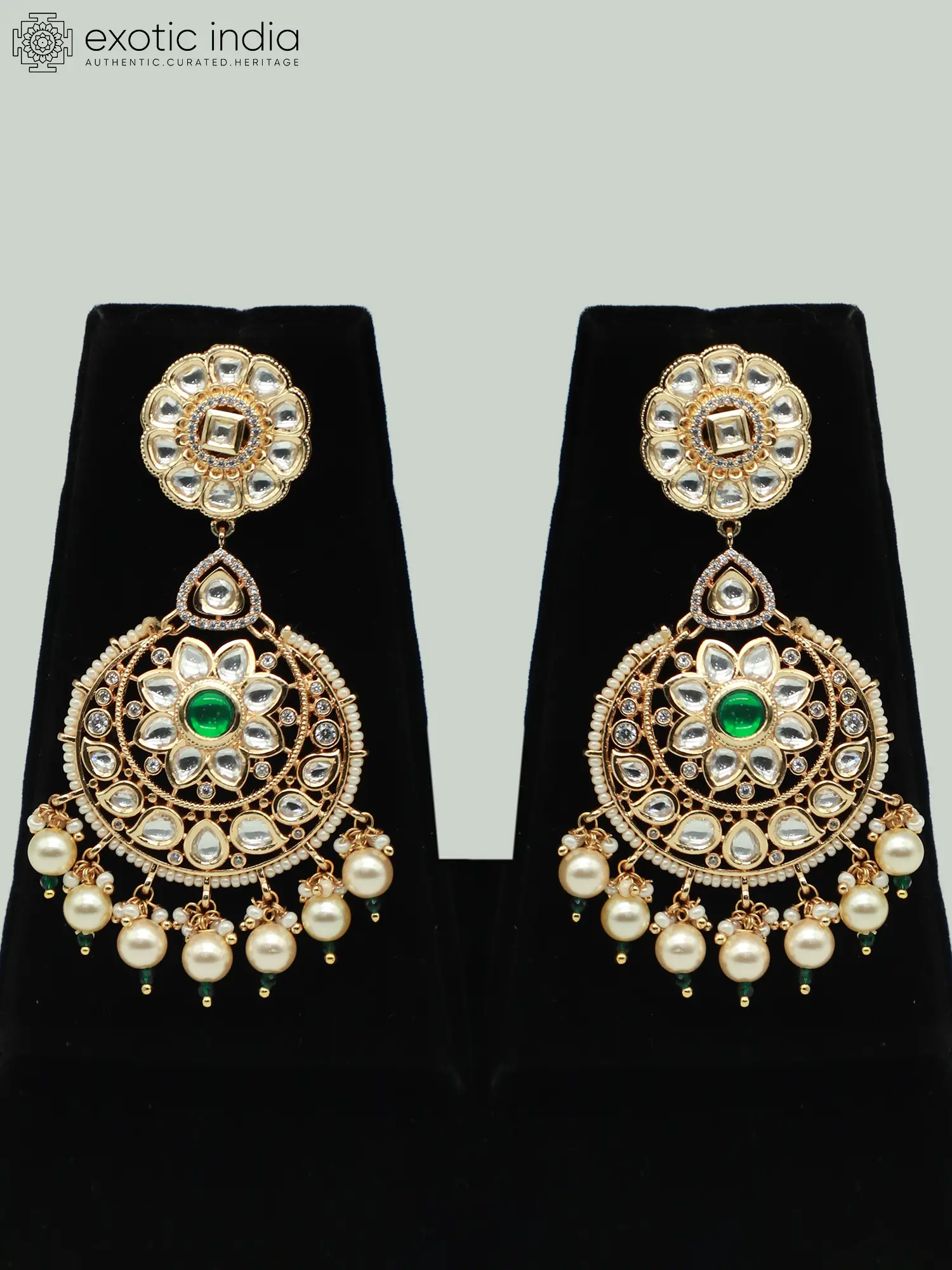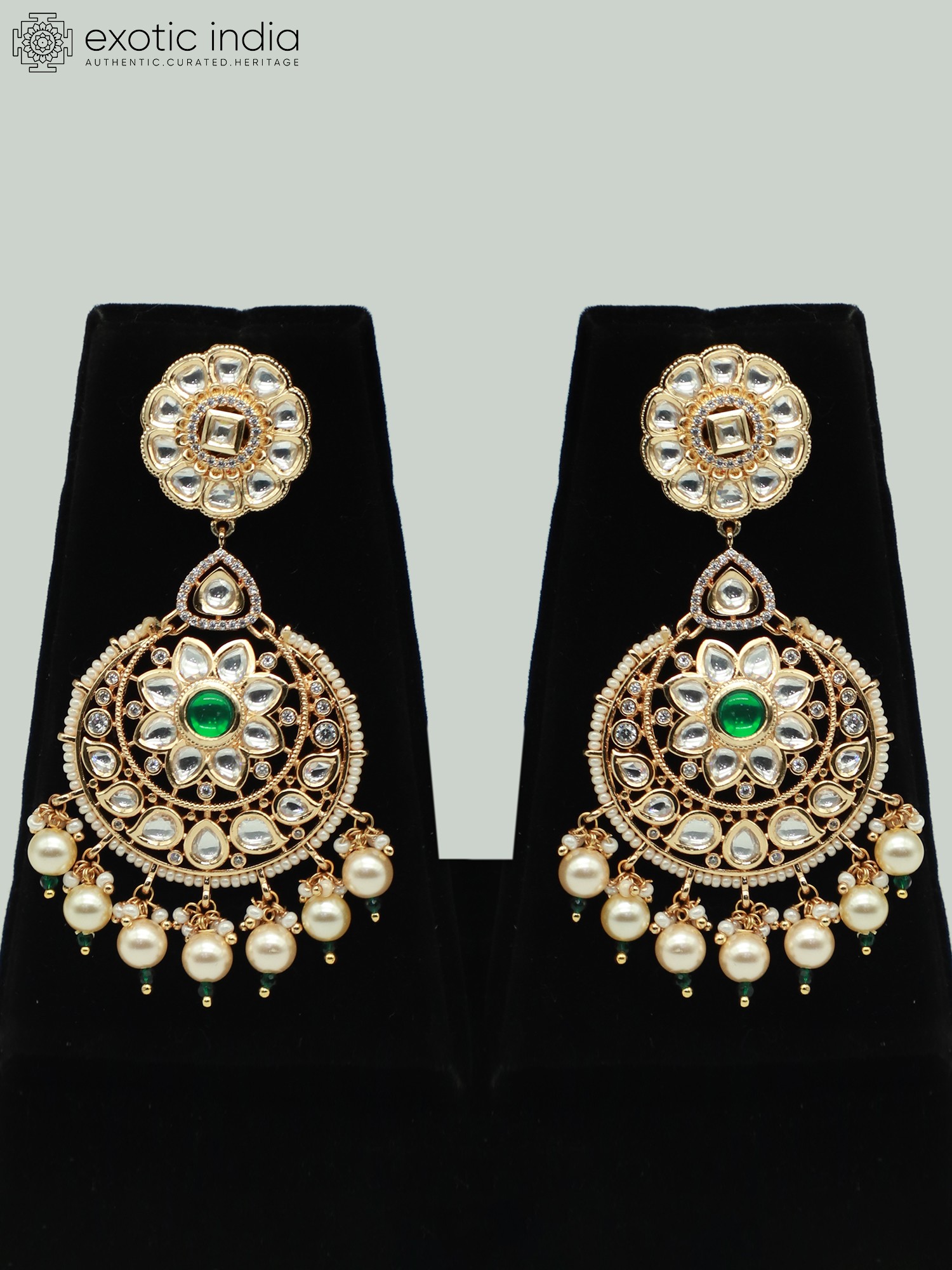 Brass Necklace Set With Beautiful Moissanite Kundan Stone And Earrings