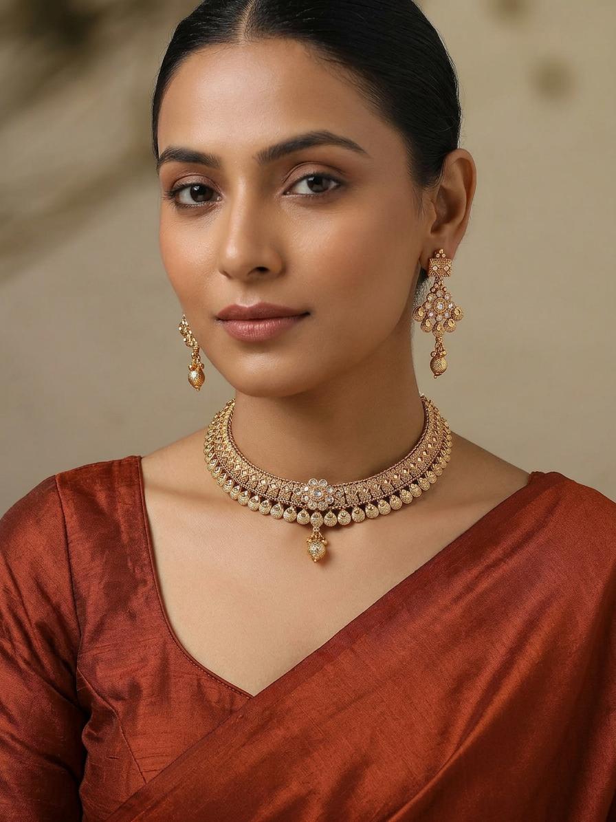 Elegance Redefined: A Stunning Brass Necklace and Earring Set
