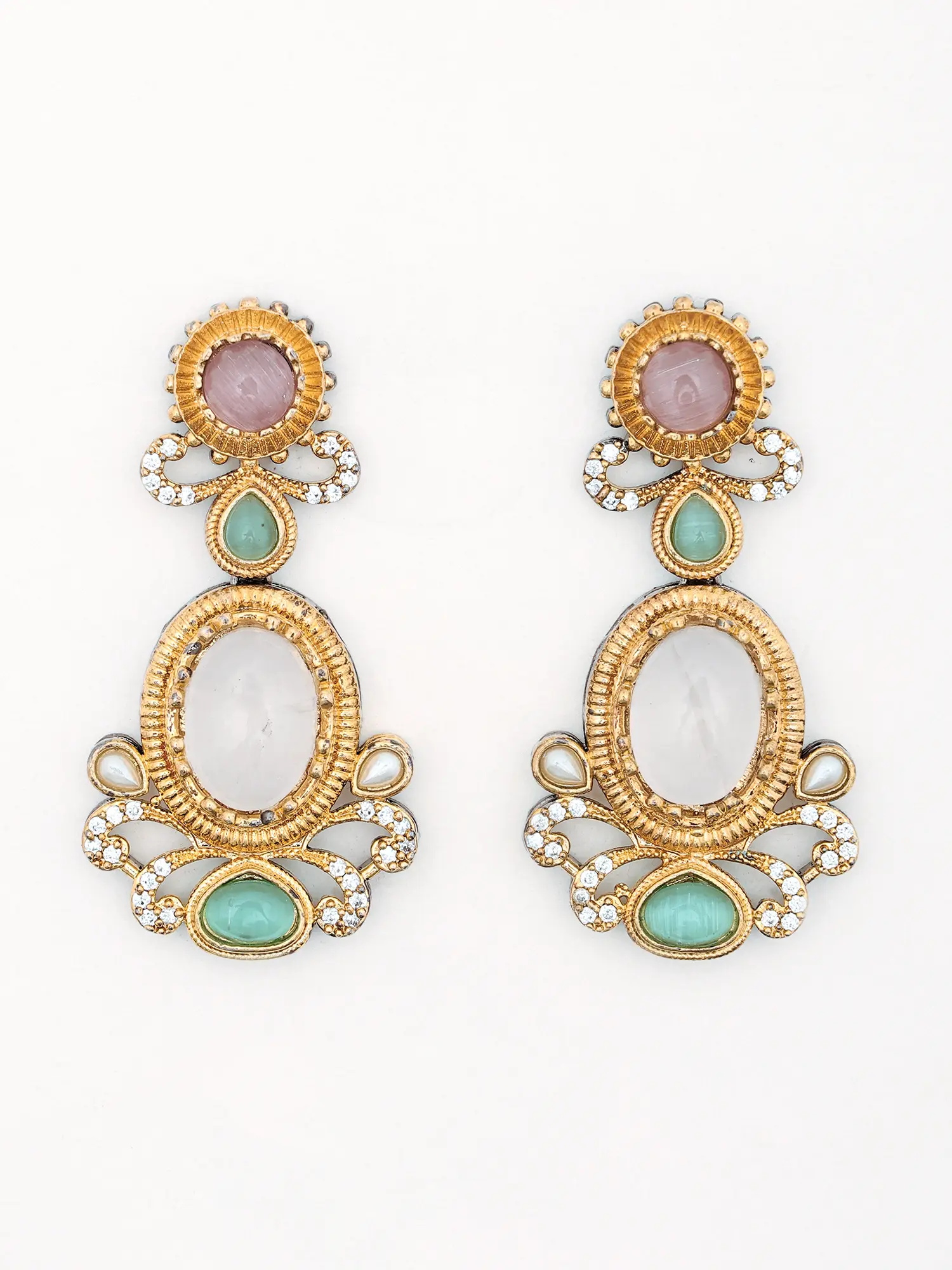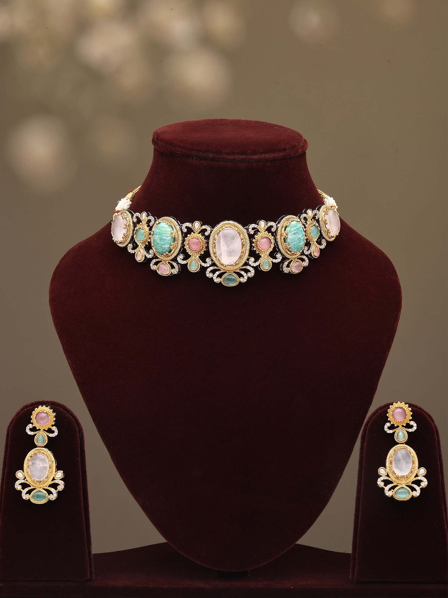 Multicolored Stone Studded Necklace and Earrings Set