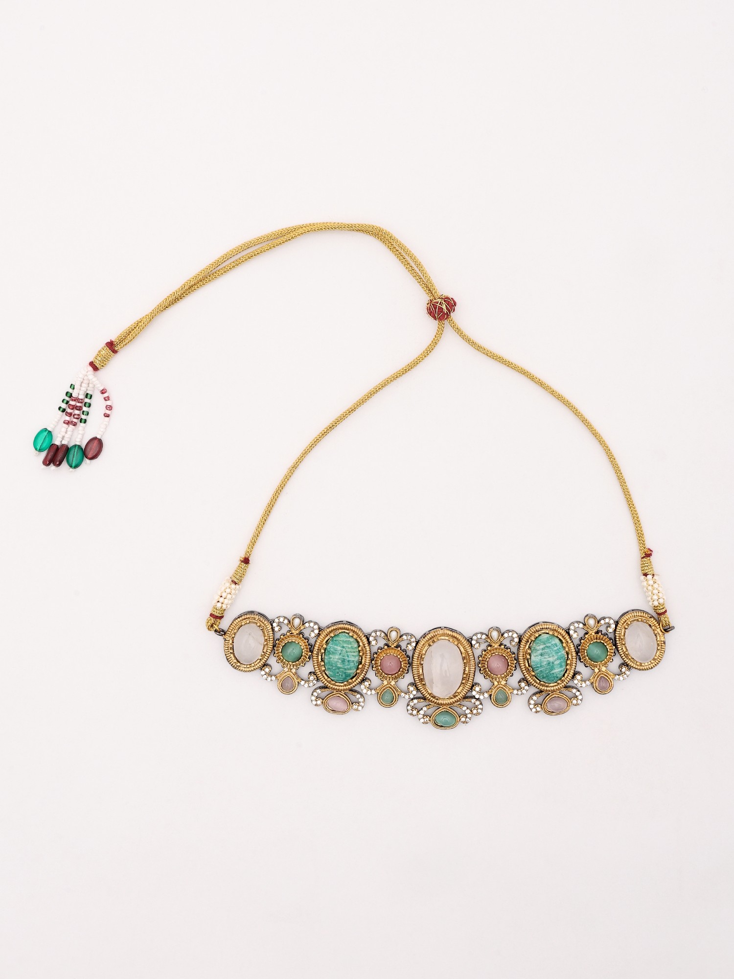 Studded Choker Set With Earrings And Drops Beads
