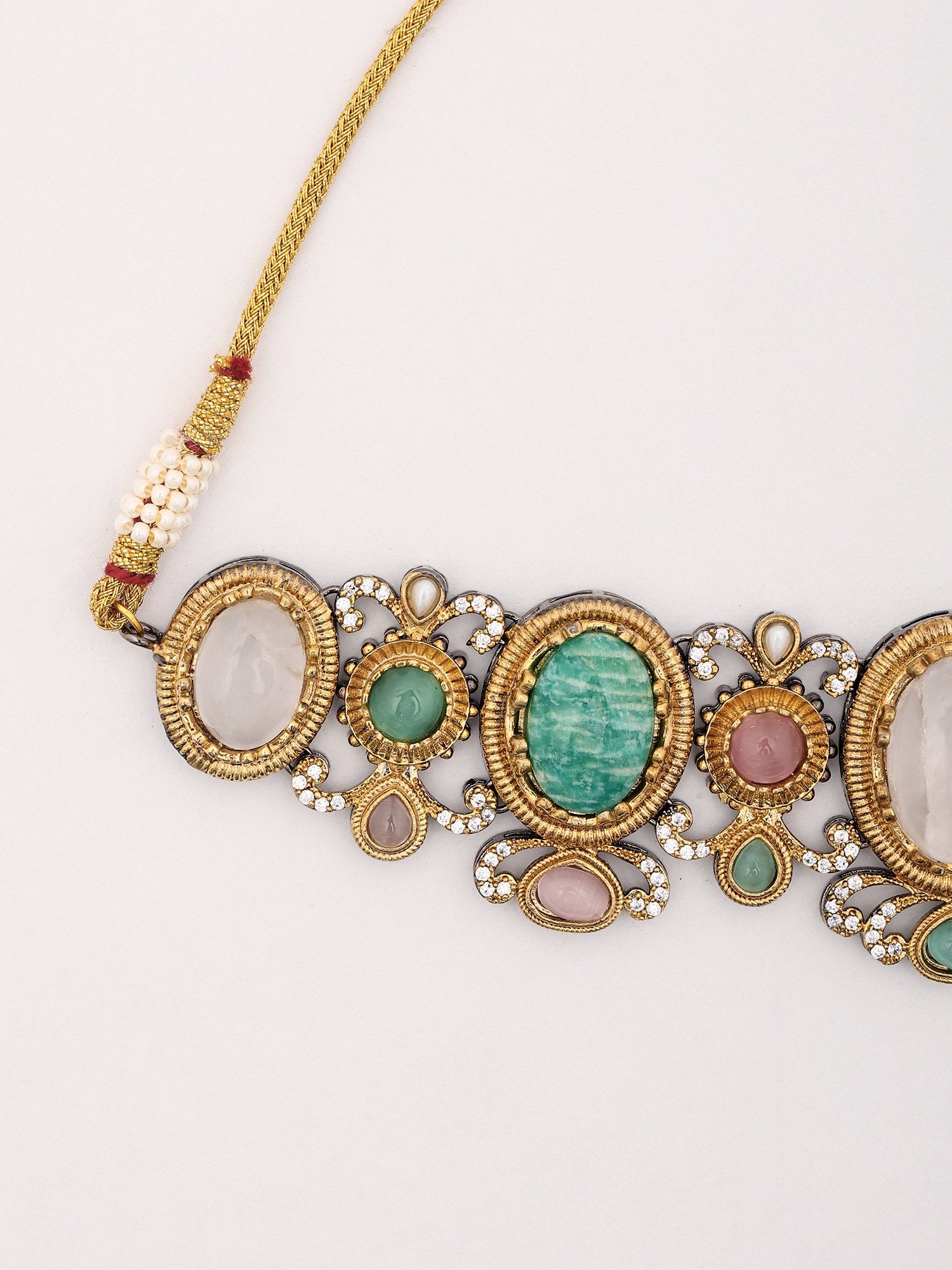 Women Choker Set With Earrings And Pearl Drop Beads