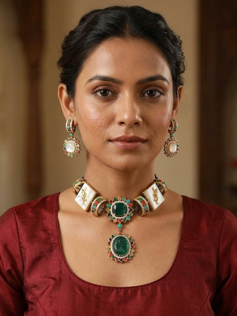 This necklace set is more than just jewelry; it's an investment in timeless elegance. Crafted with meticulous attention to detail, each stone is carefully selected and securely set to ensure both durability and aesthetic appeal. The robust brass construction ensures the set will remain a cherished addition to your jewelry collection for years to come. This set is ideal for special occasions, adding a touch of grandeur to any formal event or celebration.