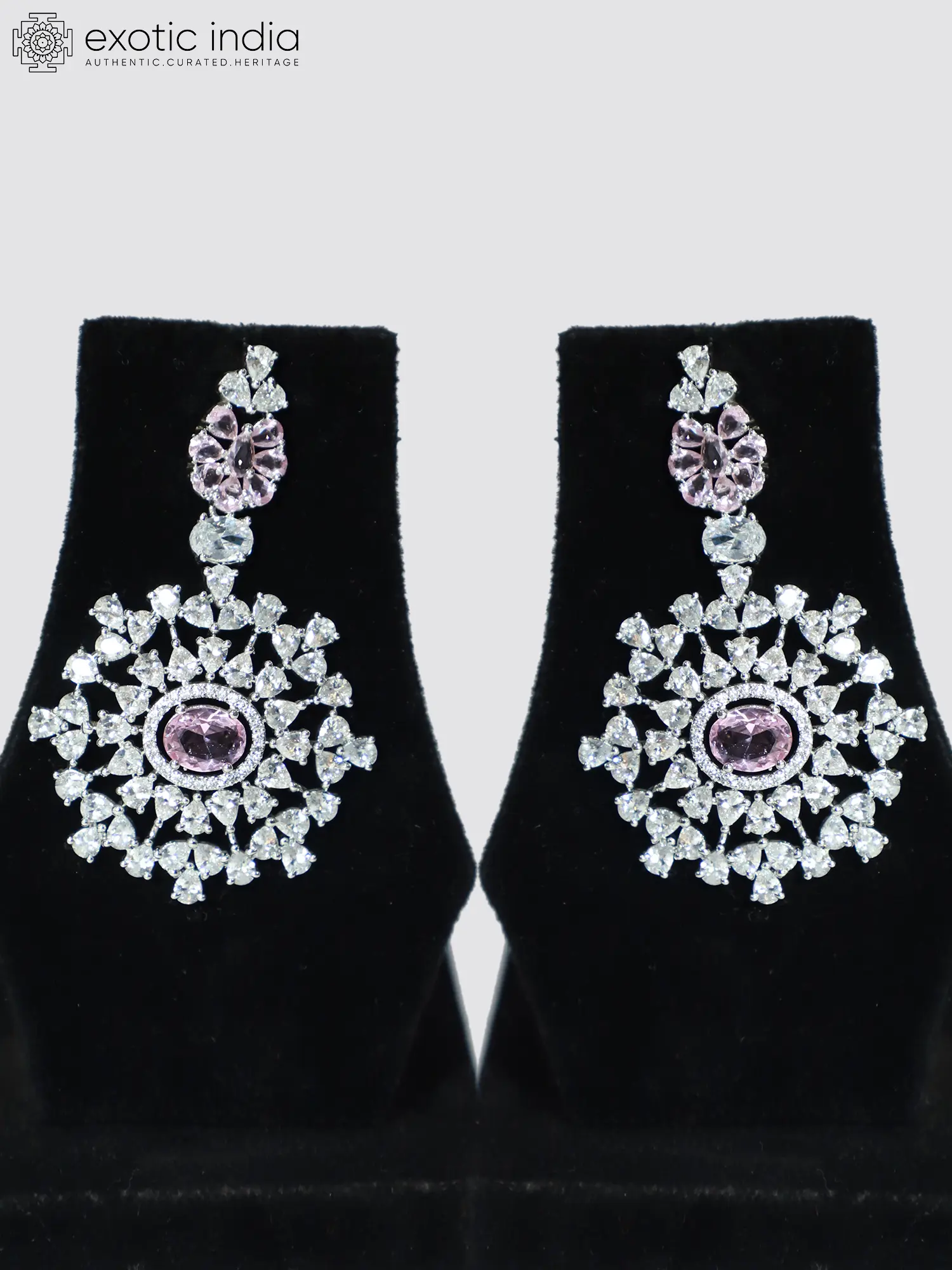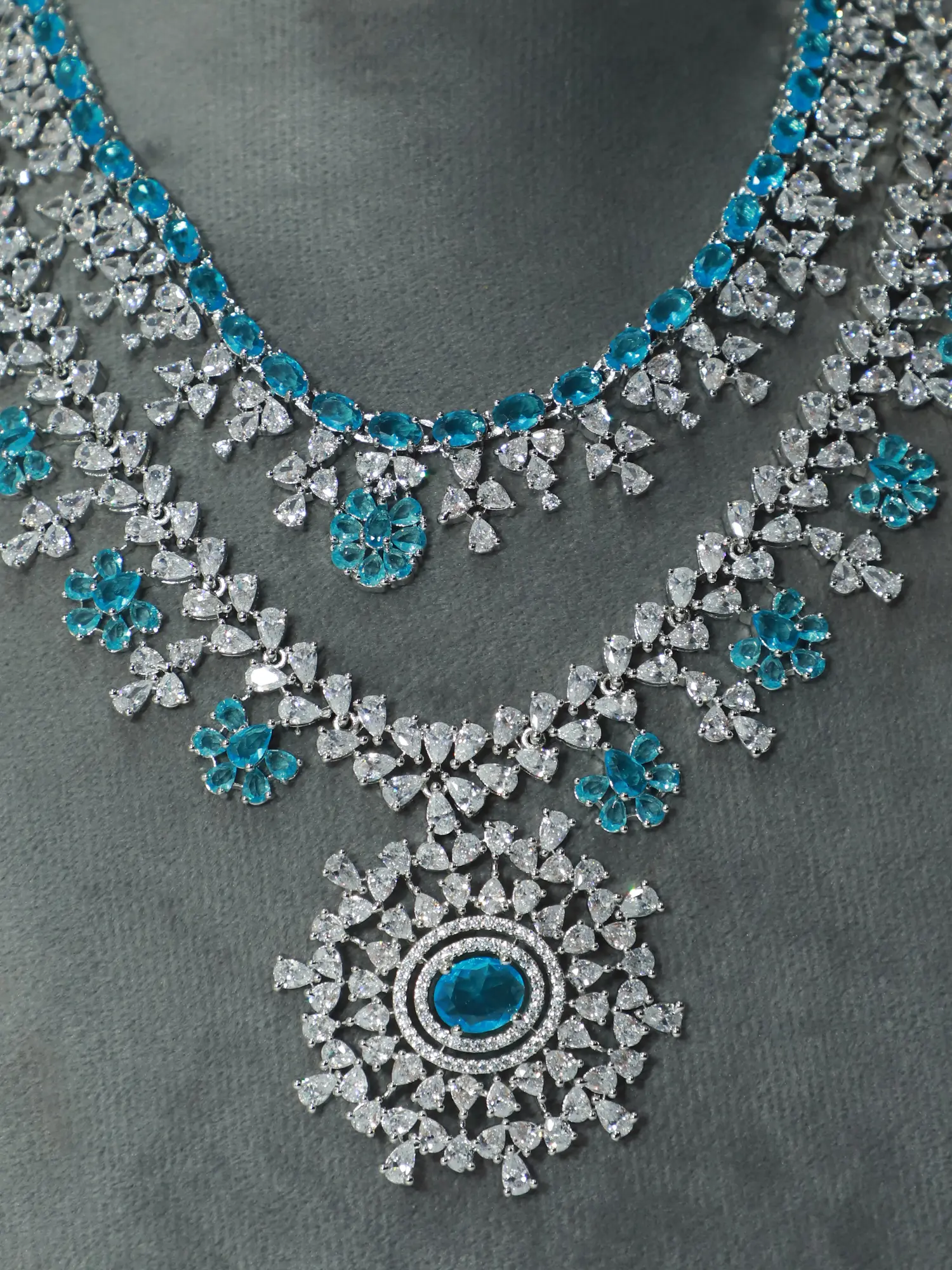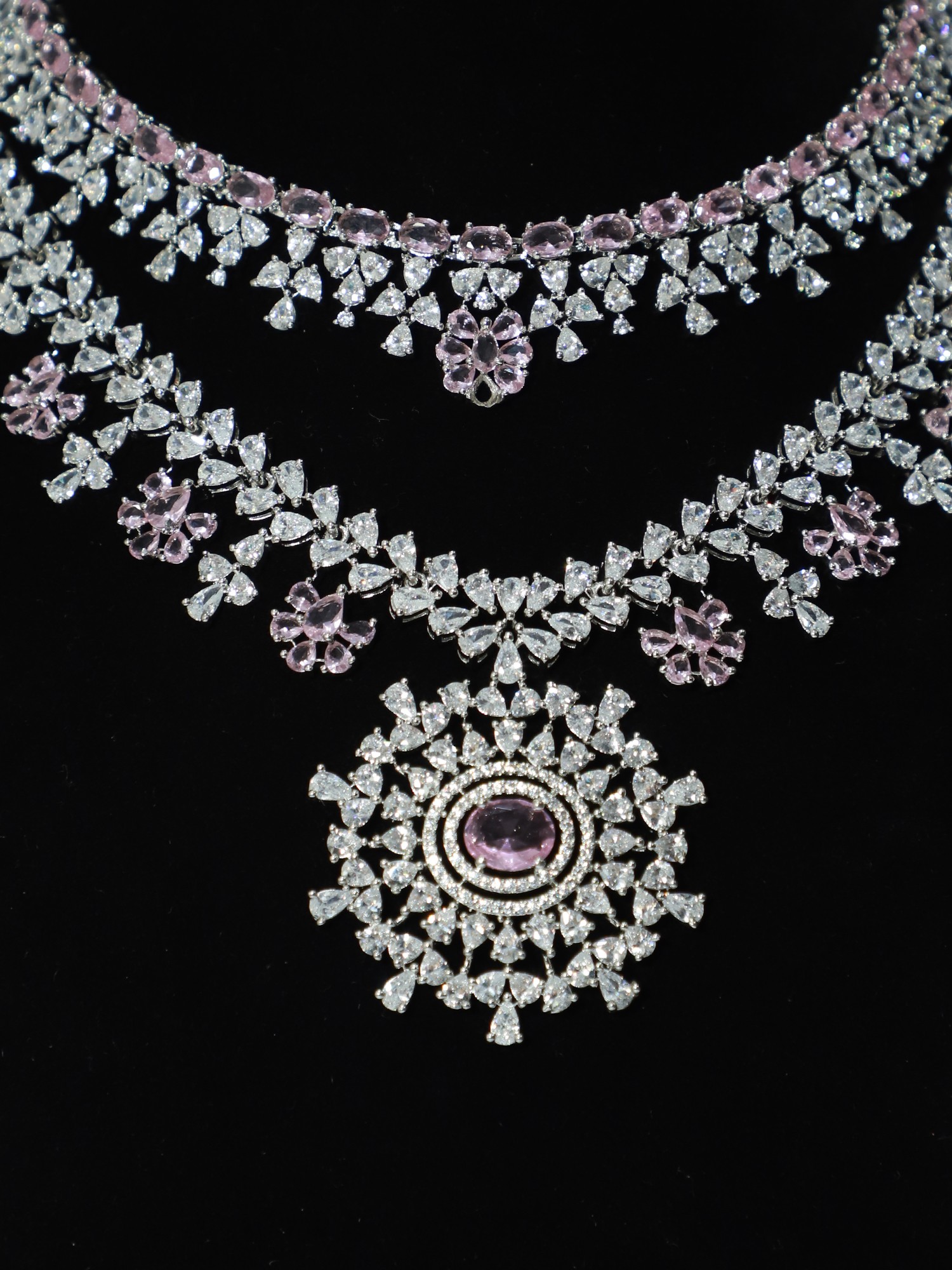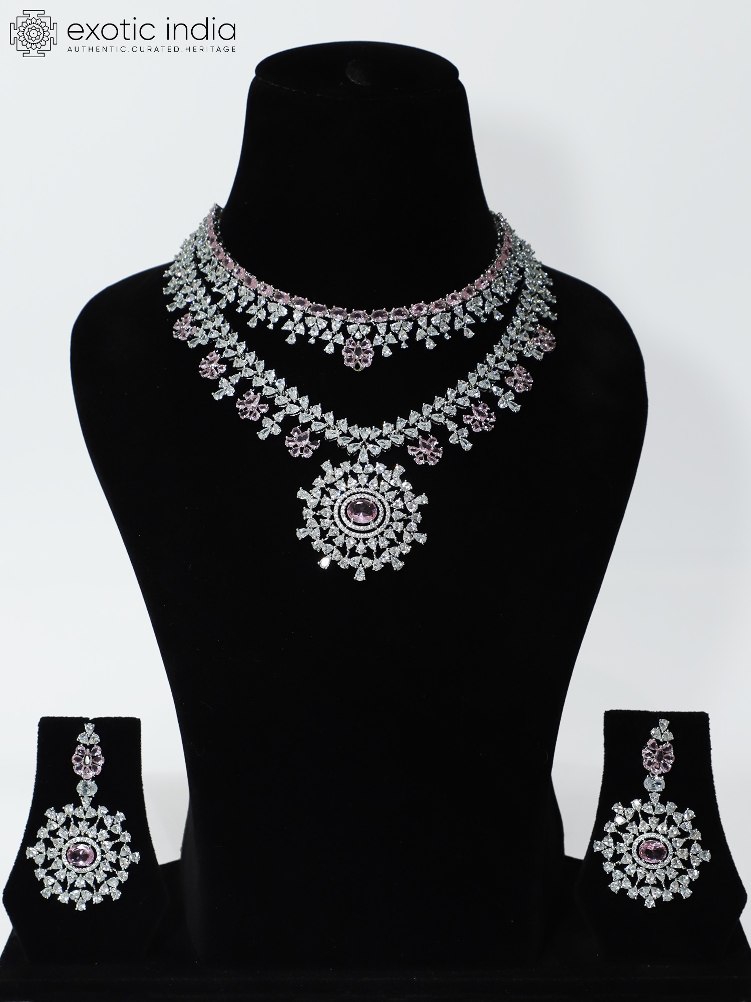 Stunning Stone Studded Embellished American Diamond Necklace Set With Earrings