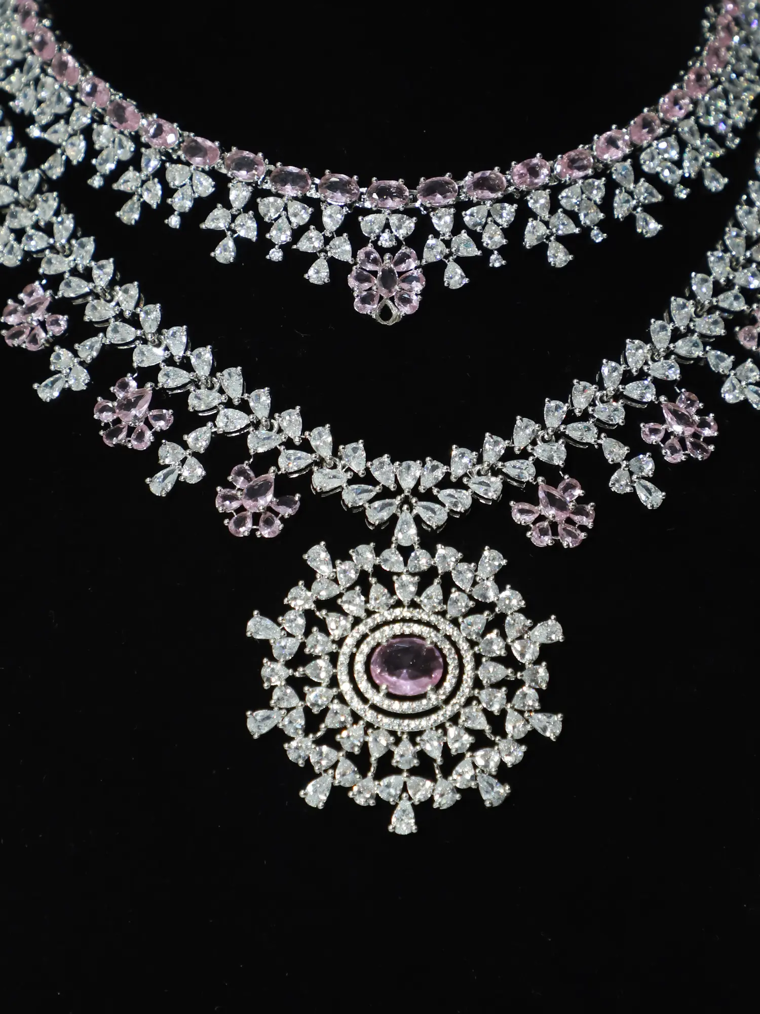 Unique Design Stone Studded Elegant American Diamond Necklace Set With Earrings