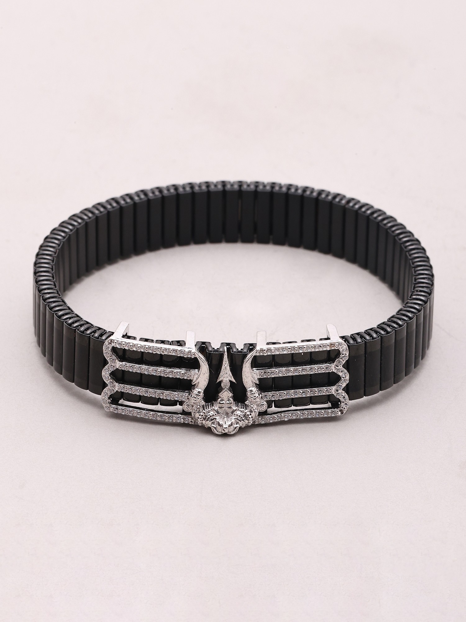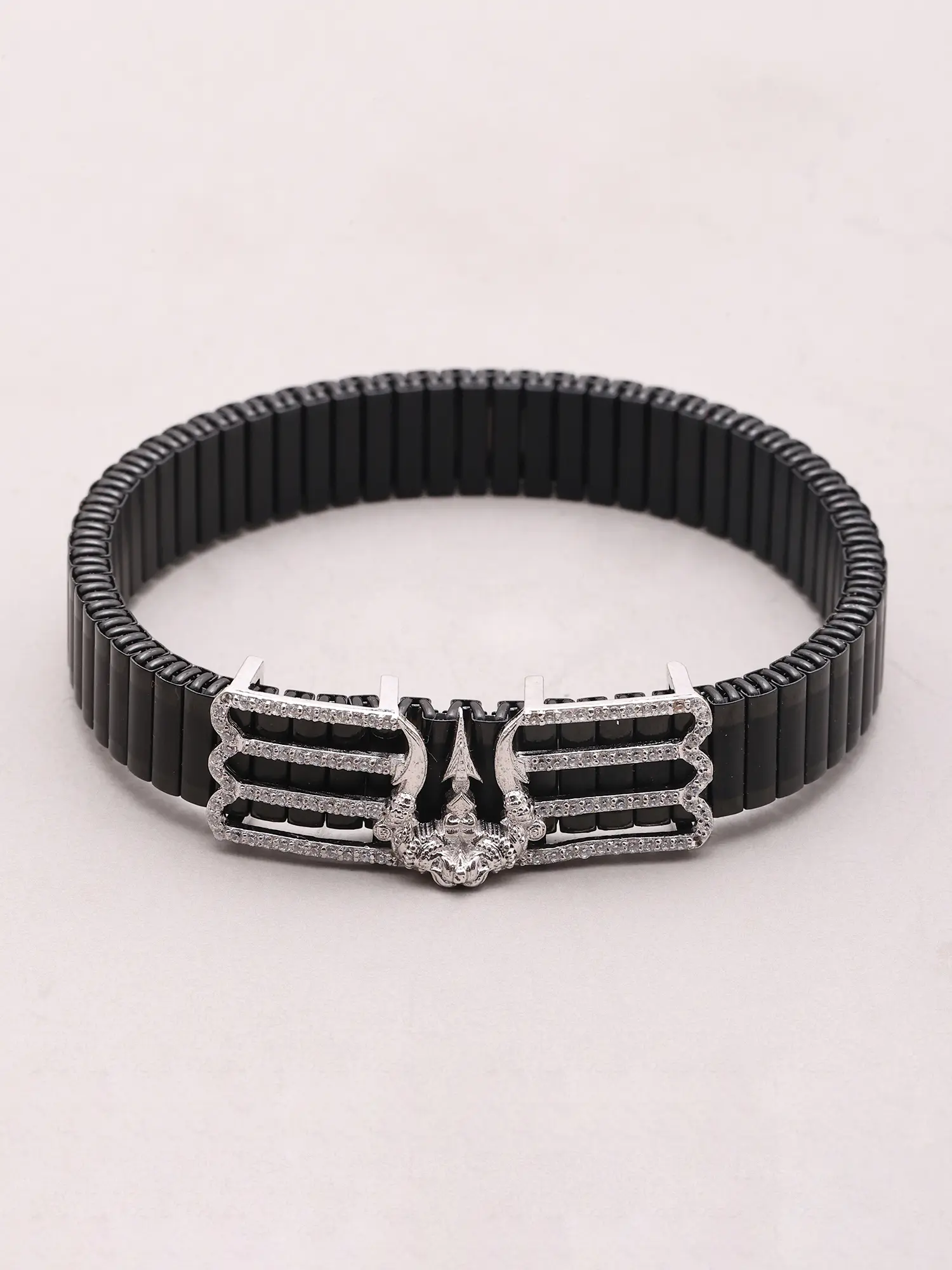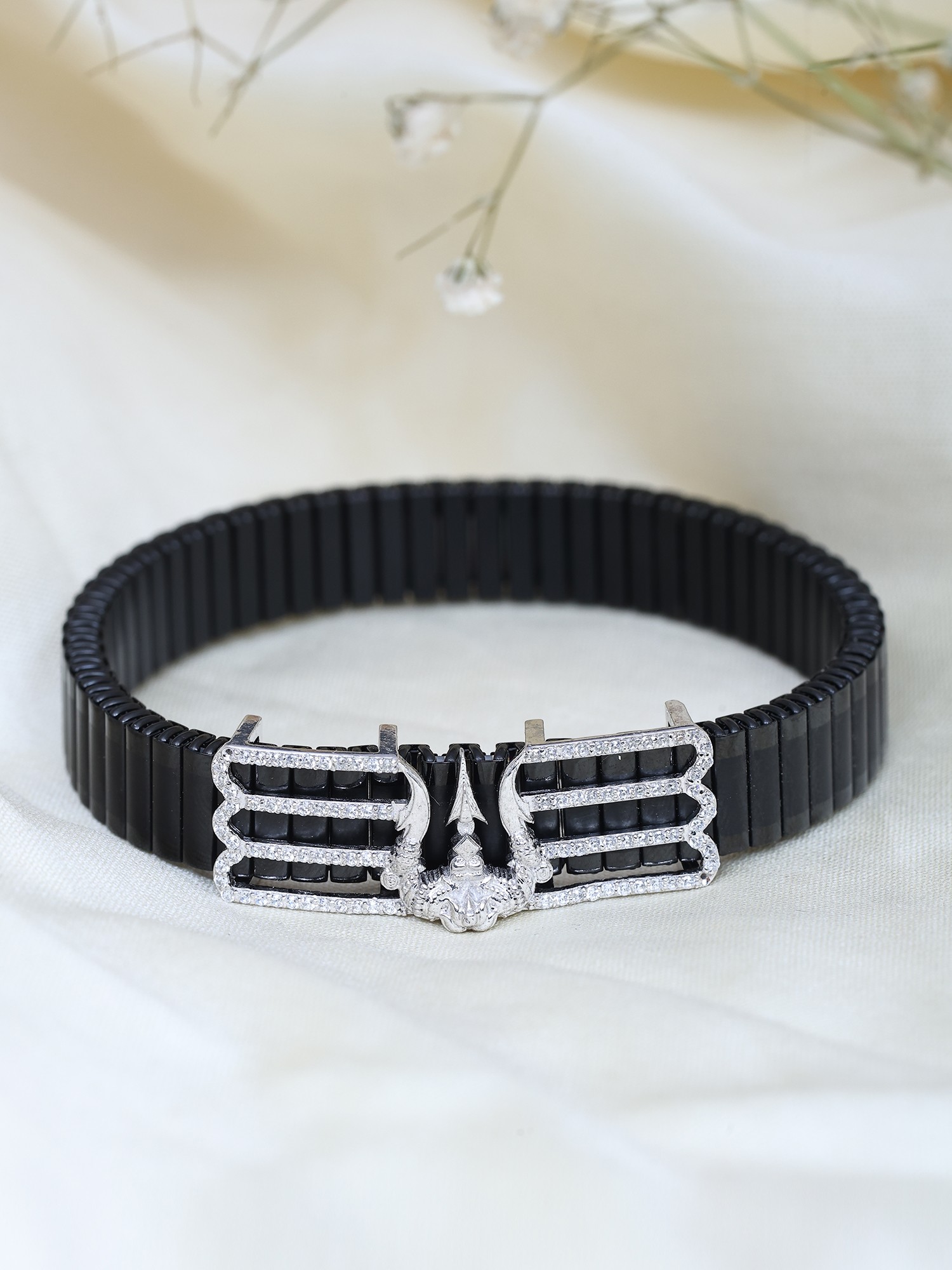Stone Studded Elastic Shiva Trishul (Adjustable) Bracelet
