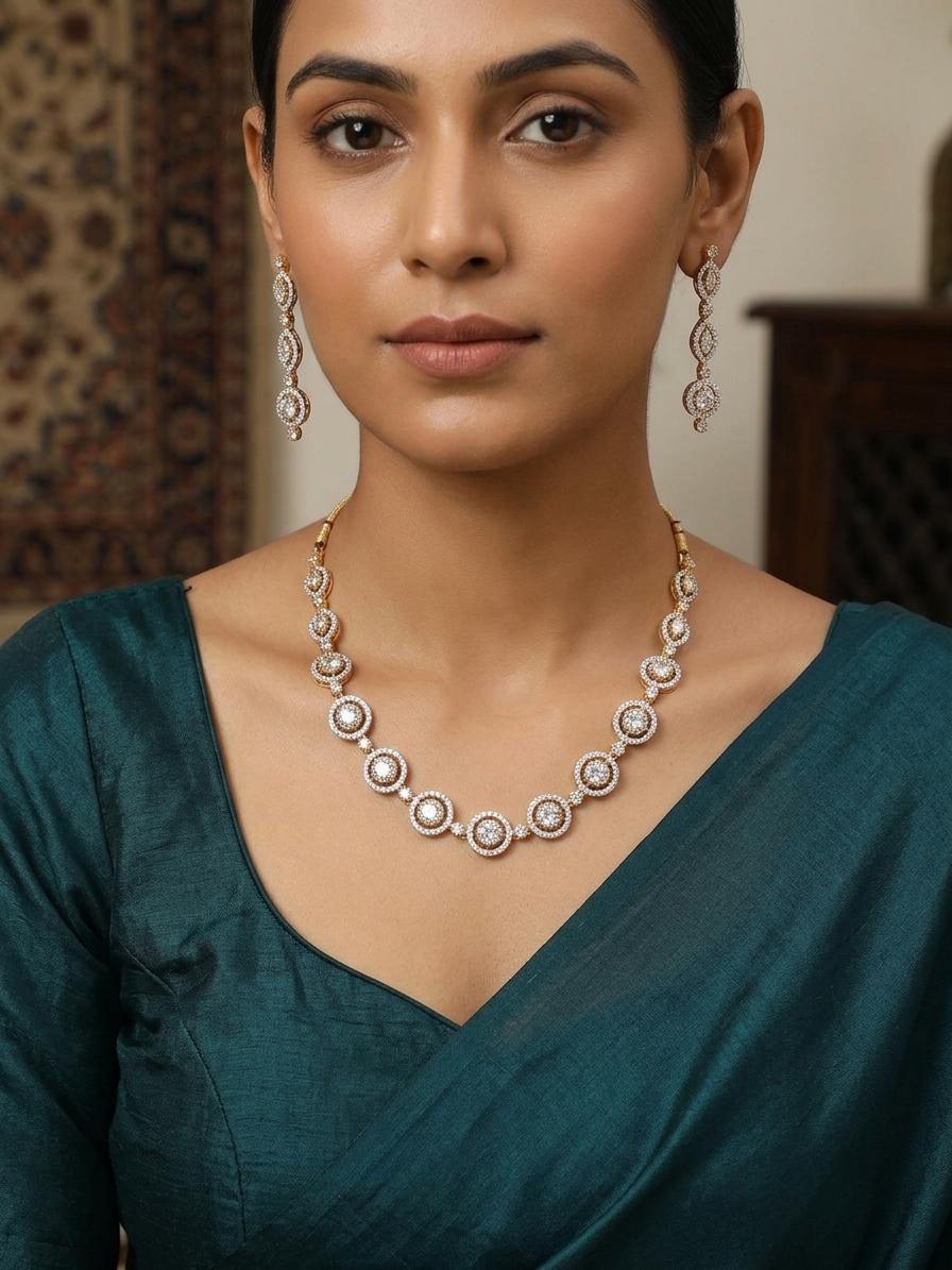 Embellished Stone Studded American Diamond Necklace Set With Earrings