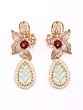 Rose Gold Color Floral Choker and Earrings Set with Multicolor Stone