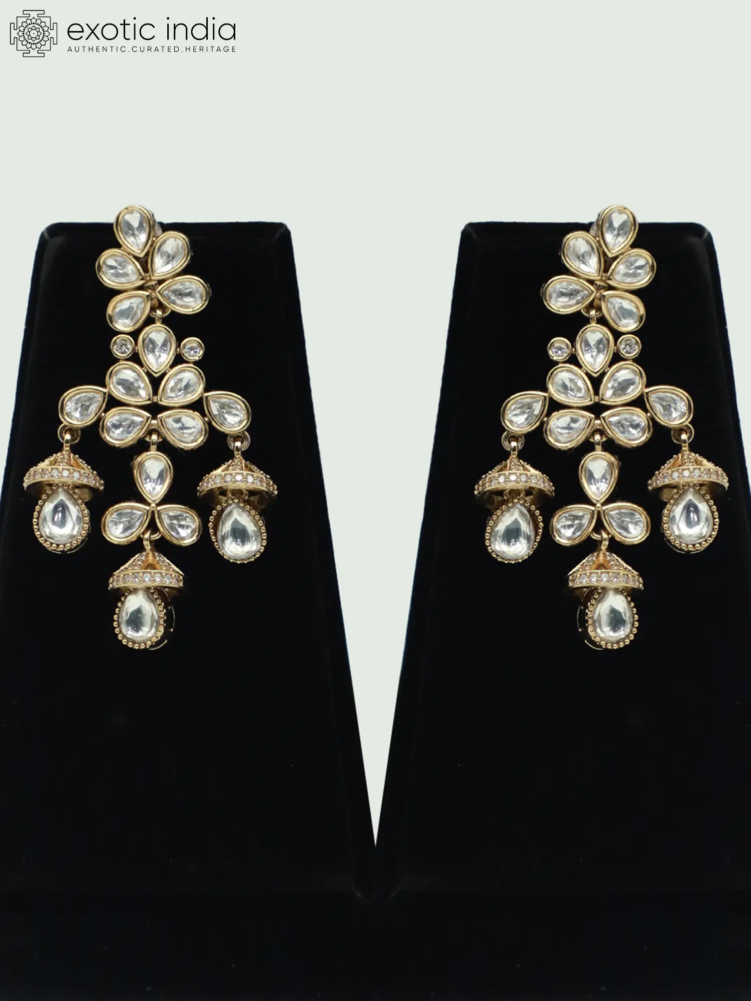 Features a delicate floral motif accented with sparkling Moissanite Kundan stonework.