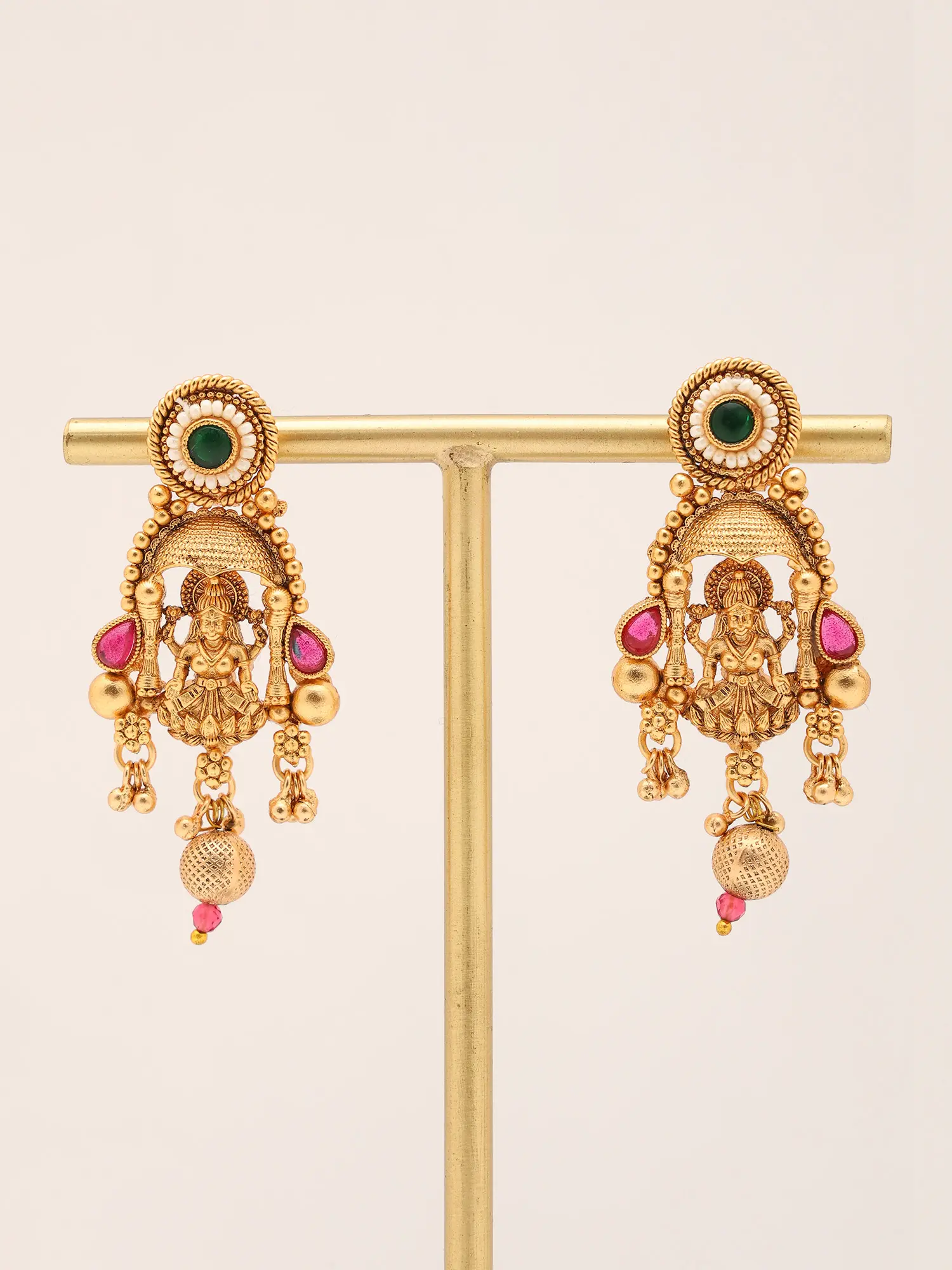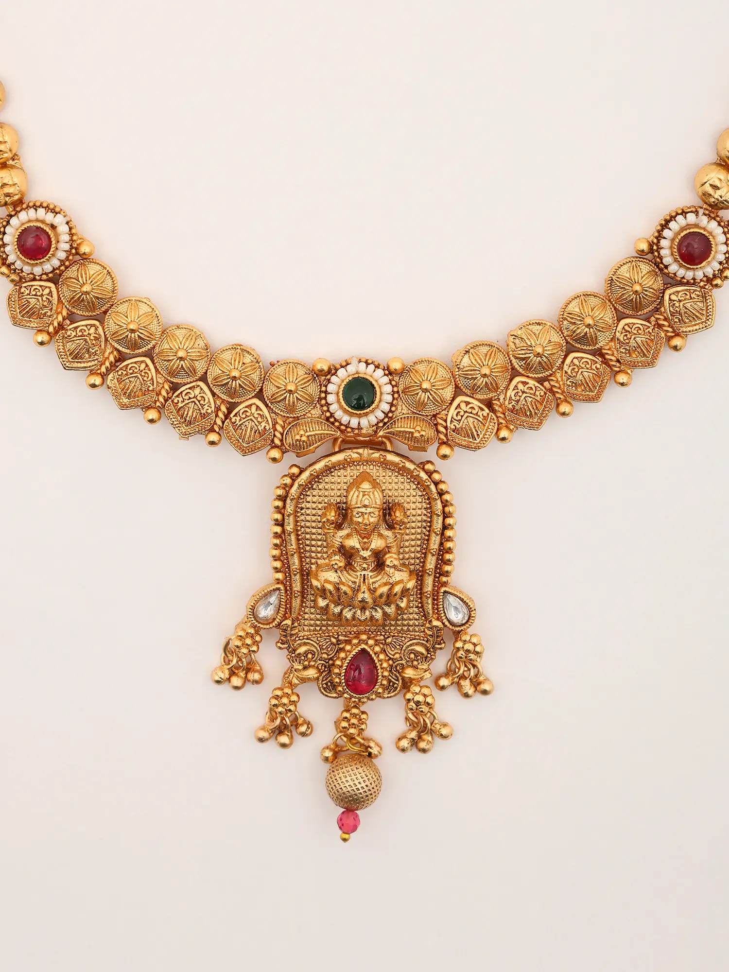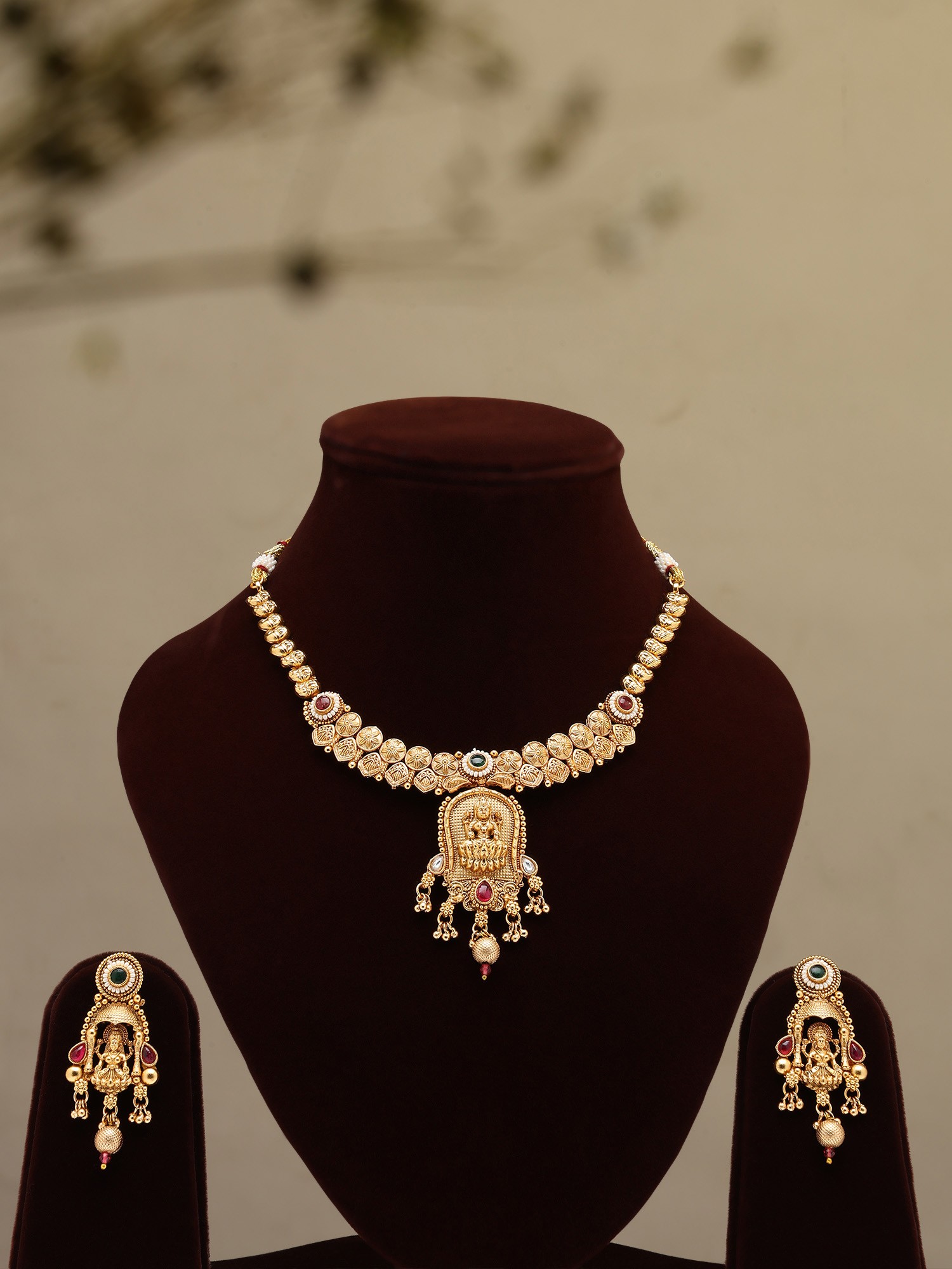 Stone Studded And Beaded Temple Goddess Traditional Necklace With Earrings