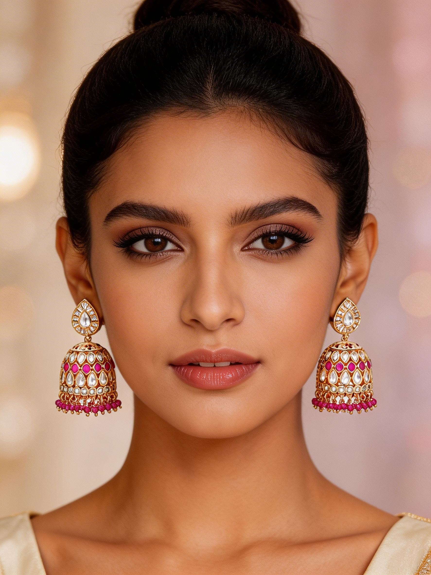 Stone Studded Kundan Bridal Jhumka Earrings with Bead Drops