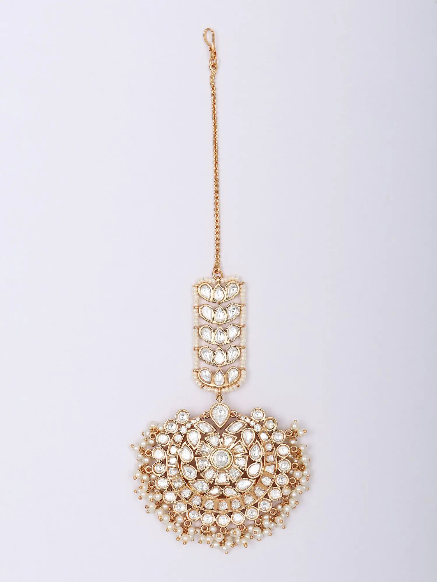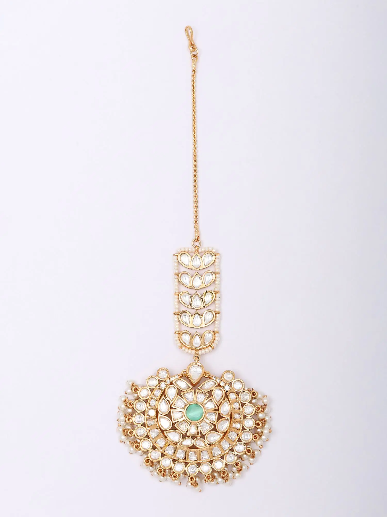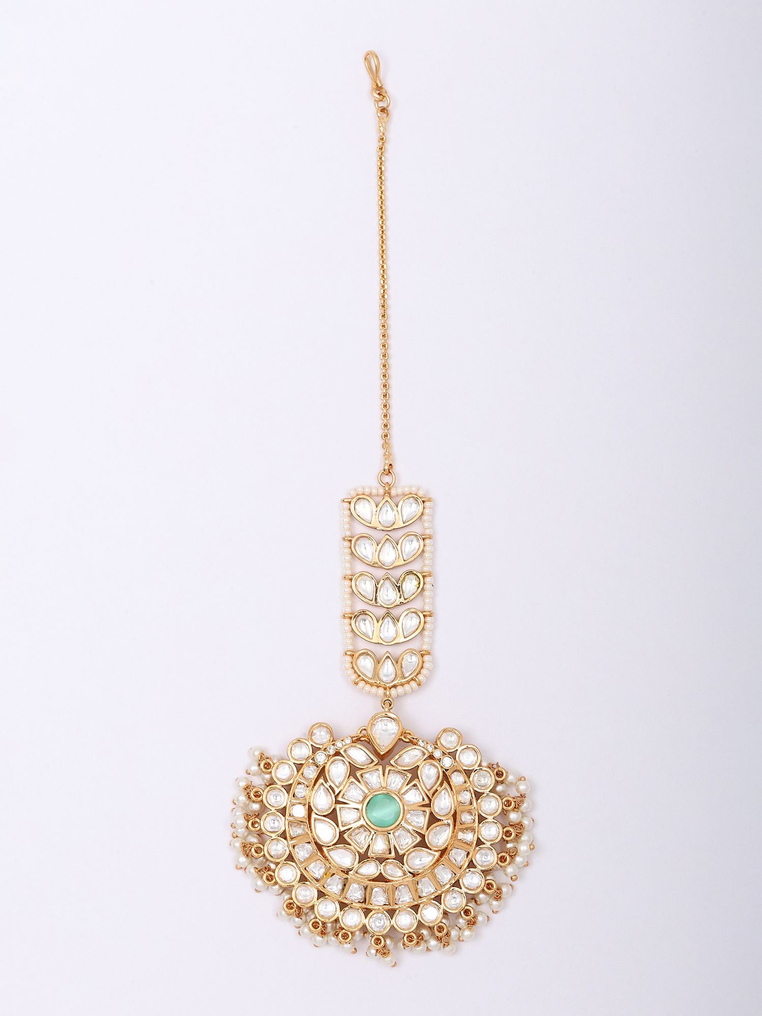 Floral Moon Polki Studded Maang Tikka with Pearl Drop