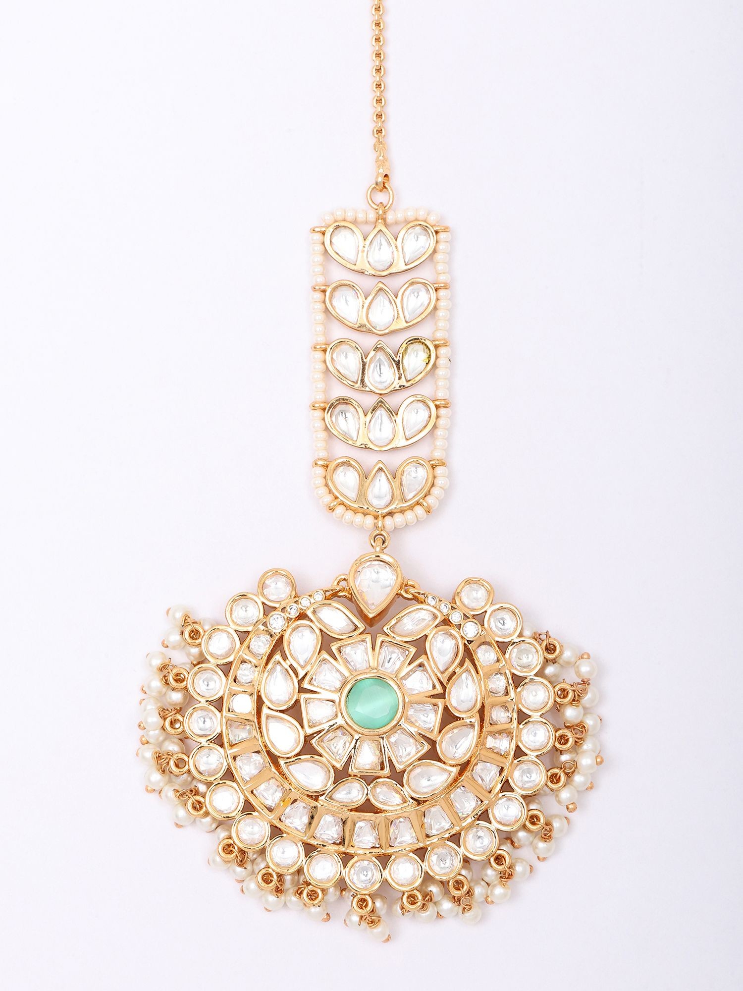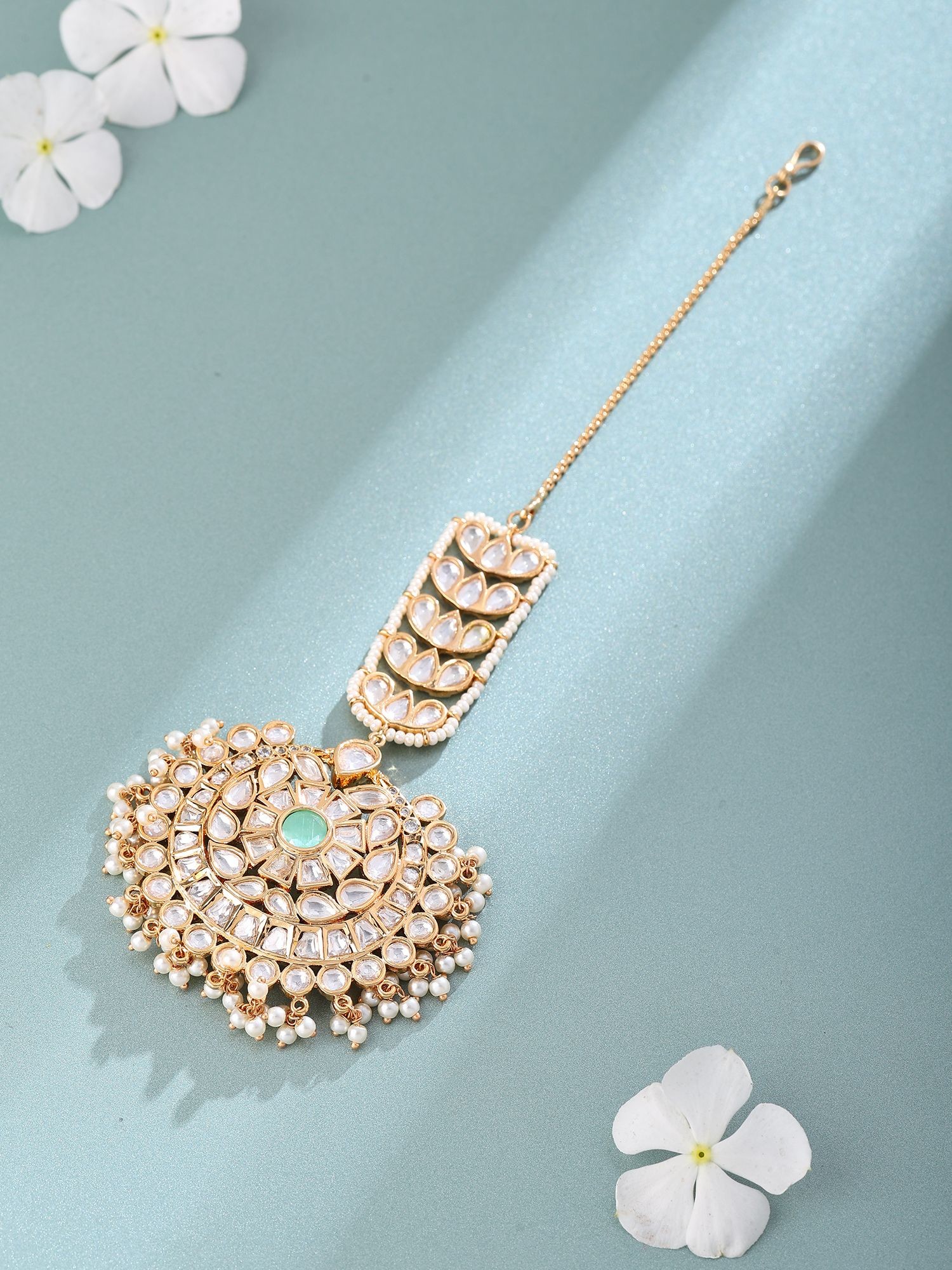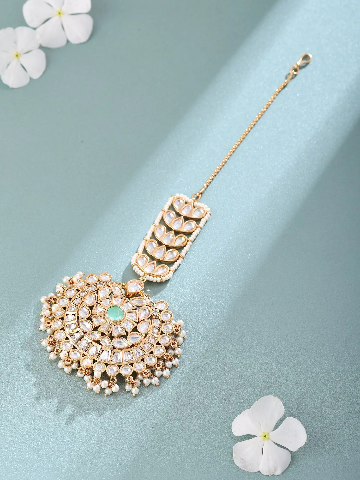Floral Moon Polki Studded Maang Tikka with Pearl Drop