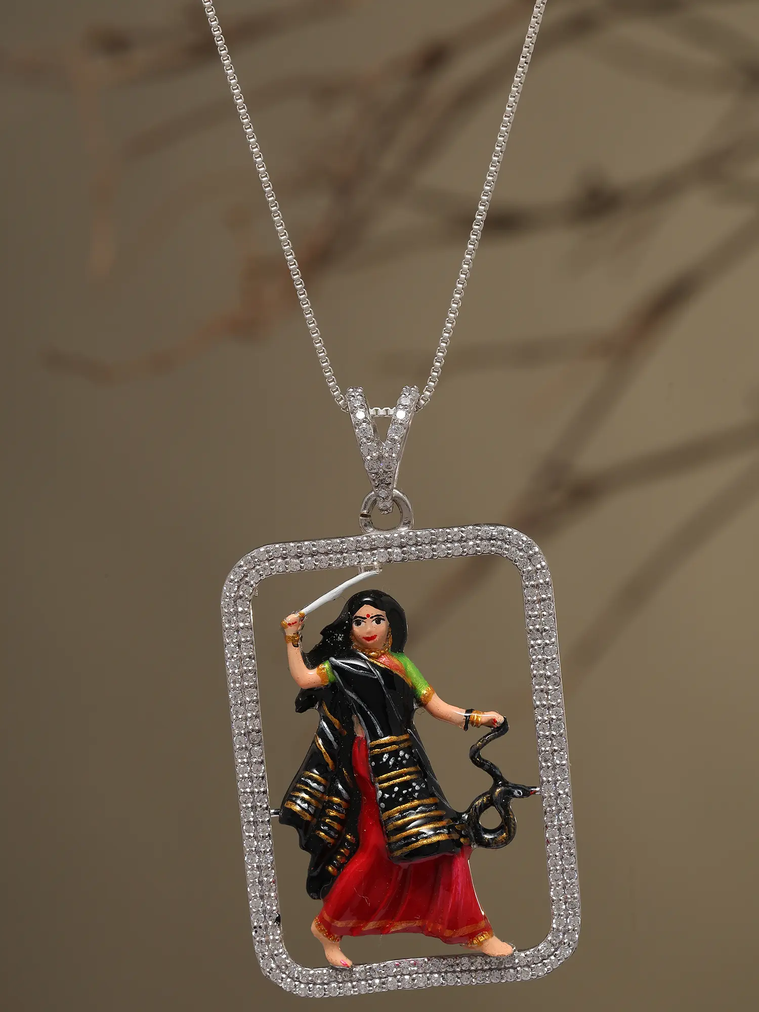 Triangle Shape Hand-Painted Goddess Durga Pendant