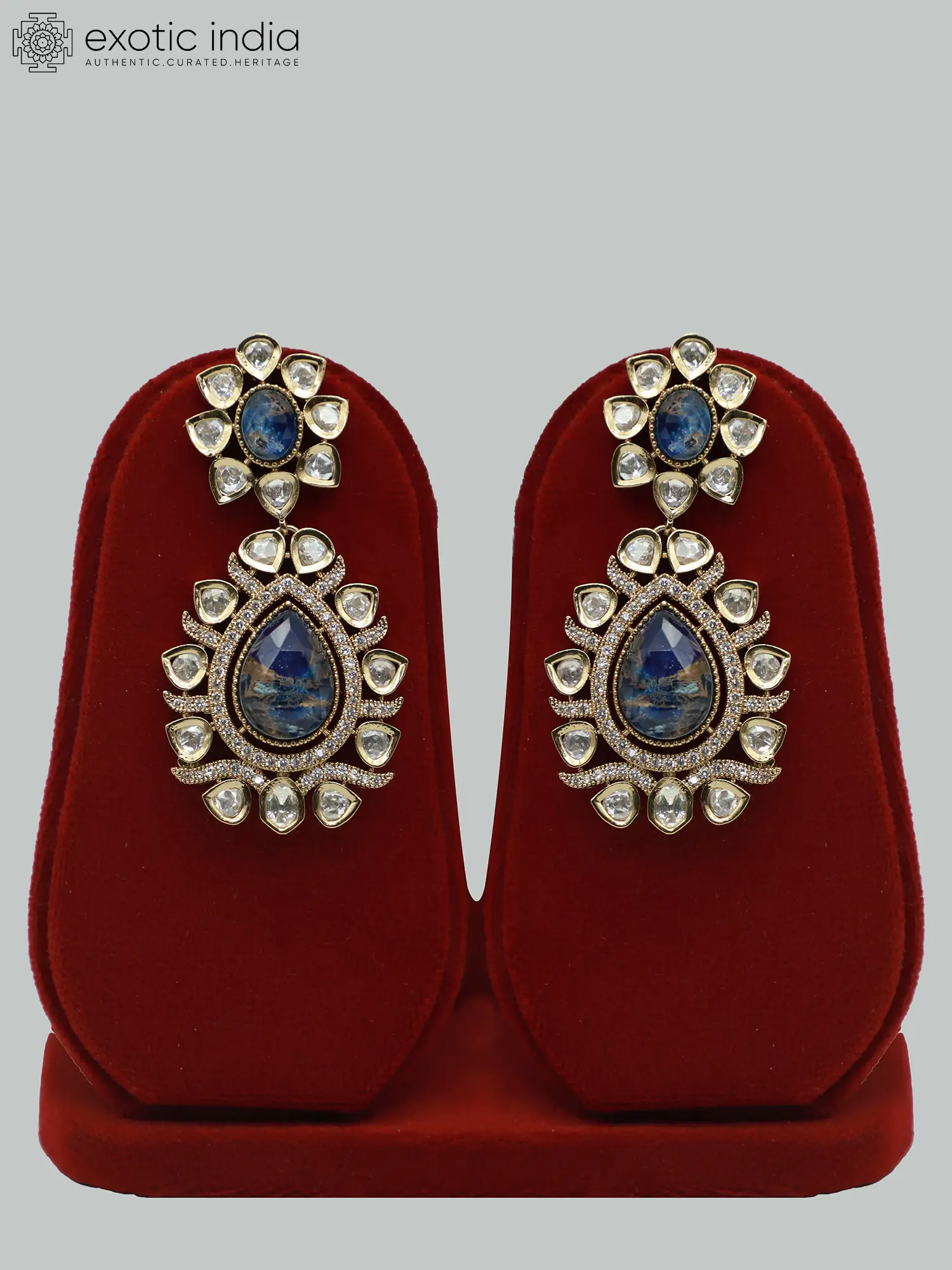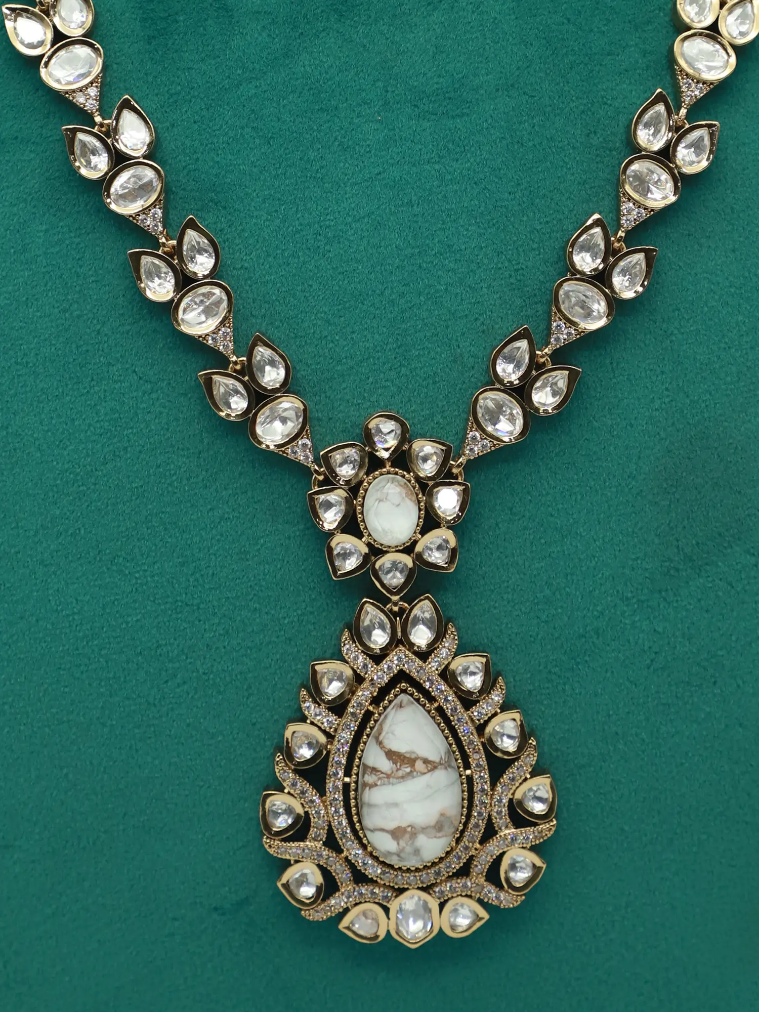 Moissanite Kundan Stone Studded Stunning Necklace With Matching Earrings