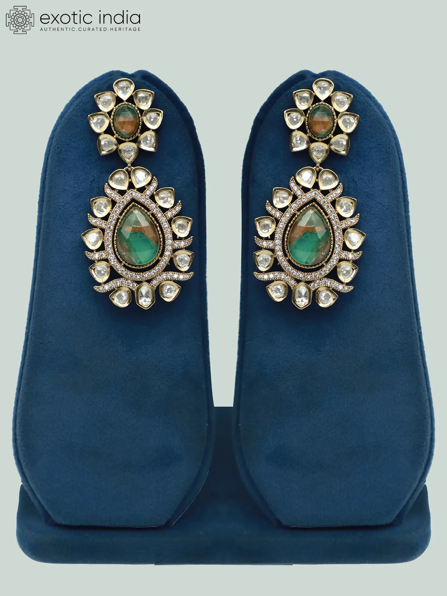 Elegant Designer Stone Studded Copper And Kundan Necklace Set With Earrings