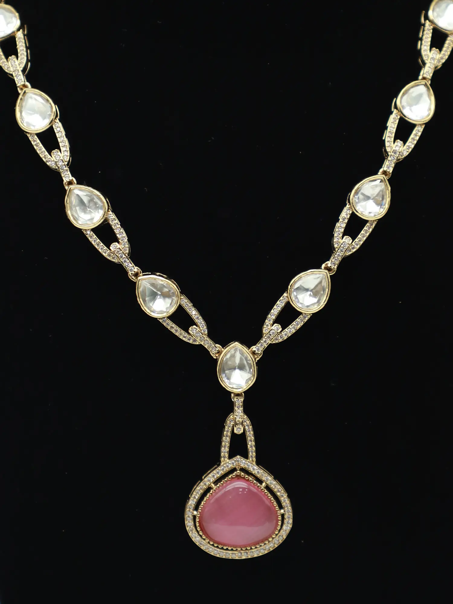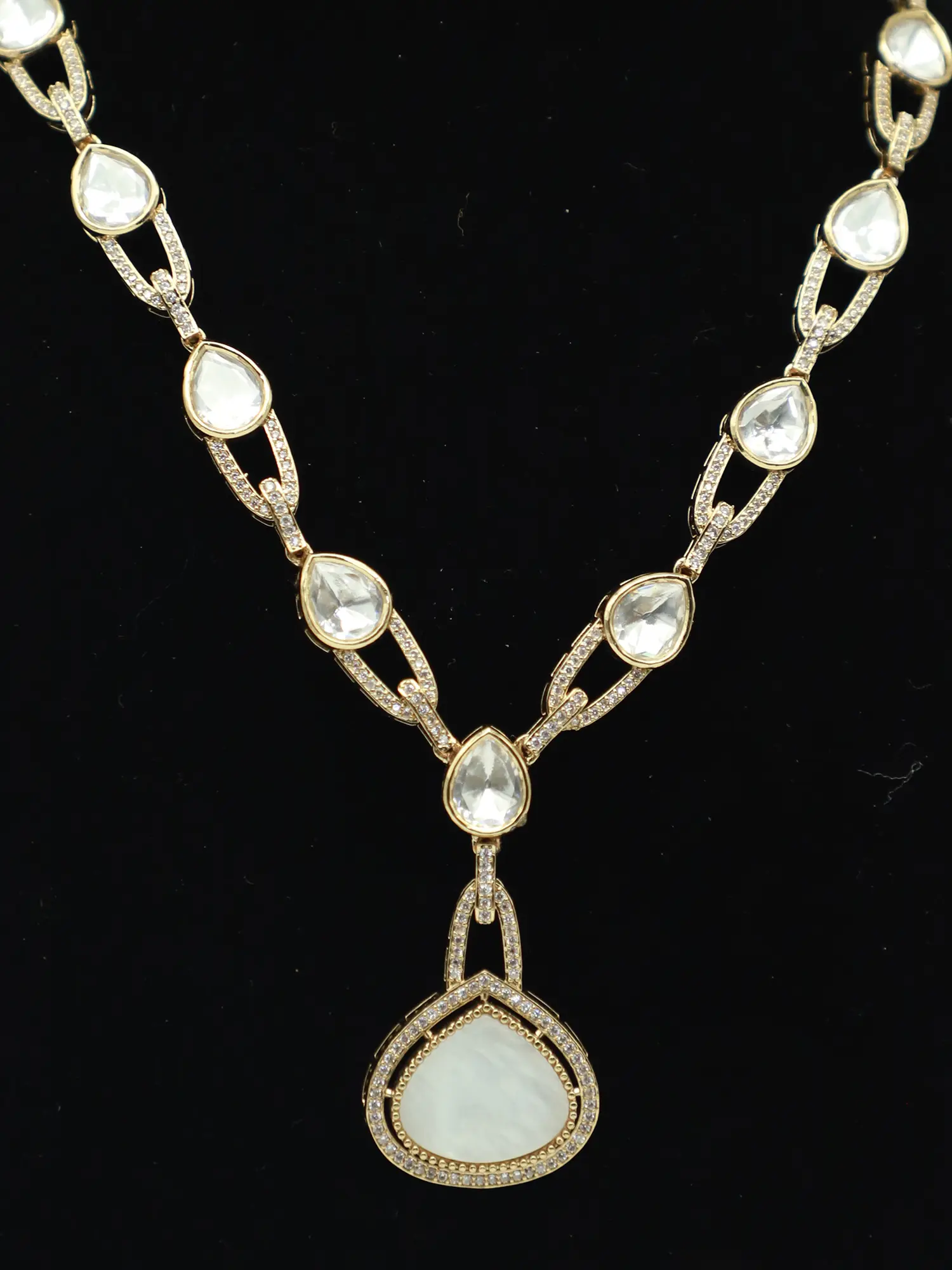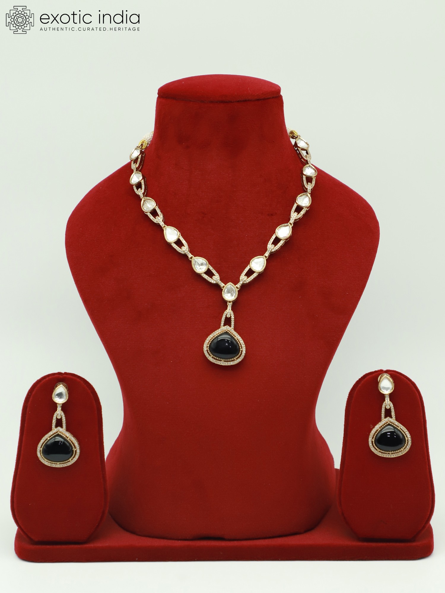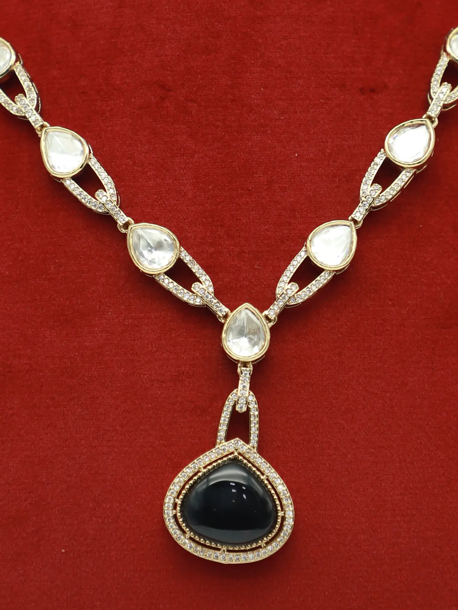 Stone Studded Moissanite Kundan Embellished Necklace With Matching Earrings