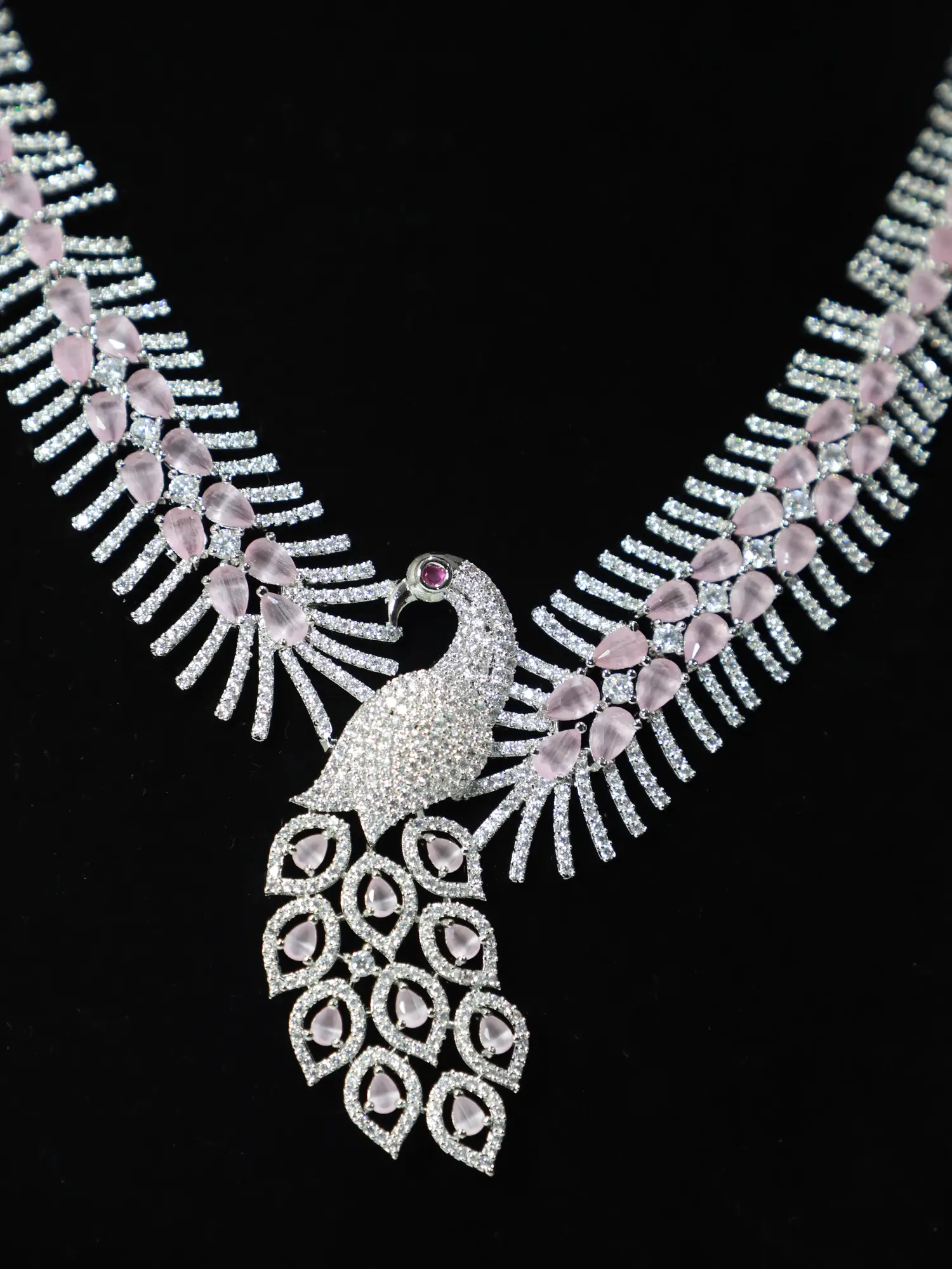 Beautiful Peacock Design Moissanite Kundan With Matt Polish Stone Studded Necklace