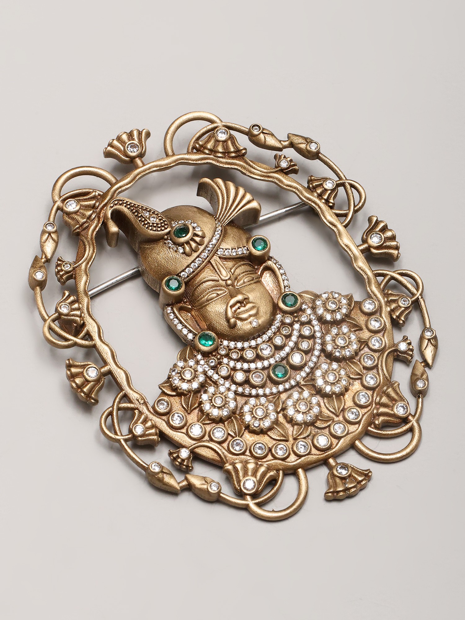 Enamelled Hindu Deity Shrinathji Face Pendant