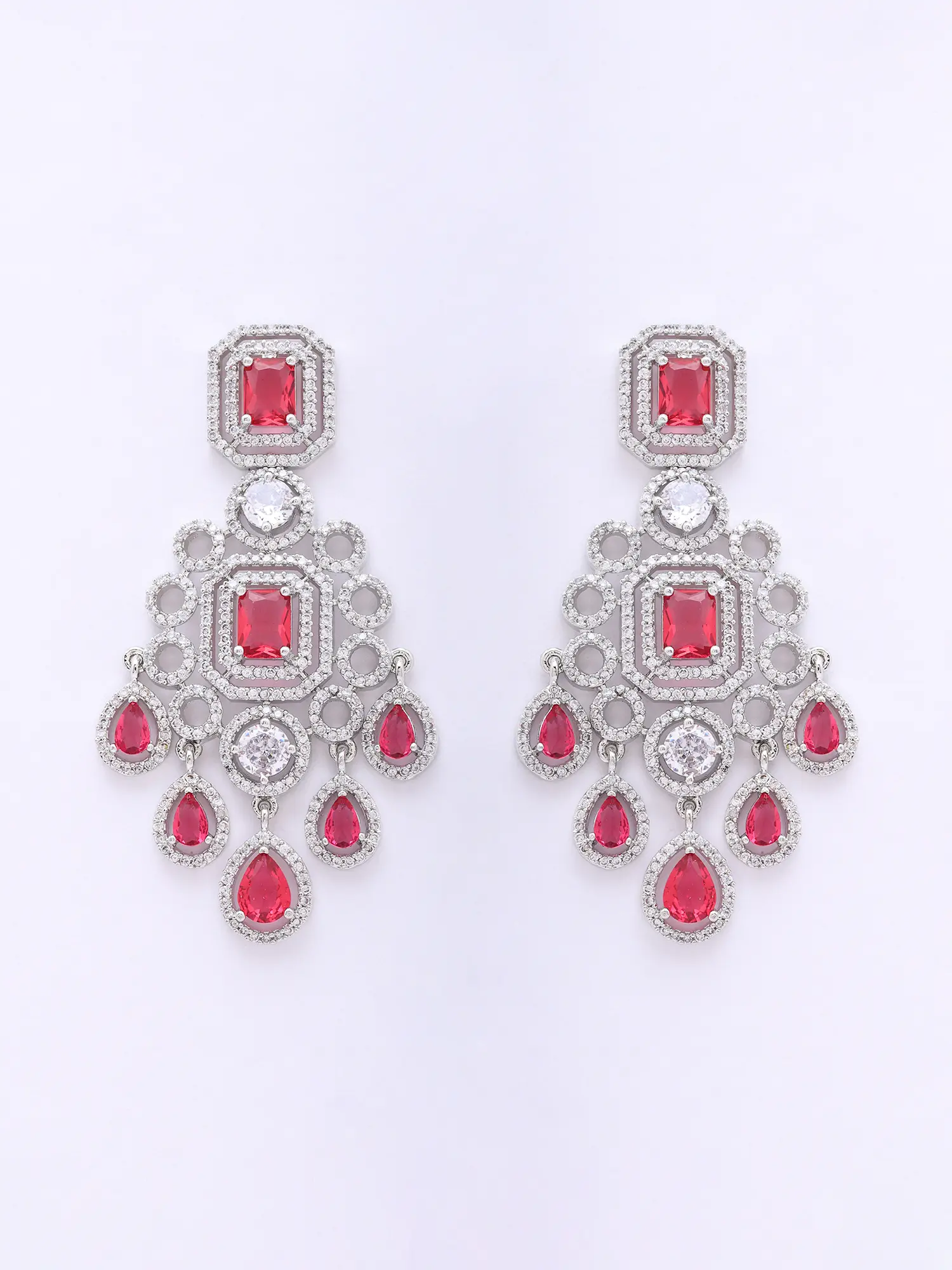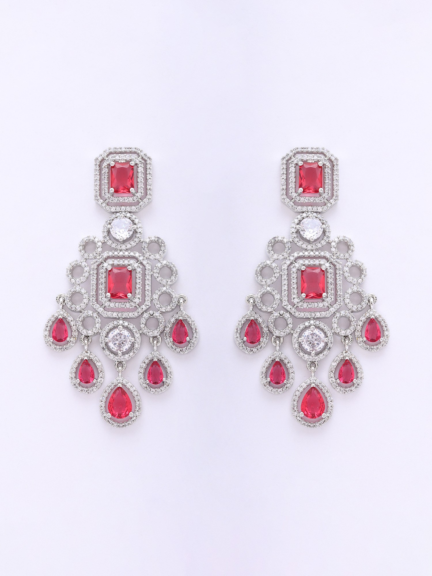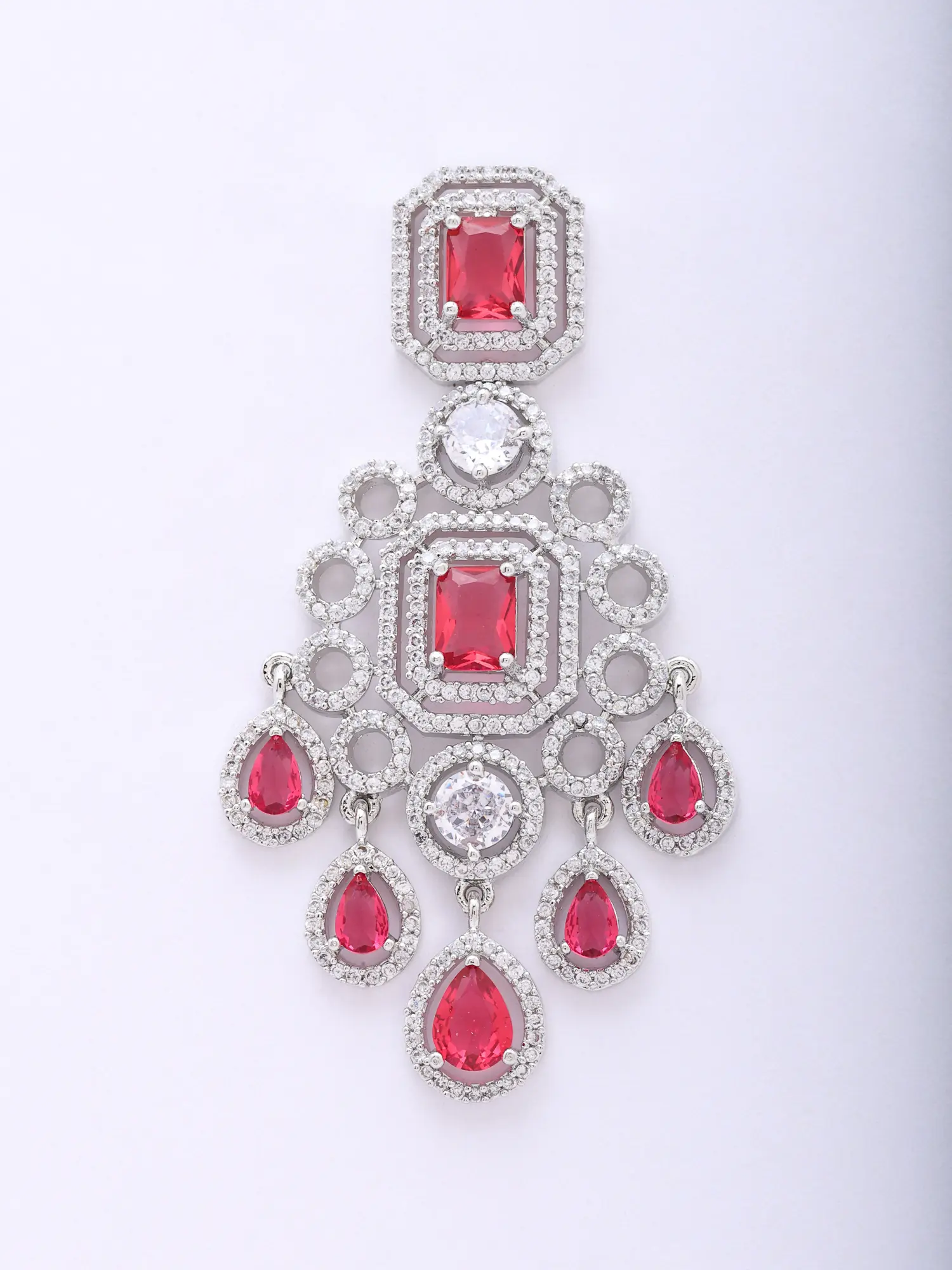 Each component is meticulously crafted, showcasing a dedication to artisanal excellence. The settings are designed with precision, allowing the American diamonds to shimmer with unparalleled brilliance, while the vibrant red stones are carefully chosen for their depth and saturation. You'll appreciate the lightweight feel and the secure clasps that ensure comfort and confidence throughout wear.
