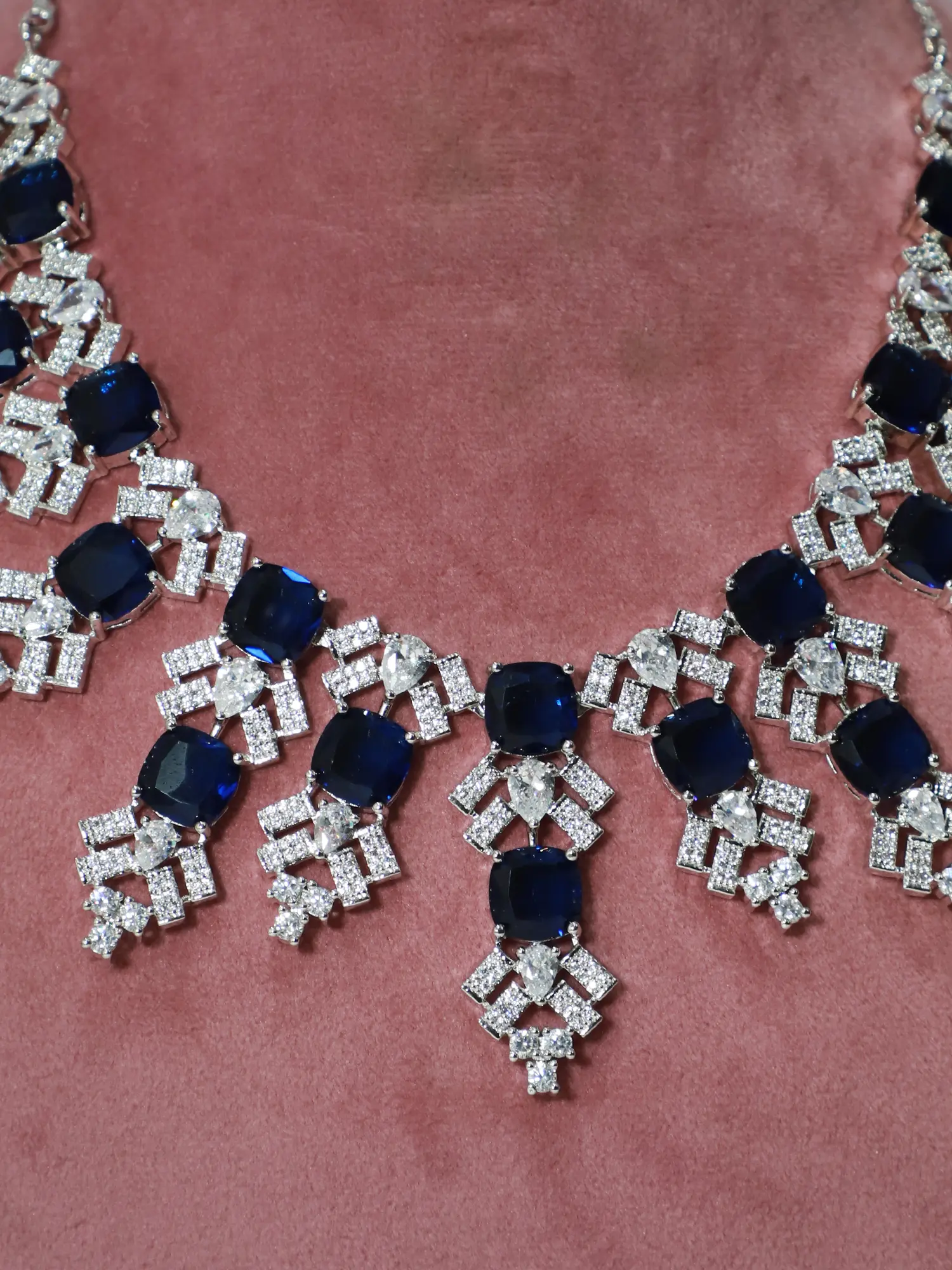 Elegant And Embellished Floral Design American Diamond Necklace Set With Earrings