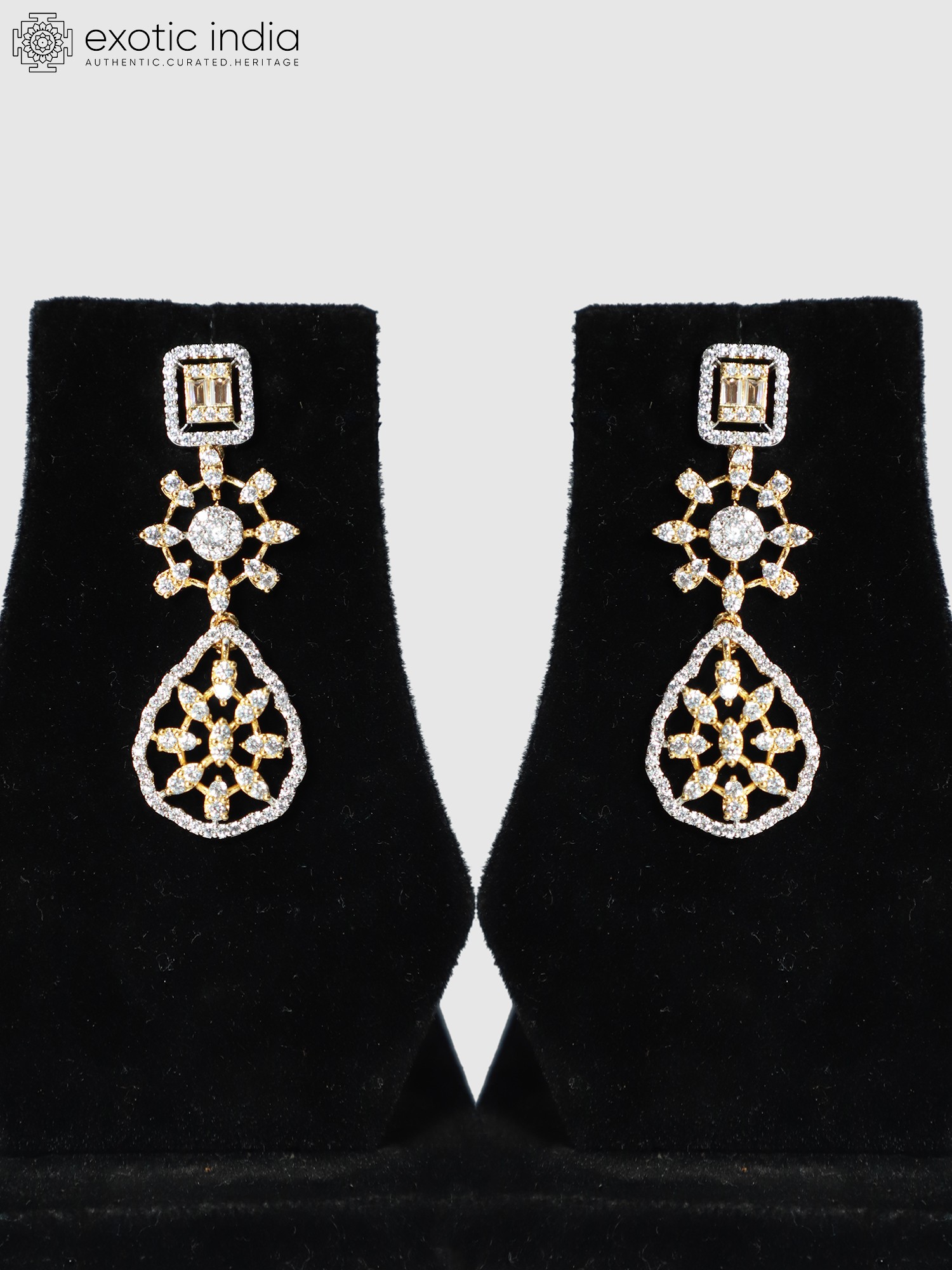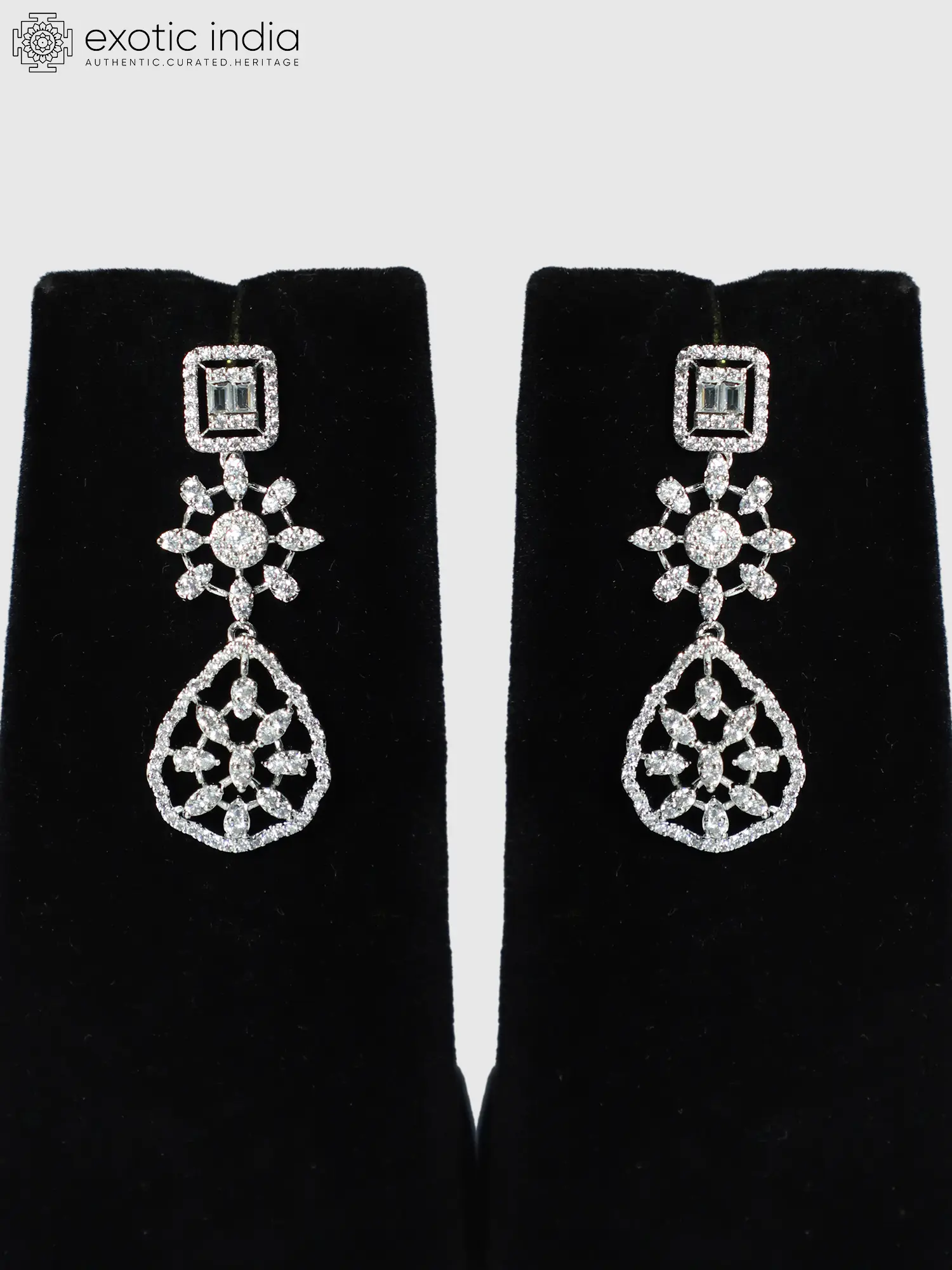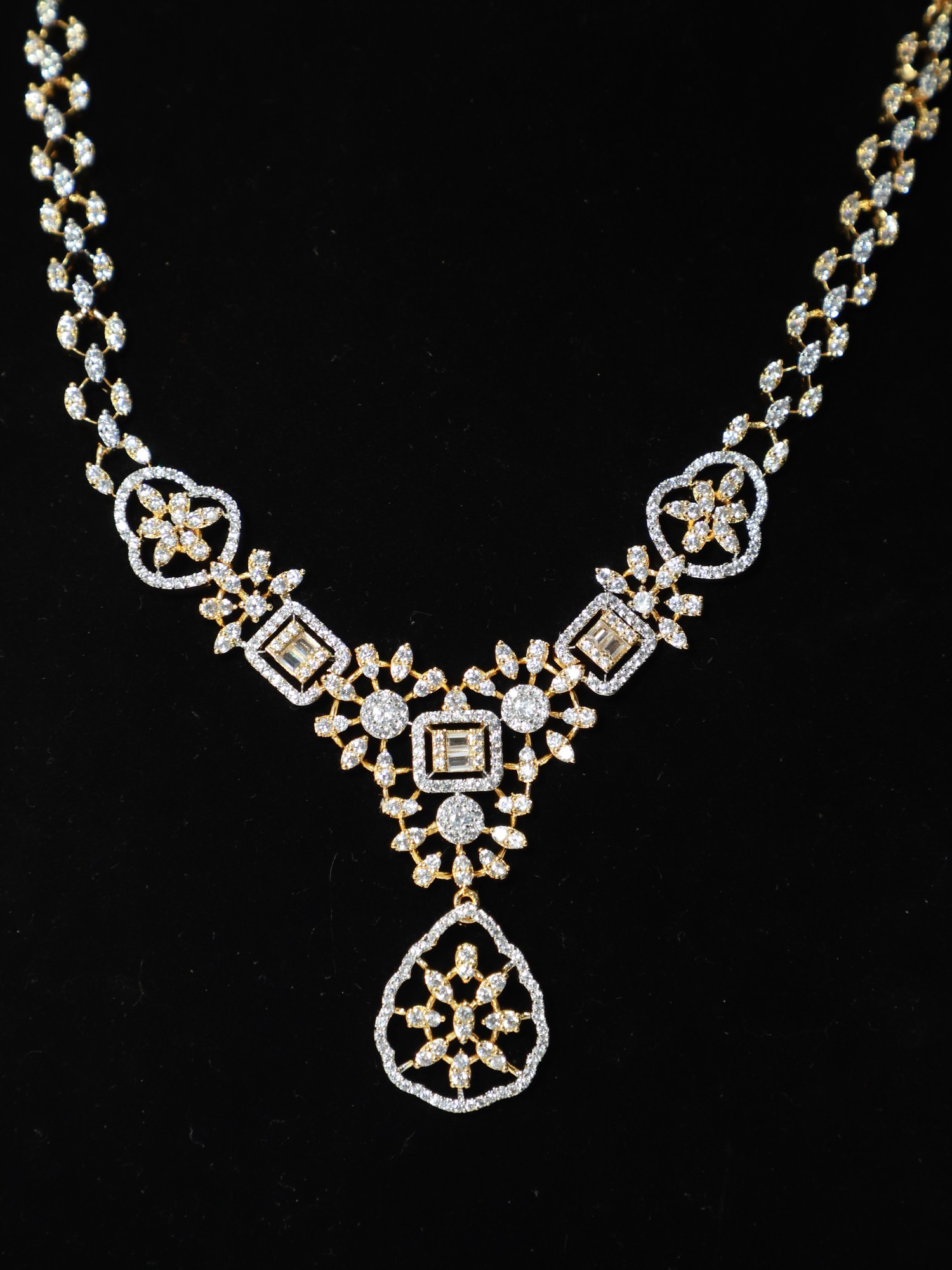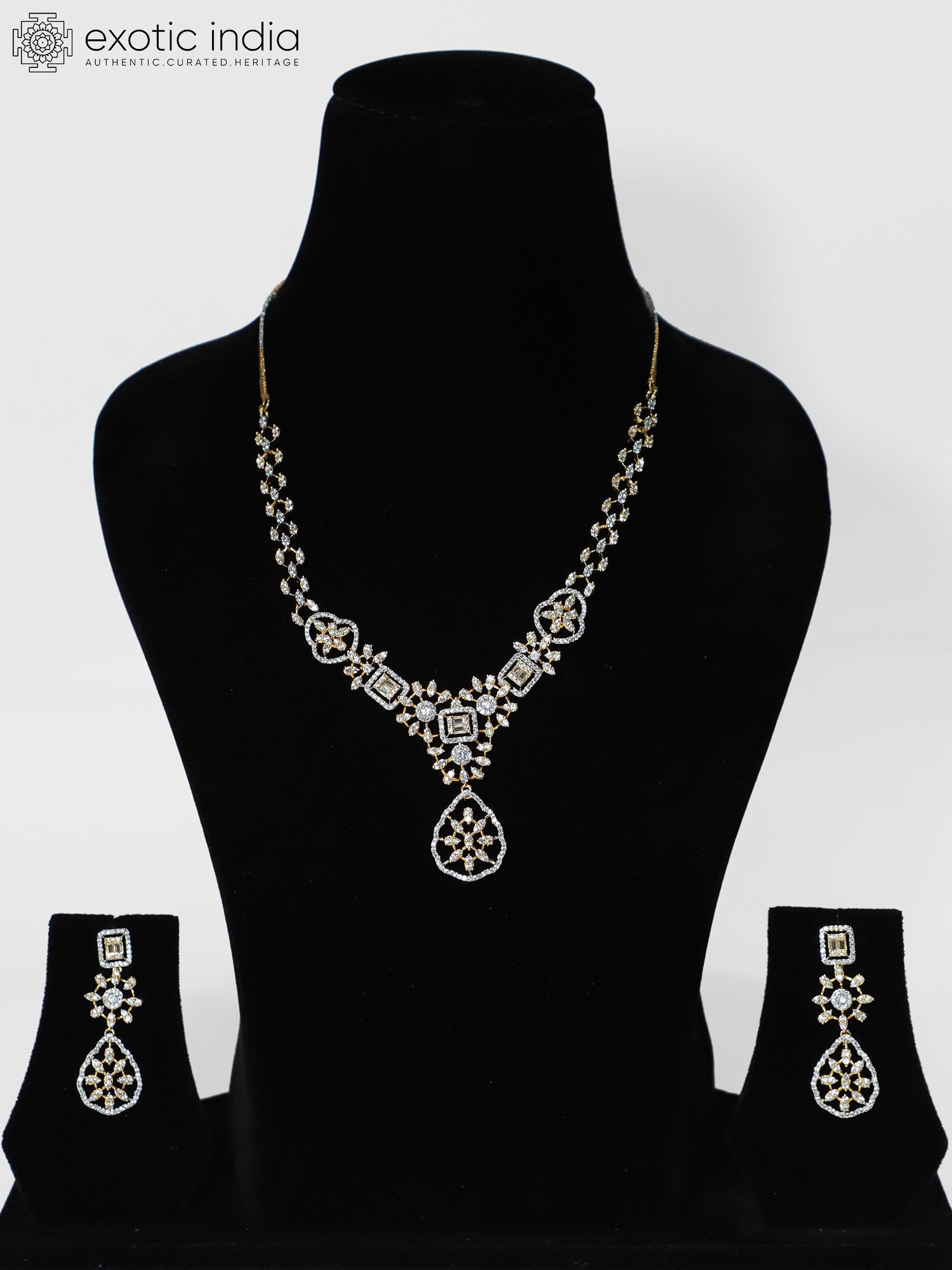 Stone Studded Beautiful Floral Design American Diamond Necklace Set With Earrings