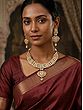 Immerse yourself in the rich heritage of Indian craftsmanship with this exquisite necklace and earrings set. Crafted with meticulous detail, this set echoes the grandeur of royal adornments. The traditional design elements are seamlessly blended with contemporary aesthetics, making it a versatile addition to any jewelry collection. Whether you are dressing up for a festive occasion or adding a touch of elegance to your everyday attire, this set is sure to make a statement.
