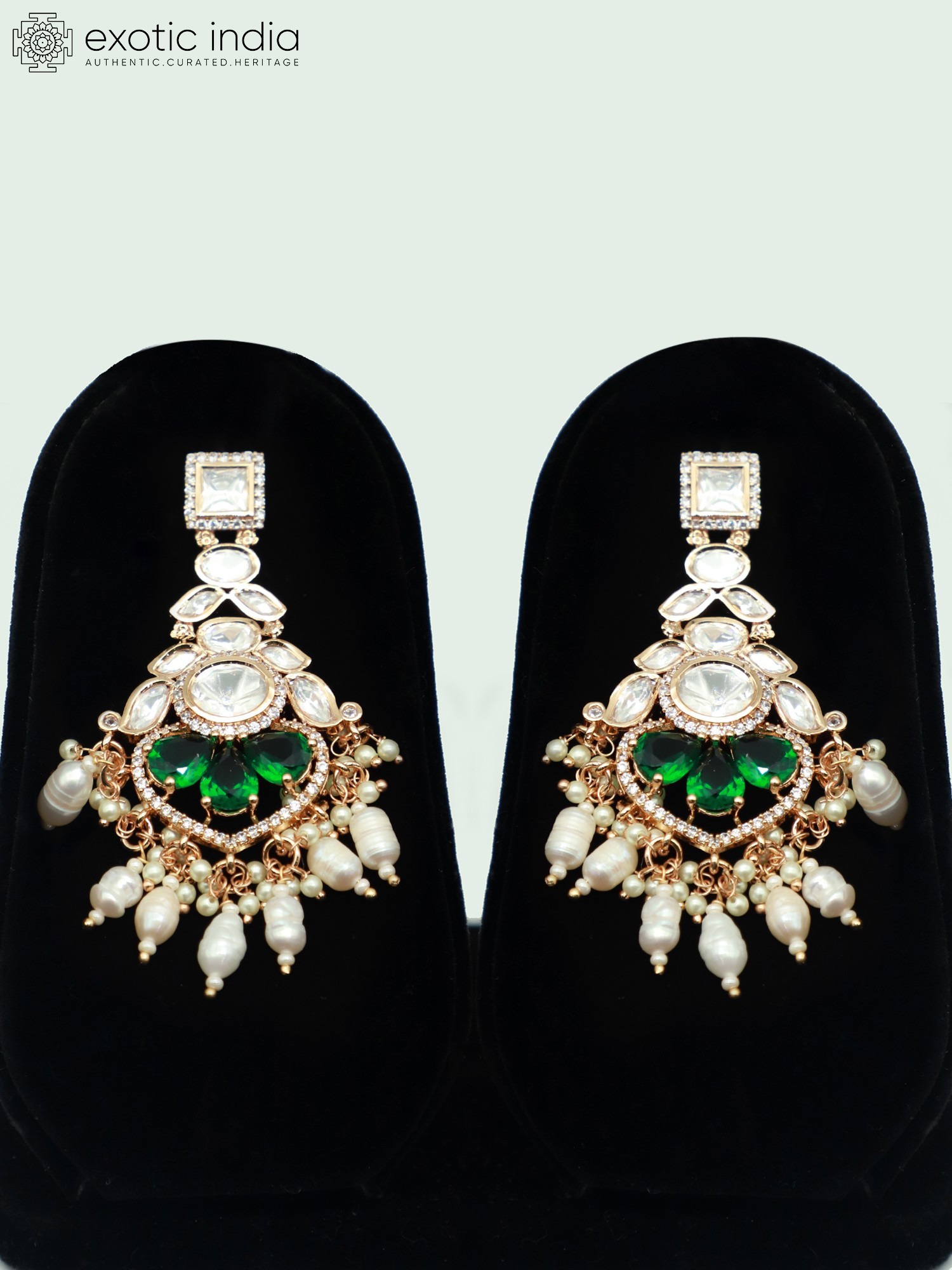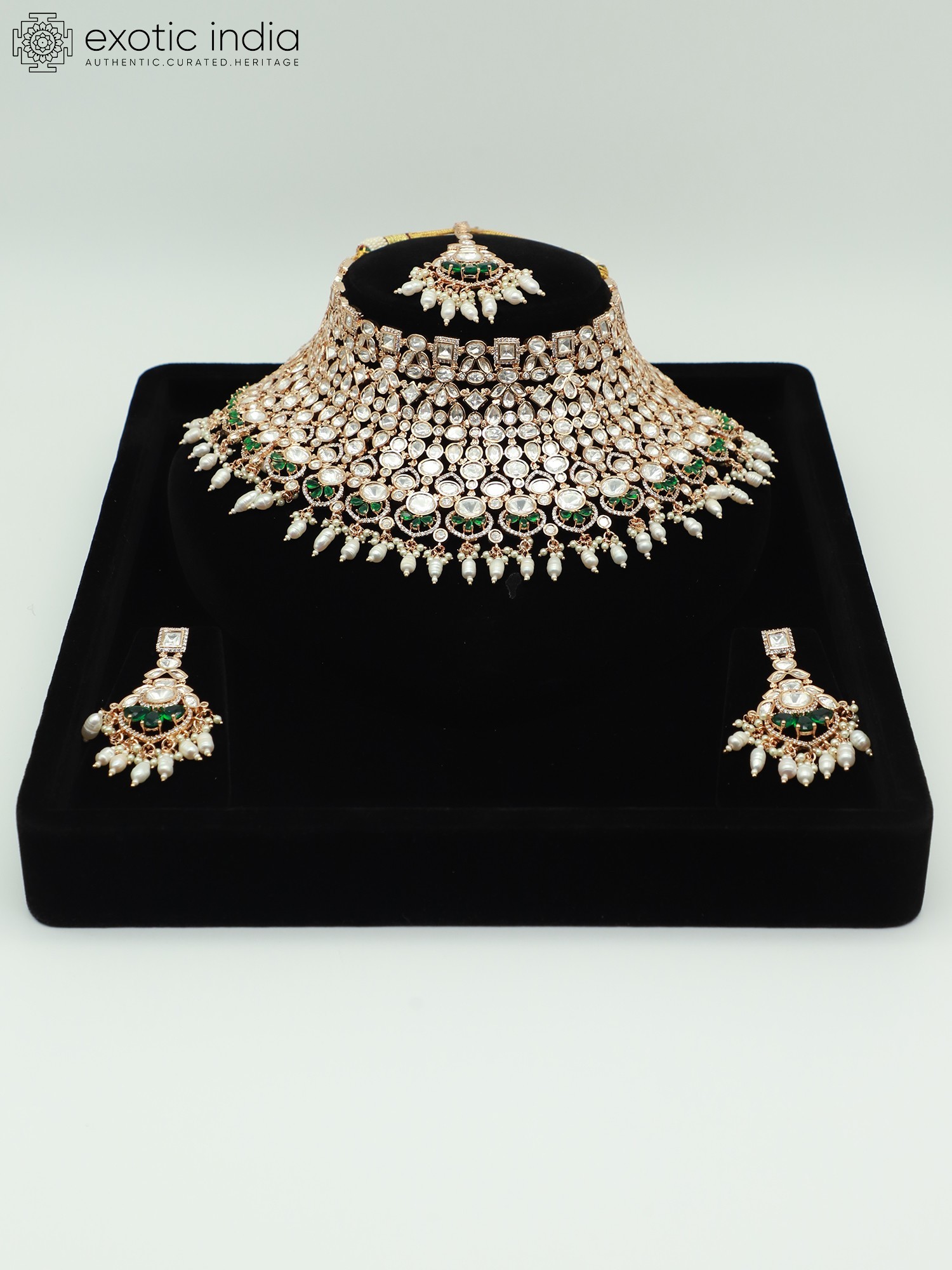 Studded Moissanite Kundan With Matt Polish Fancy Design Necklace With Beautiful Earrings