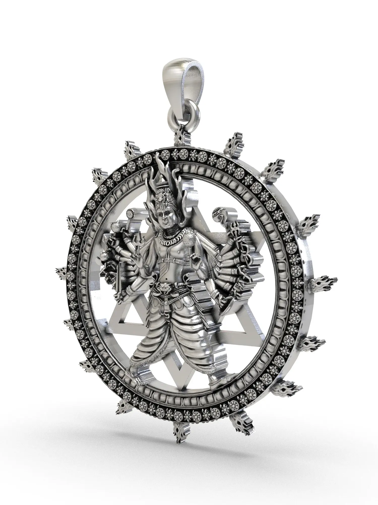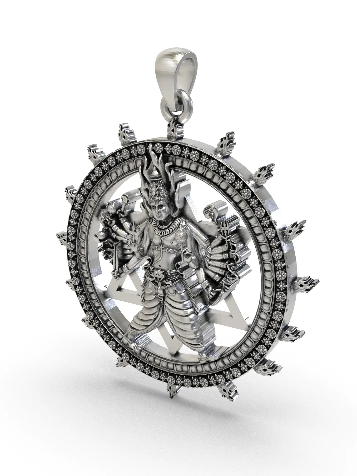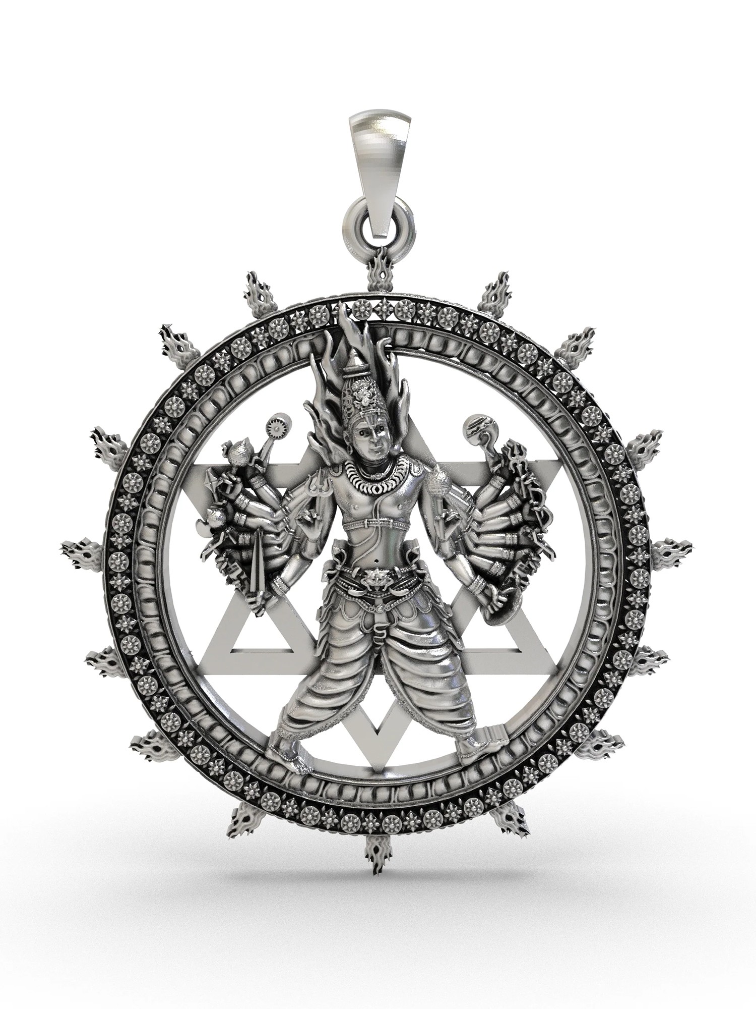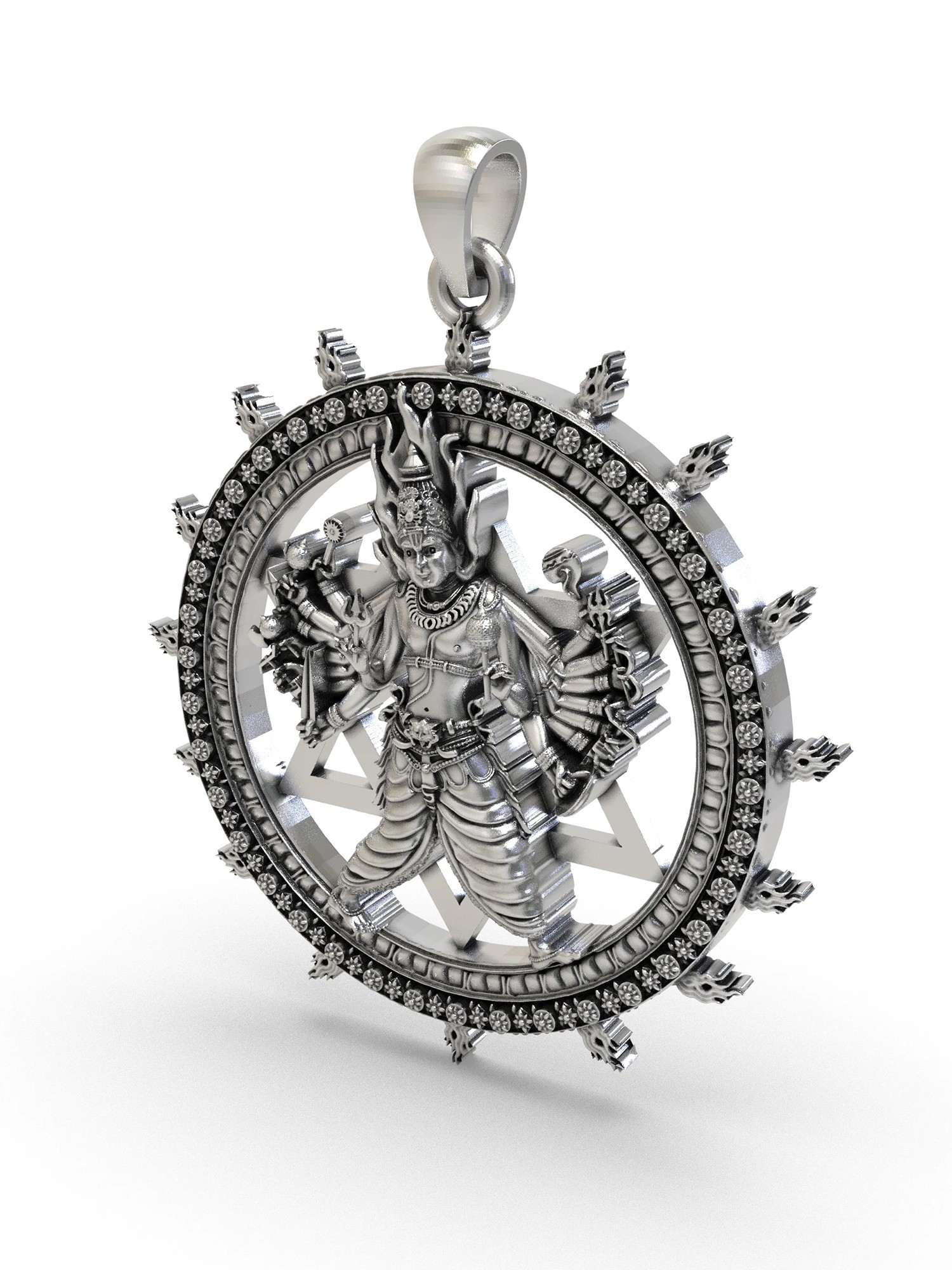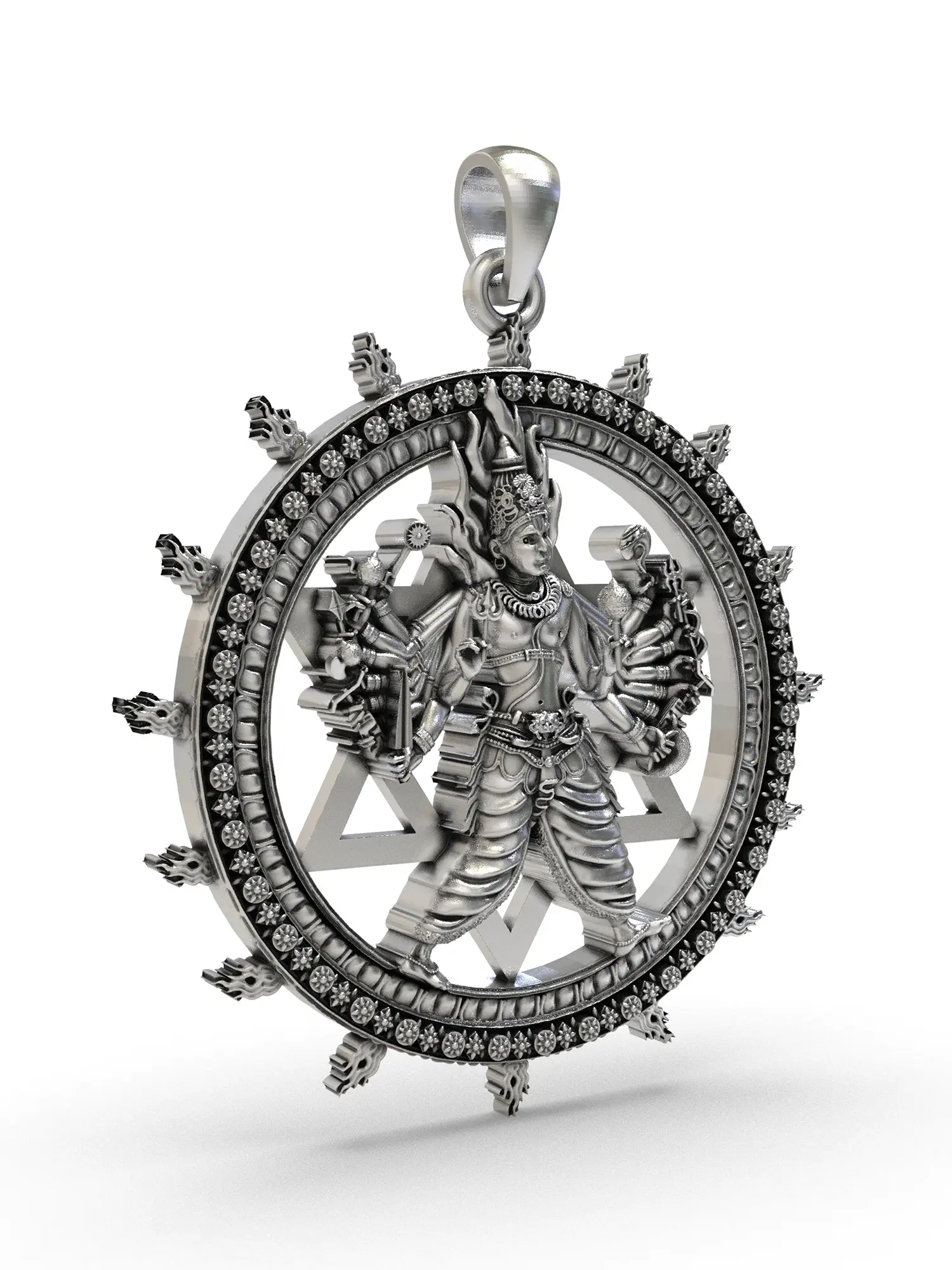 Lakshmi Narayan Sitting on Lotus - Sterling Silver Pendant