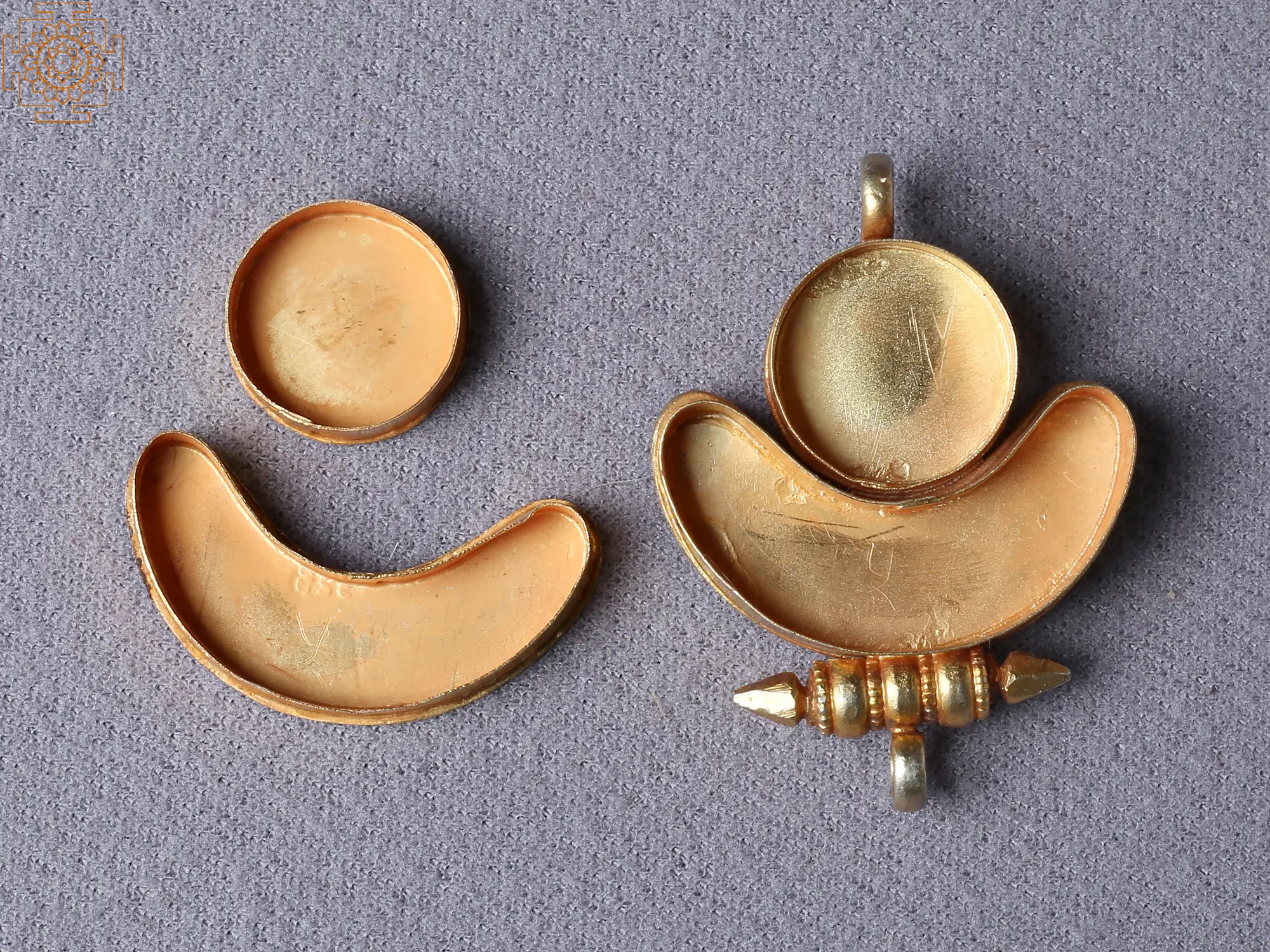 Sun and moon pendants are worn to bring balance to life. Moonlight is well known as a soul-charging element and the sunlight is believed to infuse warmth and creative energy. The pendants carry both motifs and are considered sacred. This Sun and Half Moon Ghau Pendant Silver Gold-Plated pendant is made of silver and gold plated. Elegant floral motifs decorate the face of the pendant.