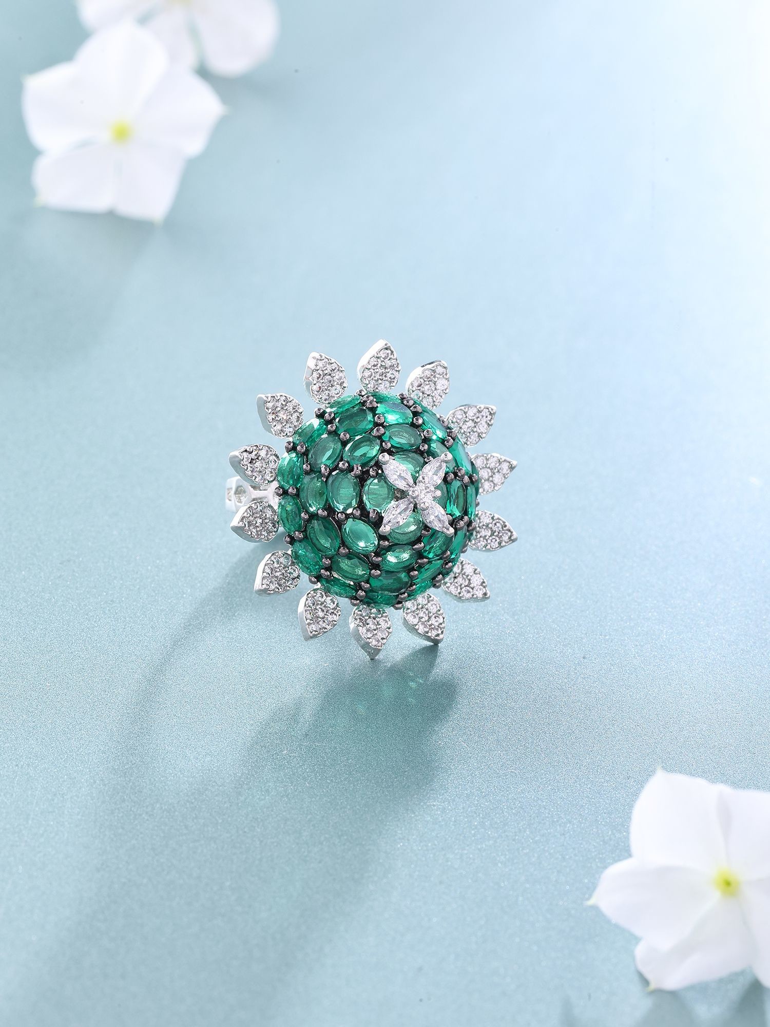 Floral Swirl Design Adjustable American-Diamond Cocktail Ring