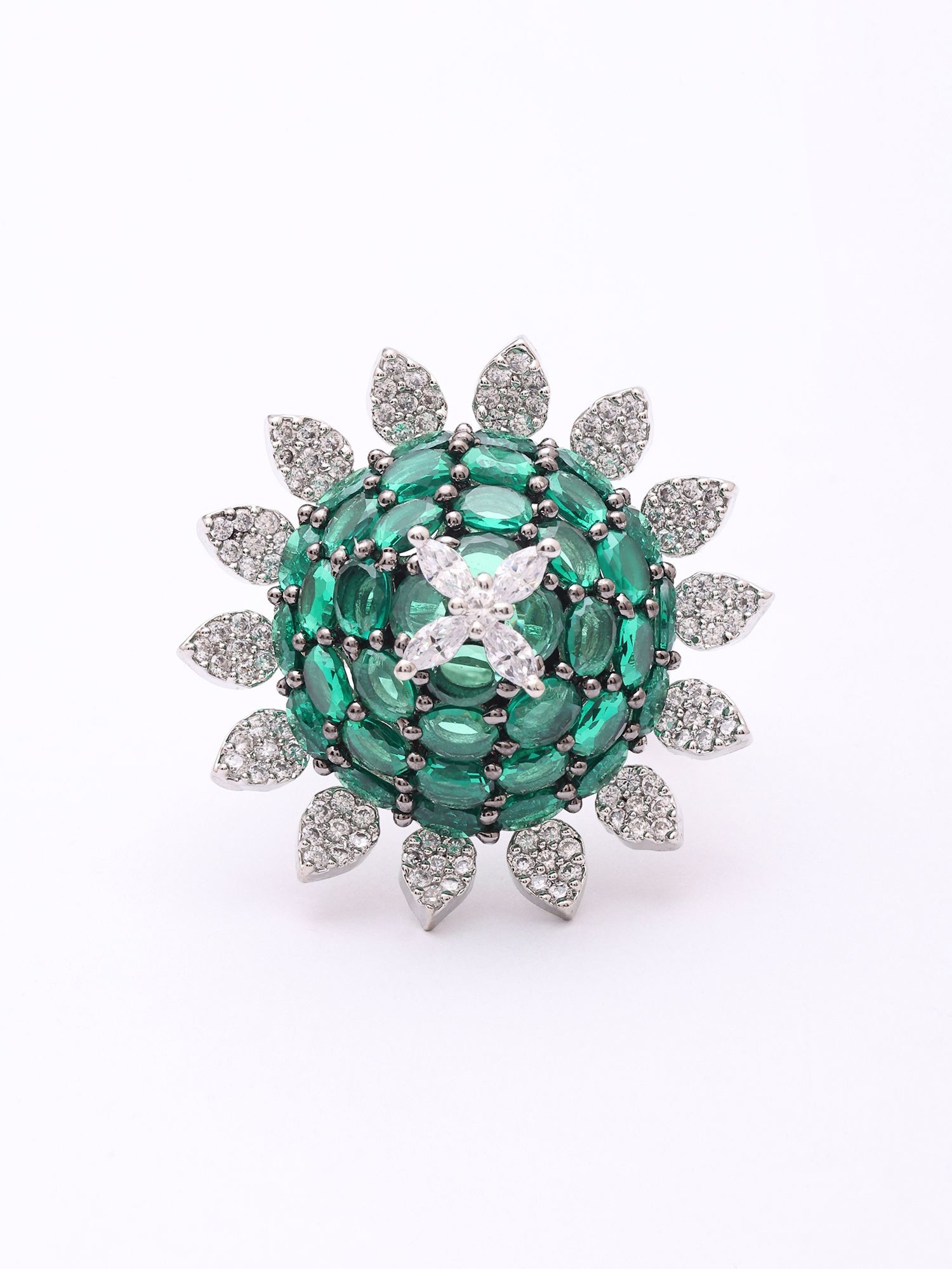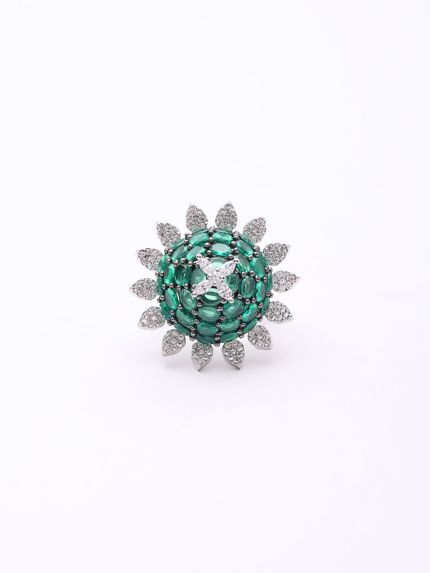 Sunburst Floral Design American-Diamond Stone Studded Adjustable Ring