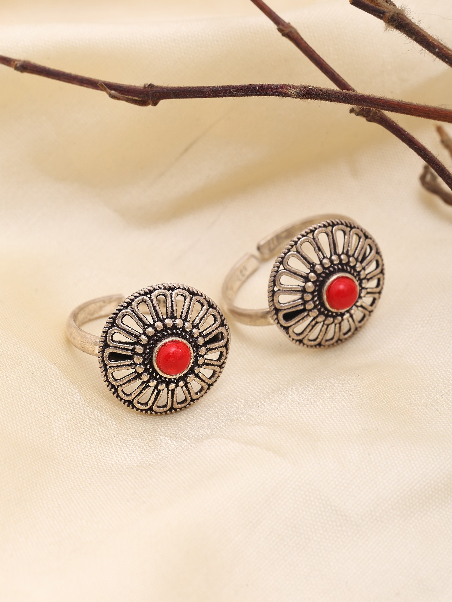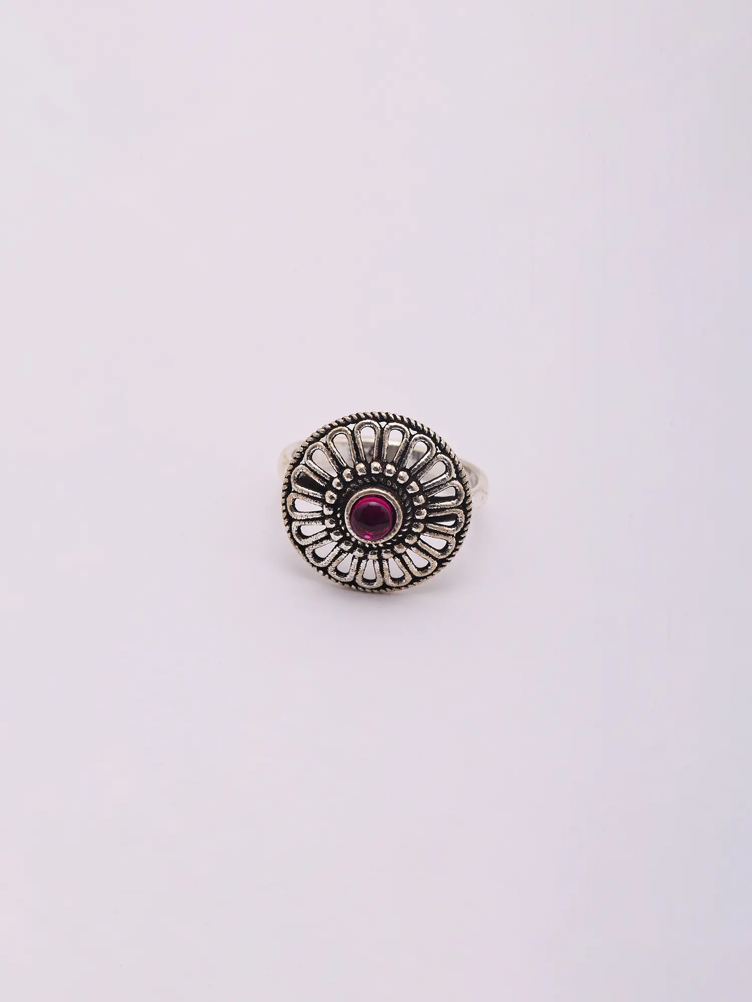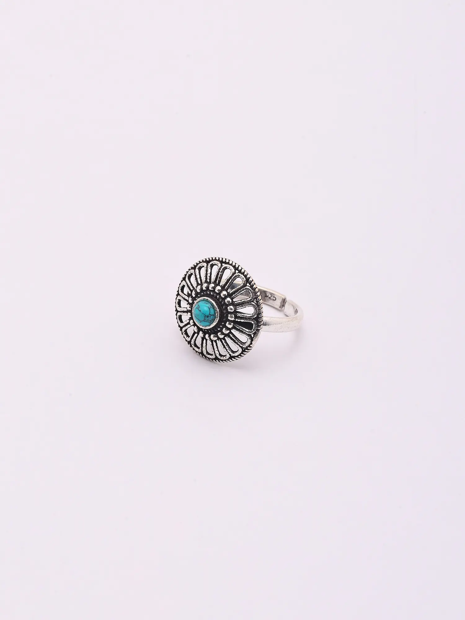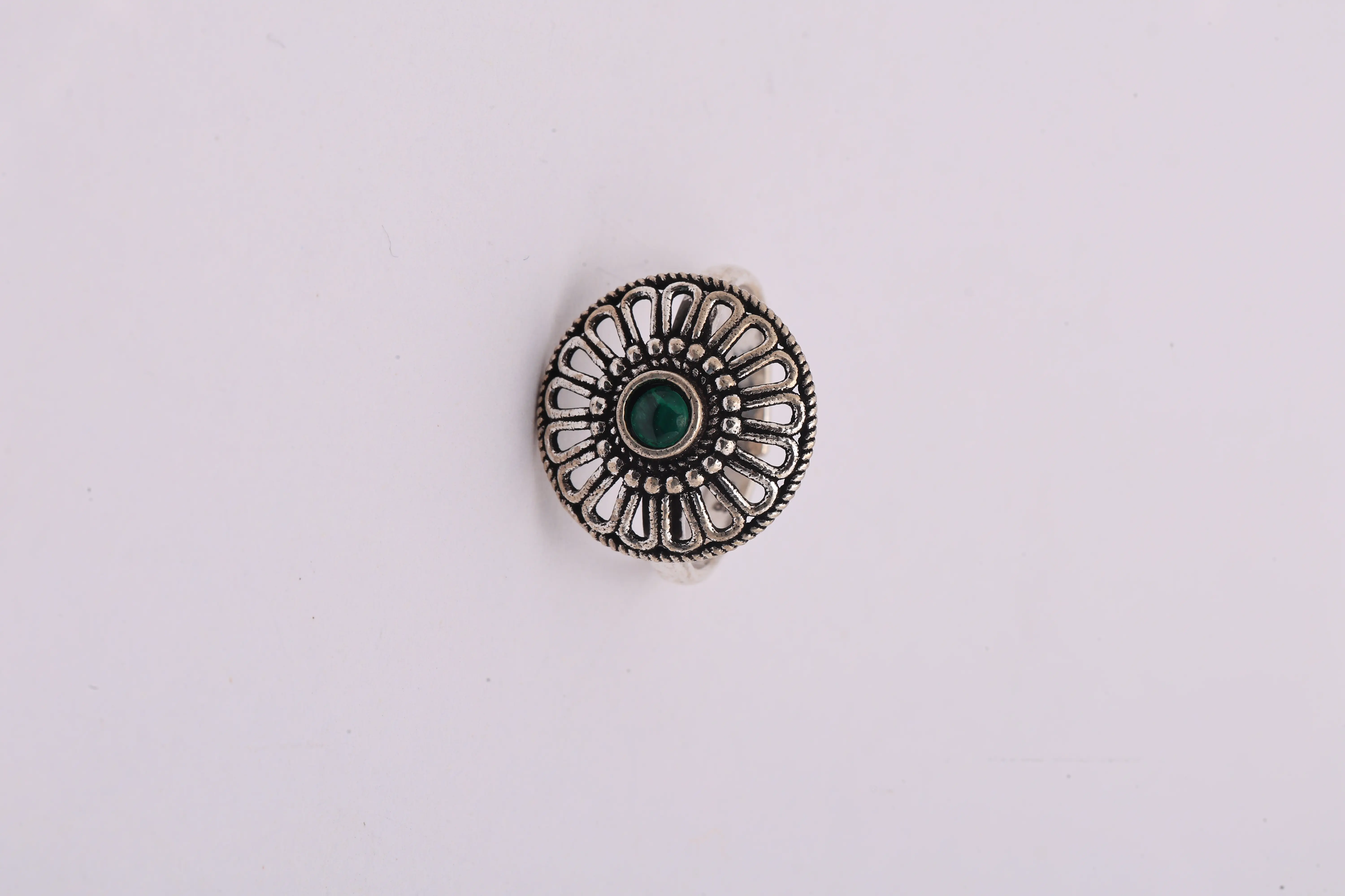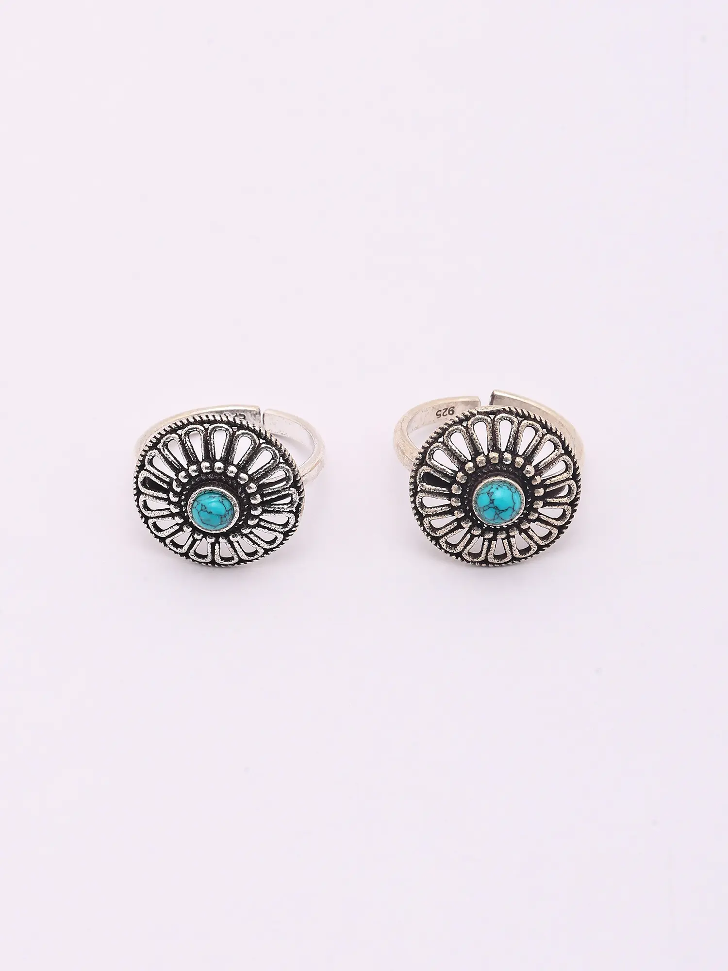 Sunflower-Inspired Oxidised Silver Adjustable Toe Ring with Gemstone