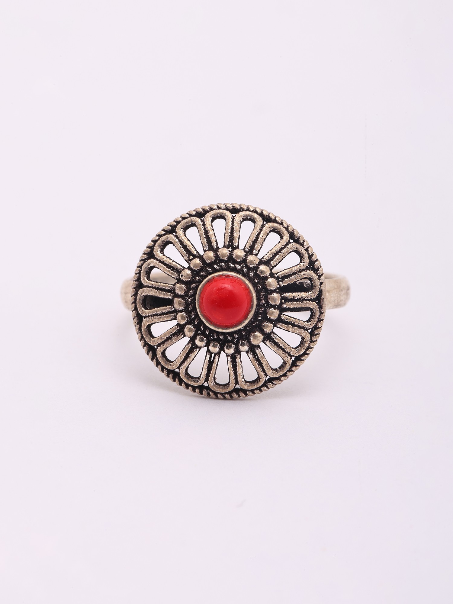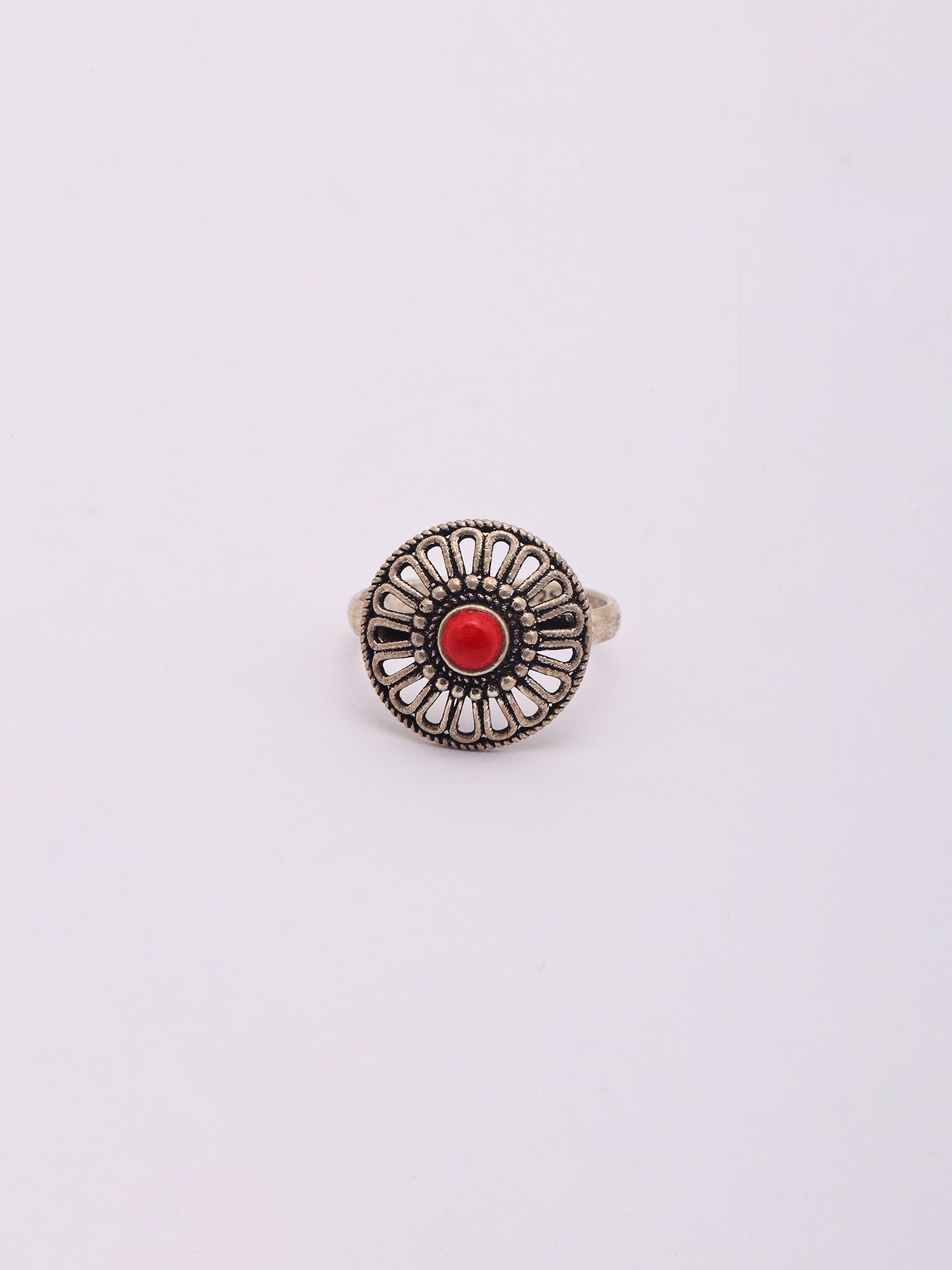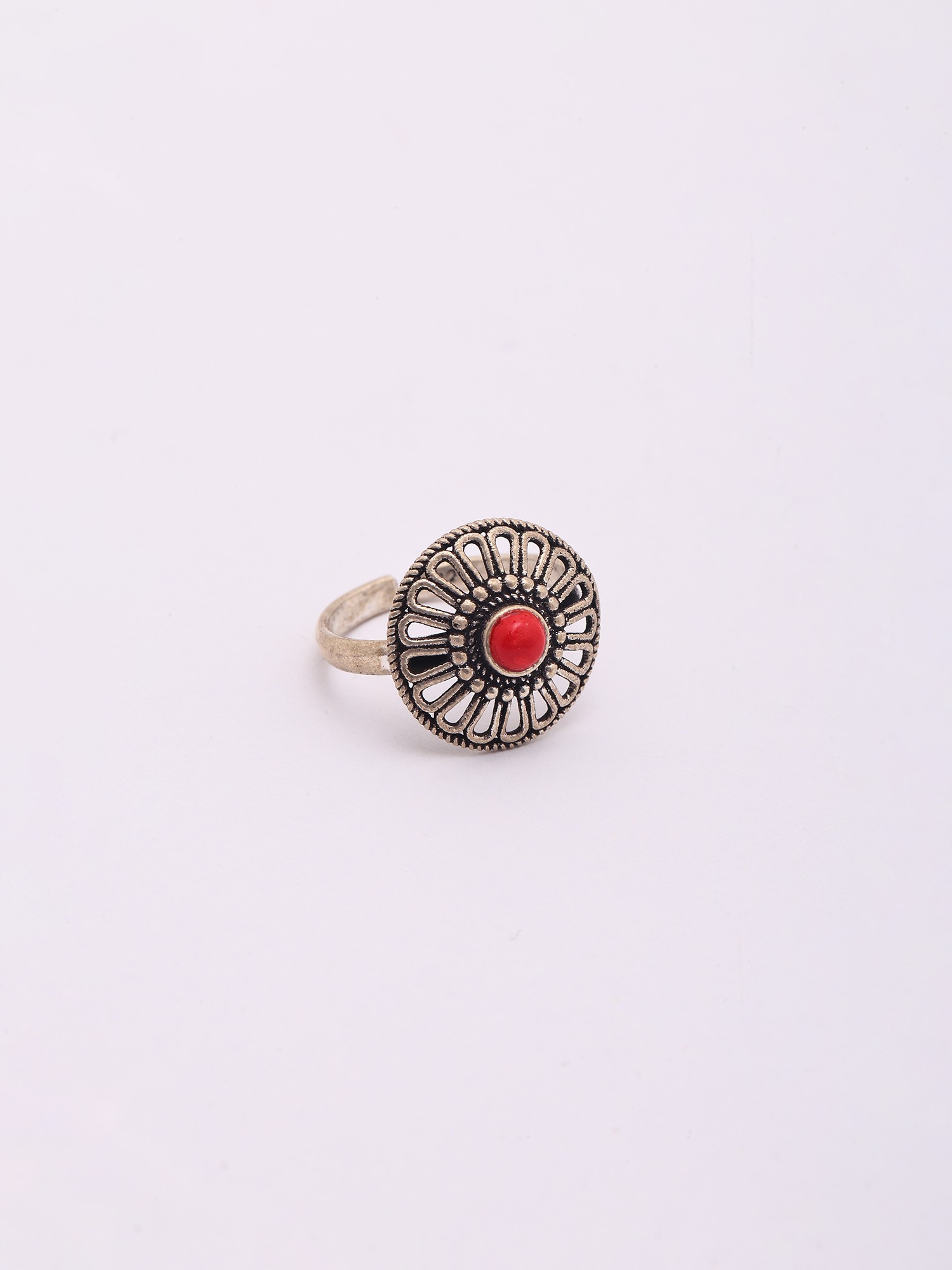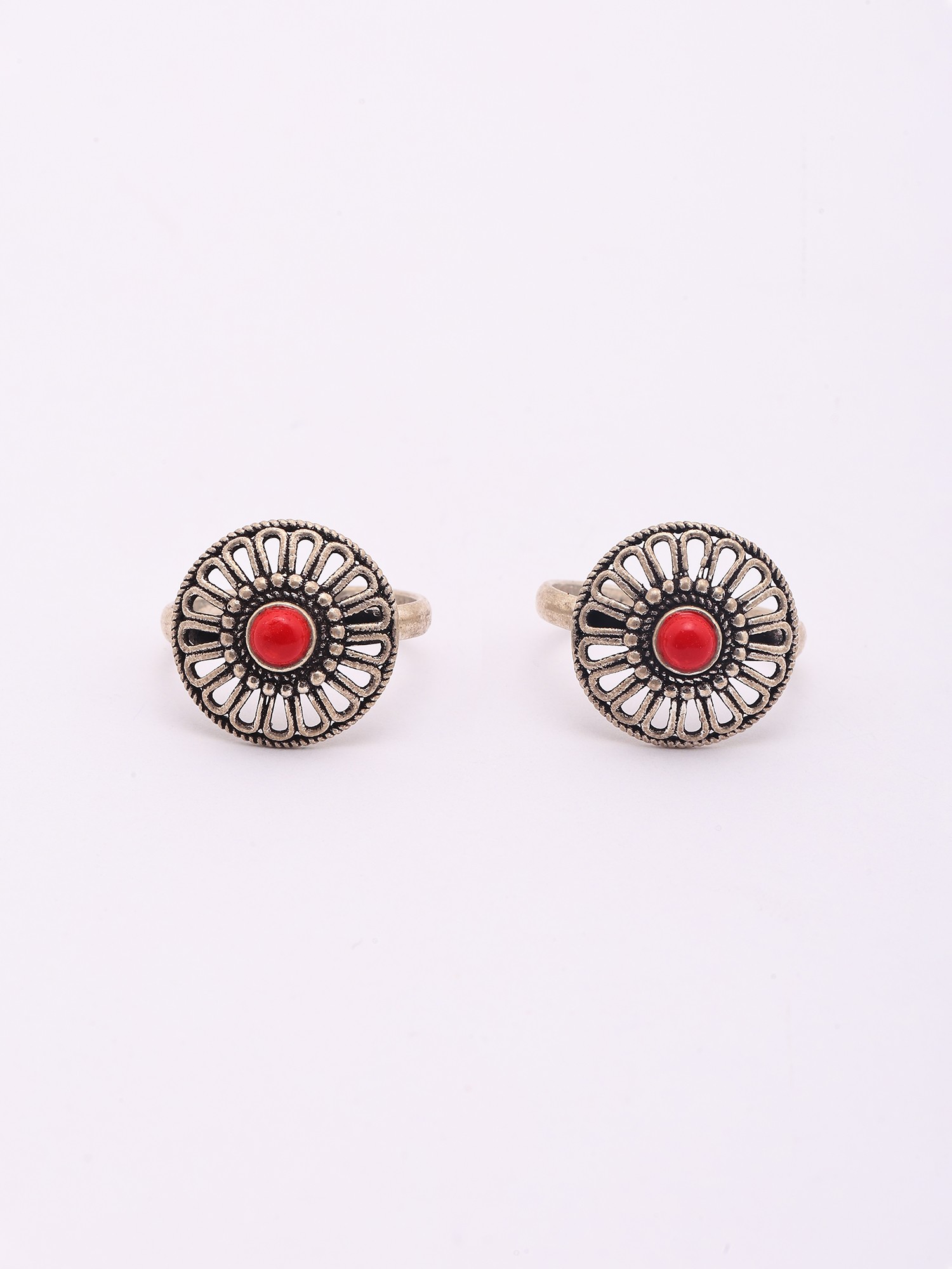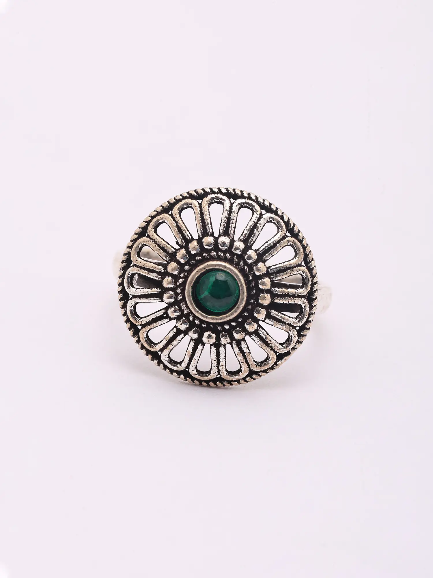 Sunflower-Inspired Oxidised Silver Adjustable Toe Ring with Gemstone