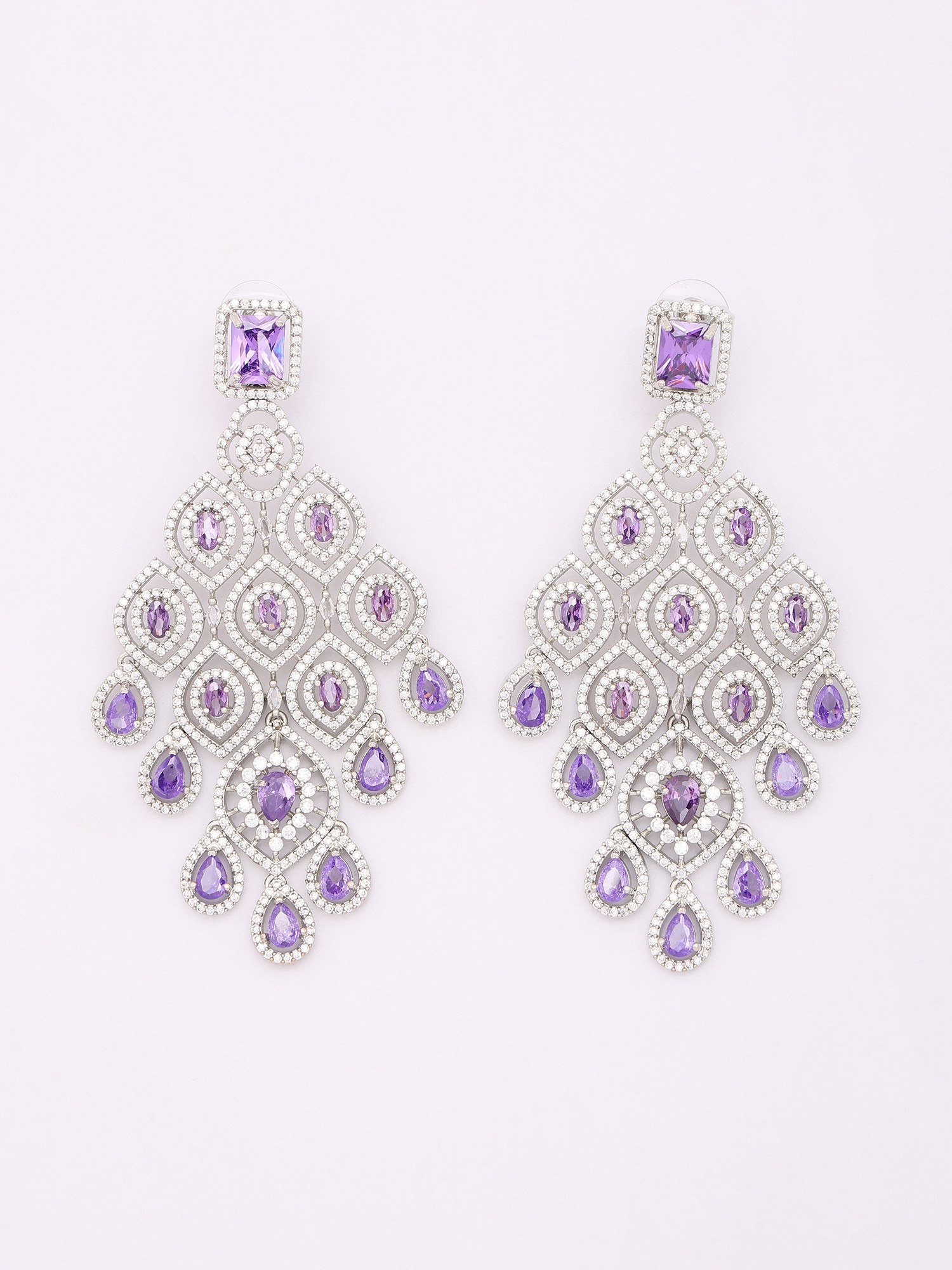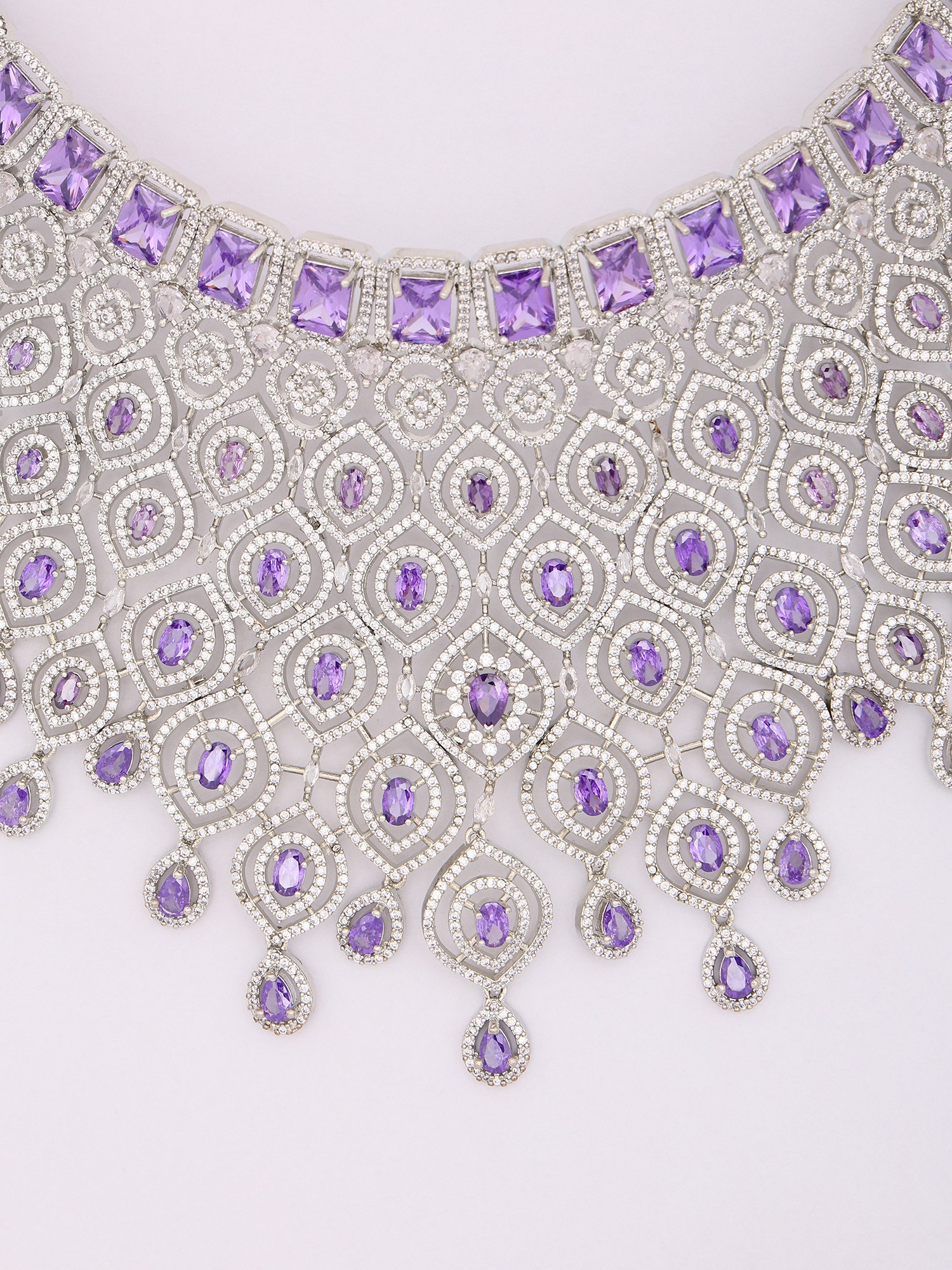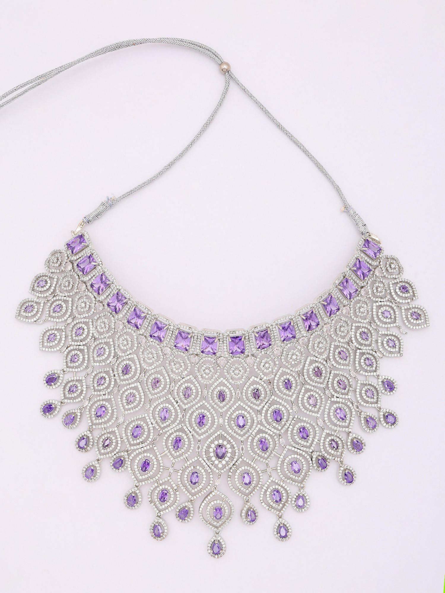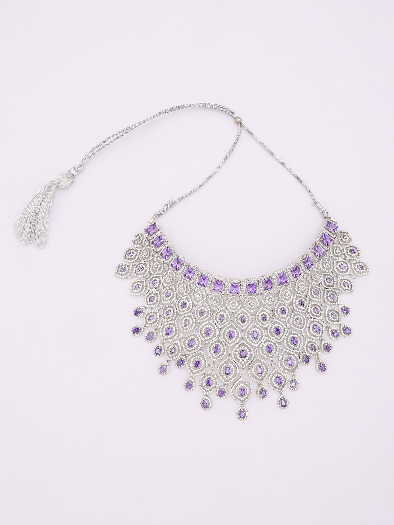 Superfine Royal Purple American-Diamond Bridal Necklace Set with Mangtika