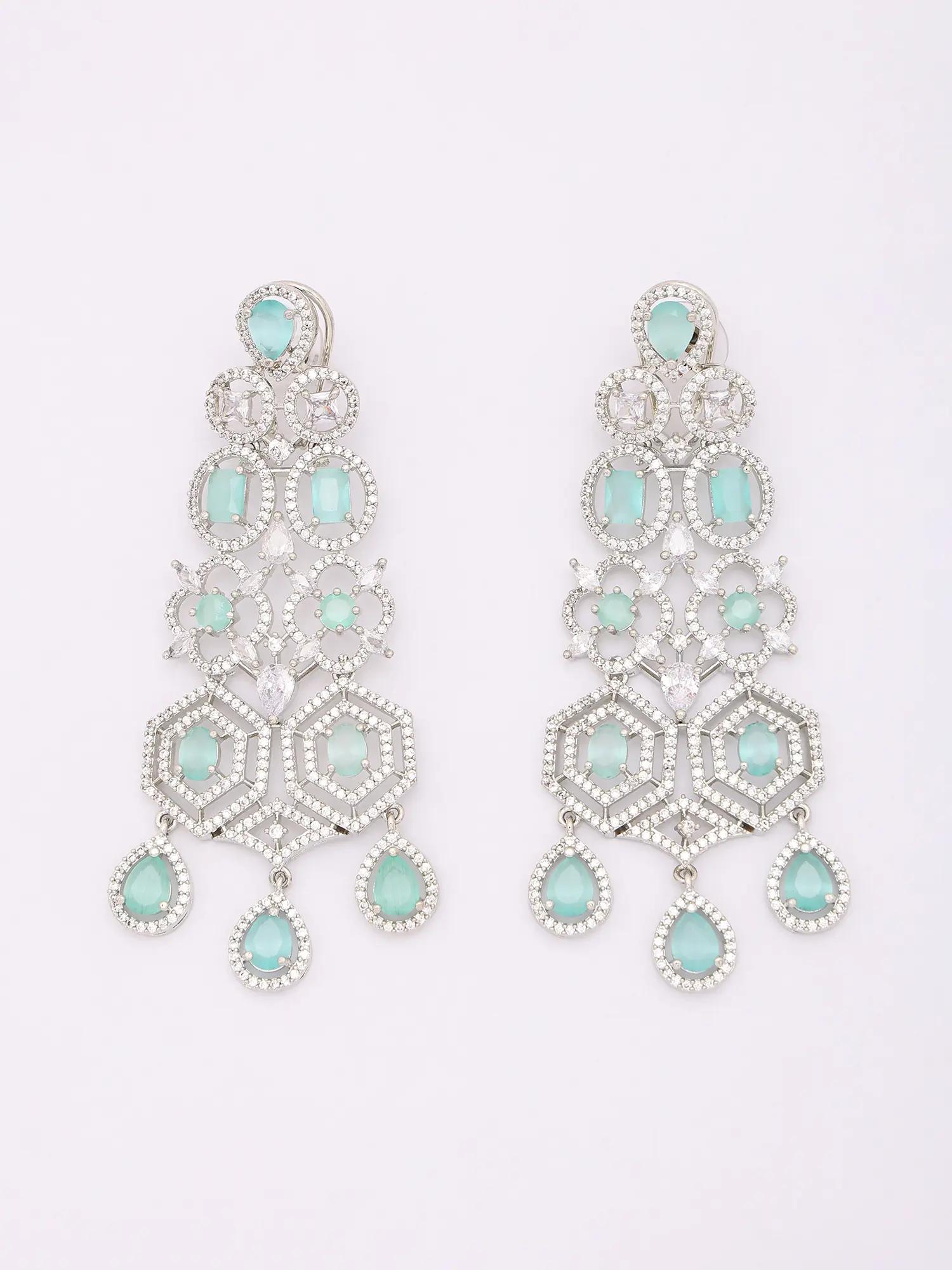 Features a striking teardrop design accented with brilliant American diamonds.