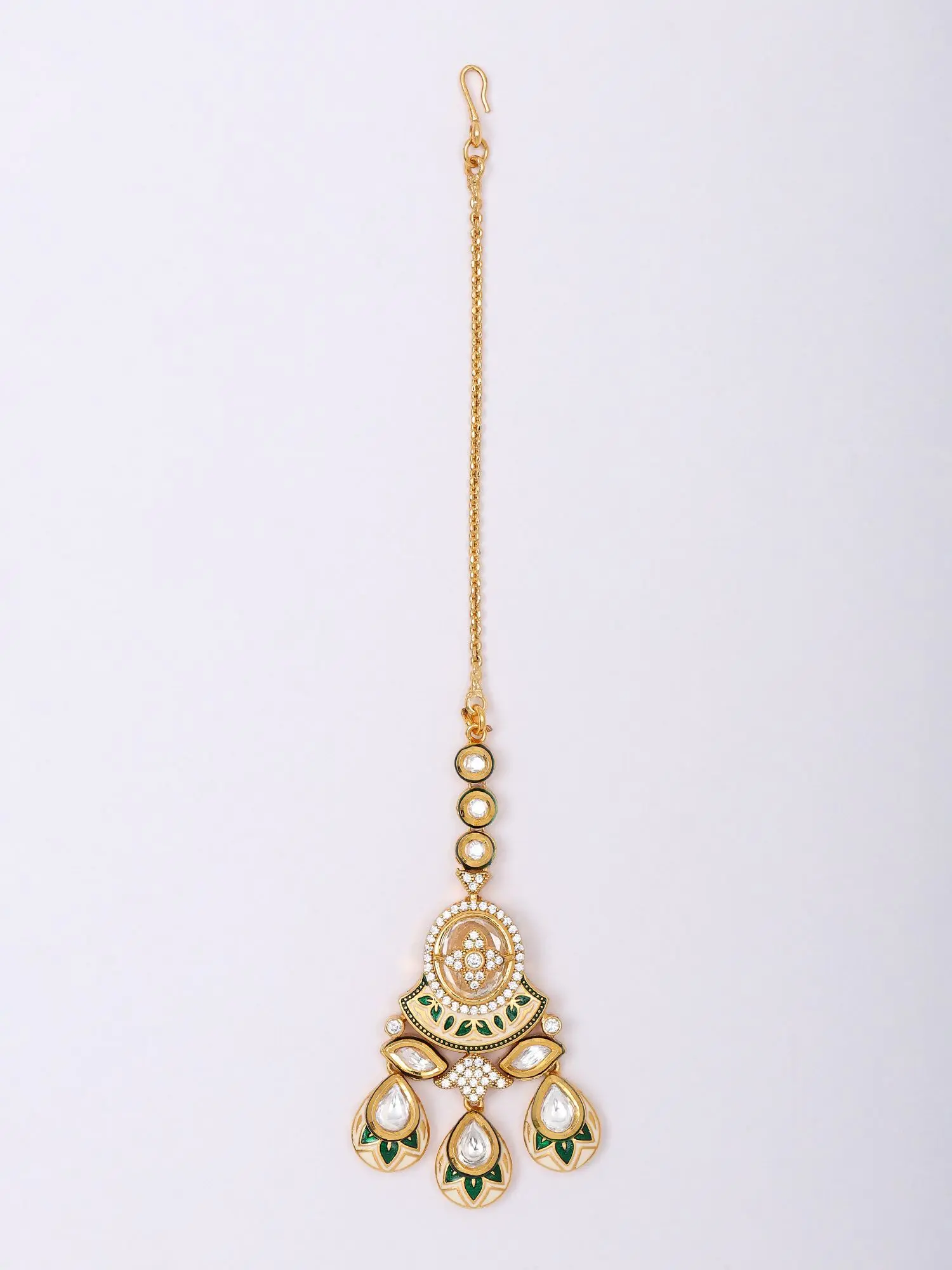 Stone Studded Kundan Meenakari Crescent Style Maang Tikka with Bead Drops
