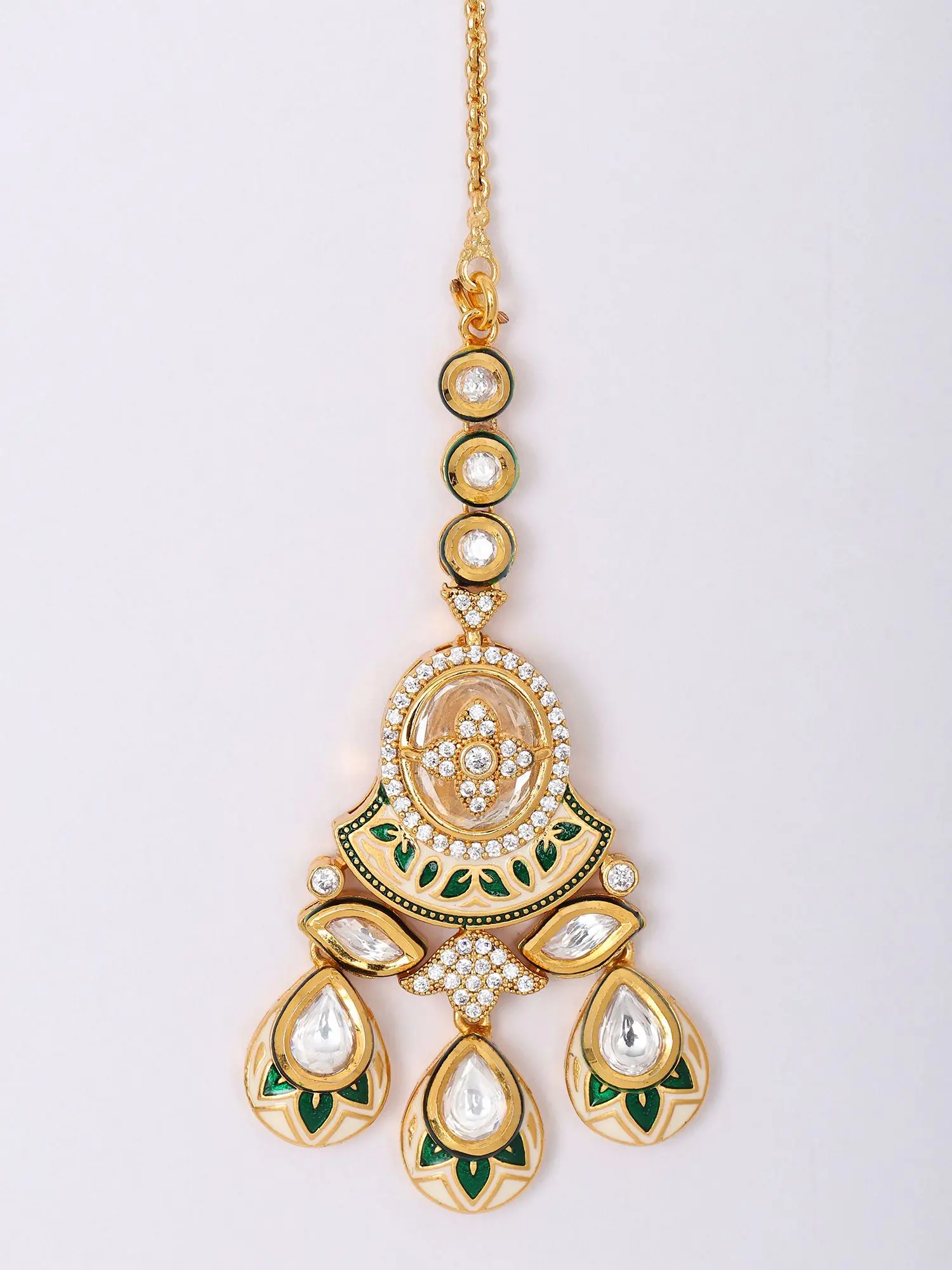 Teardrop Dangling Maang Tikka with Meenakari Stone Studs