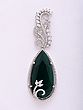 Features a prominent, deep green pear-cut gemstone, reminiscent of emeralds.