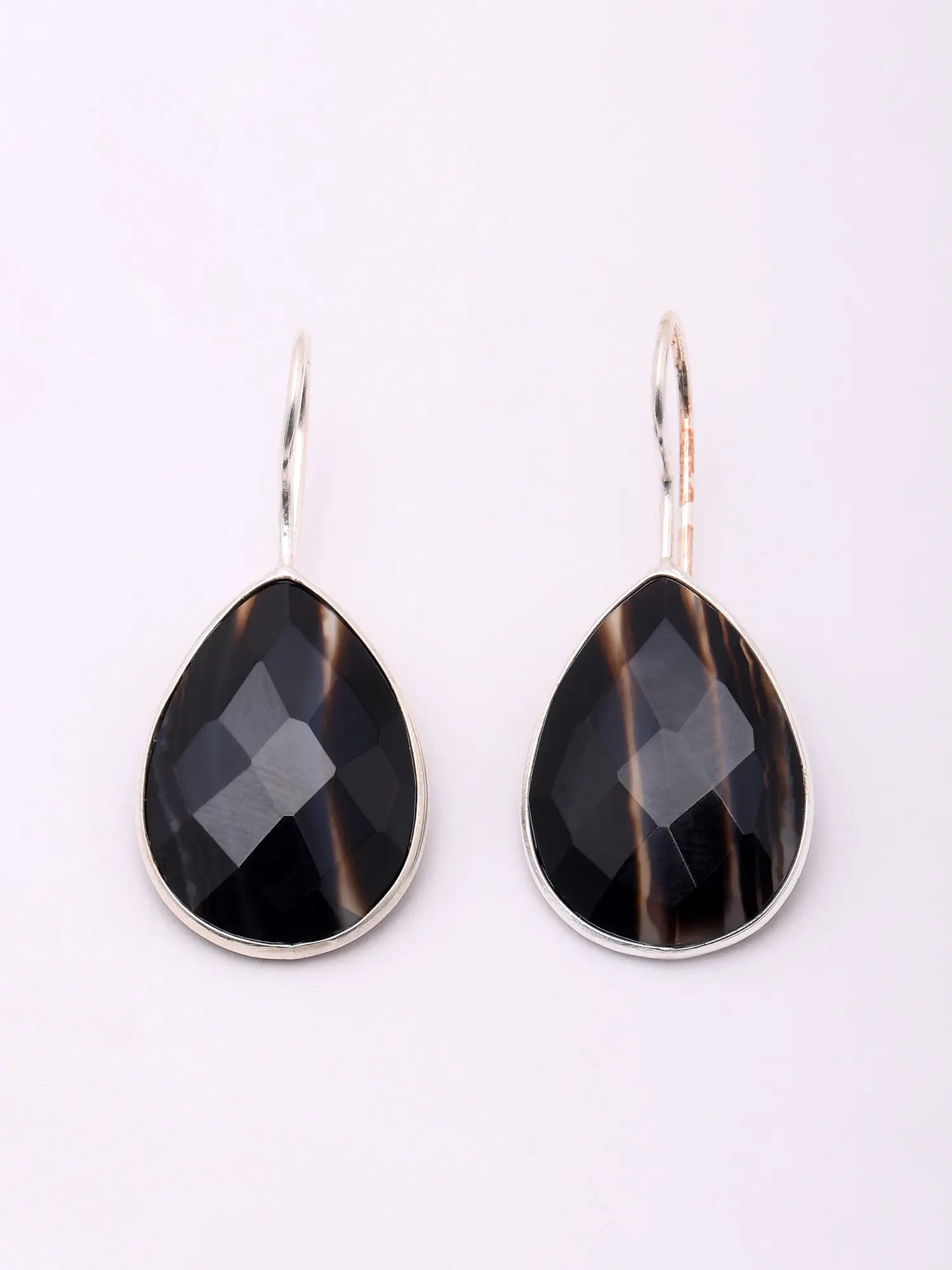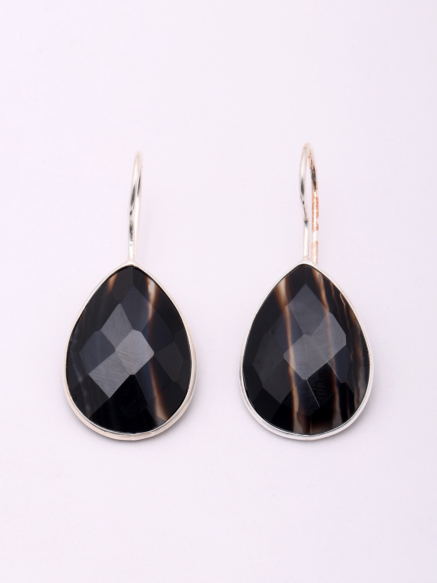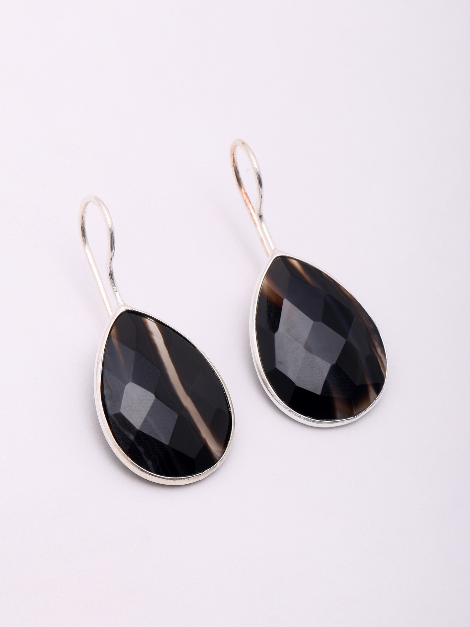 Teardrop Shape Faceted Black Banded Agate Earrings