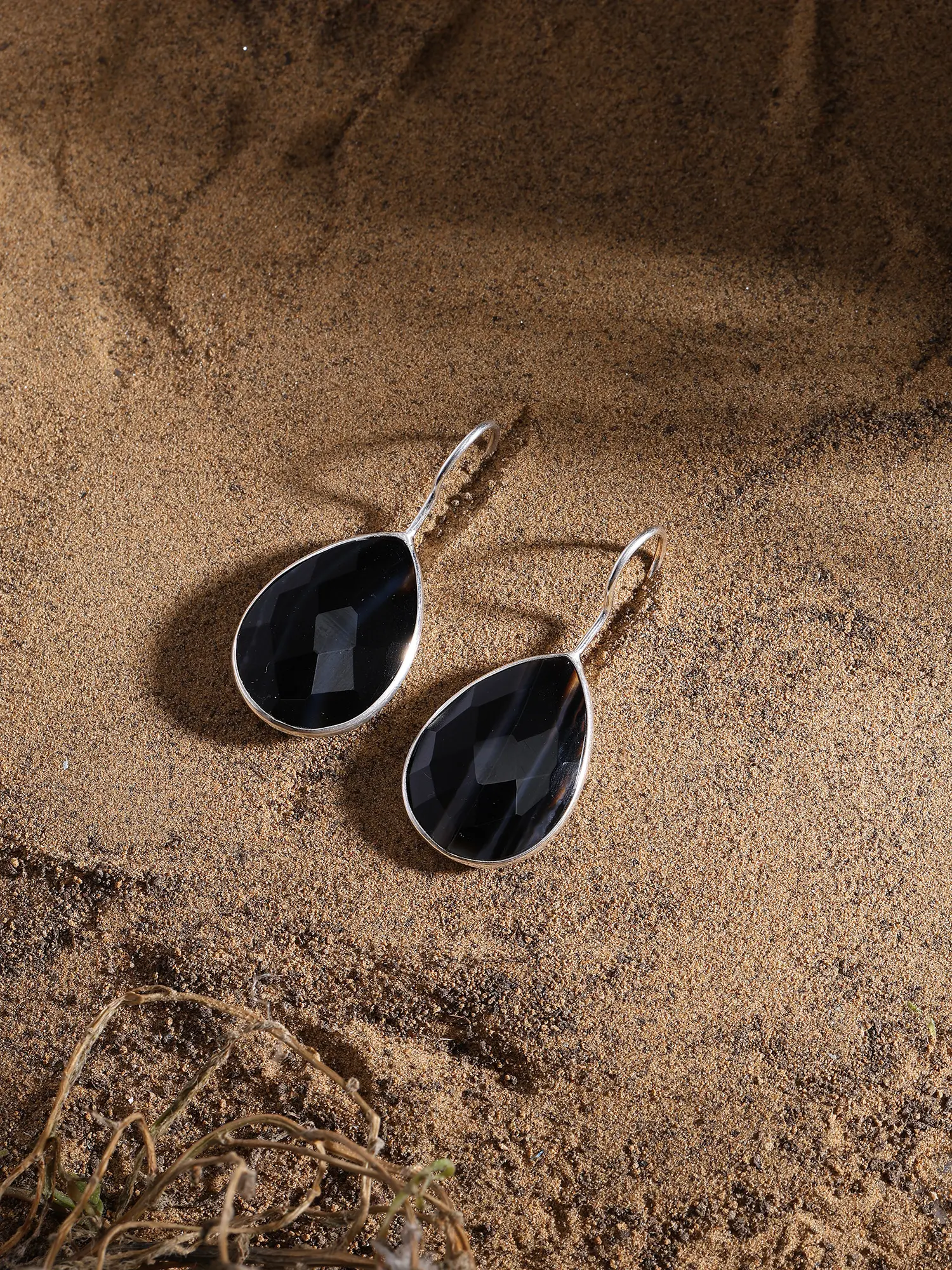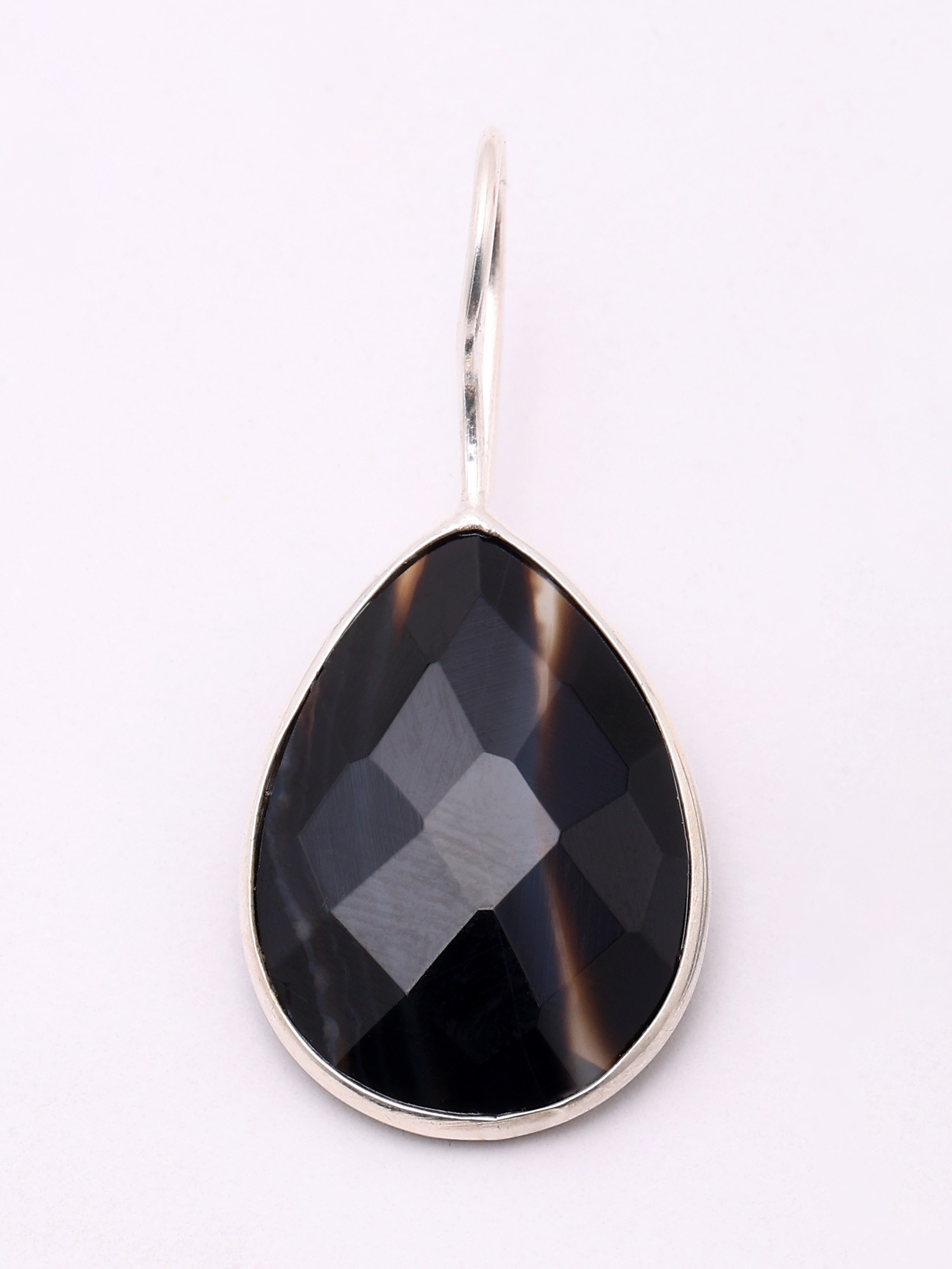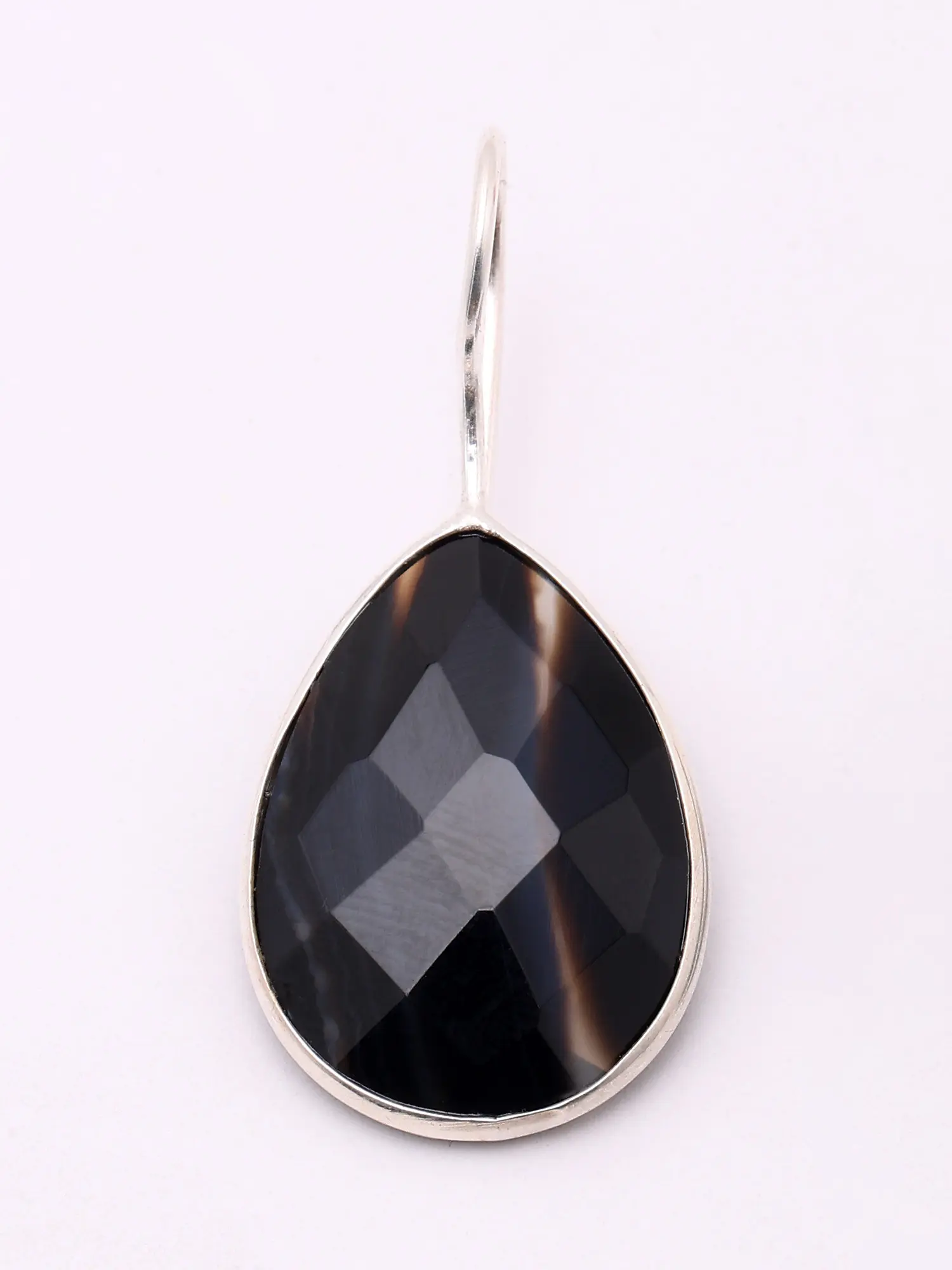 Teardrop Shape Faceted Black Banded Agate Earrings