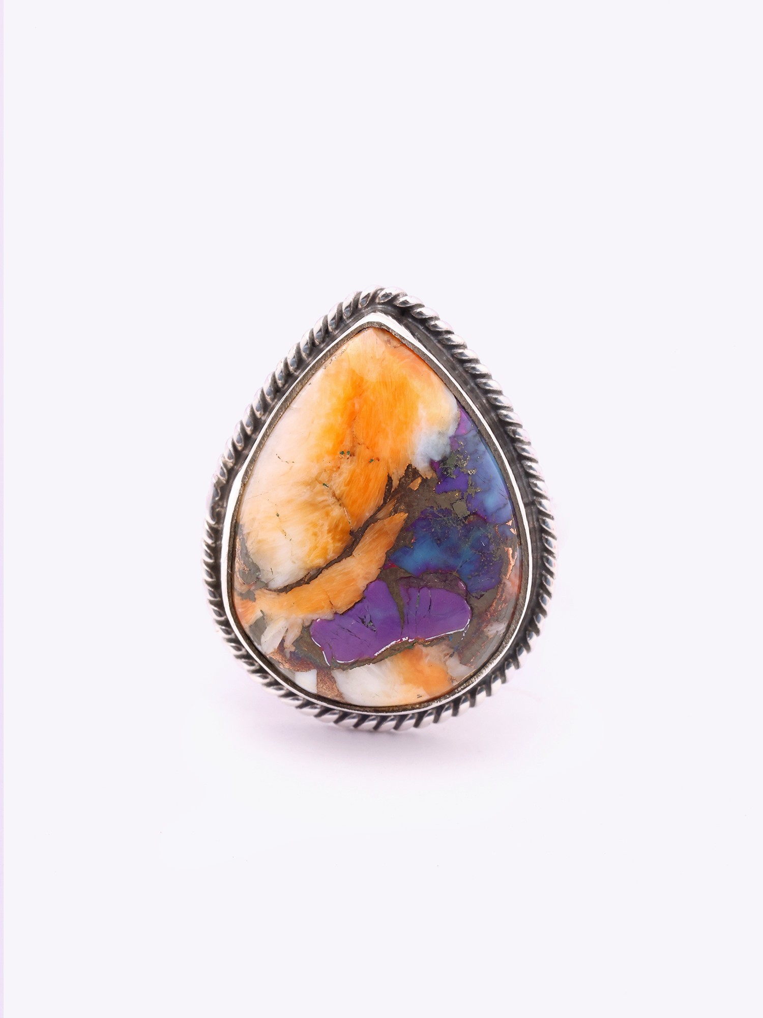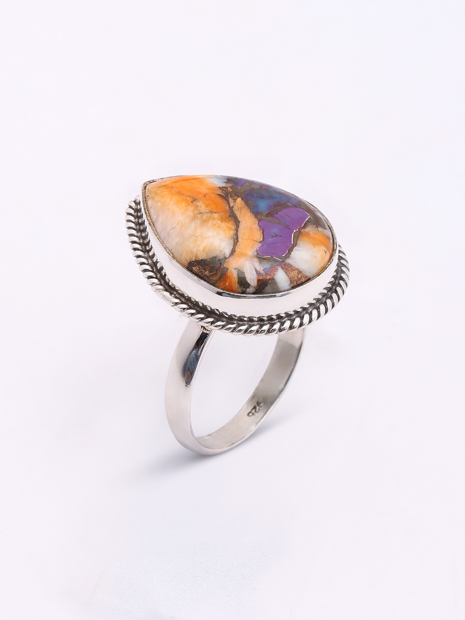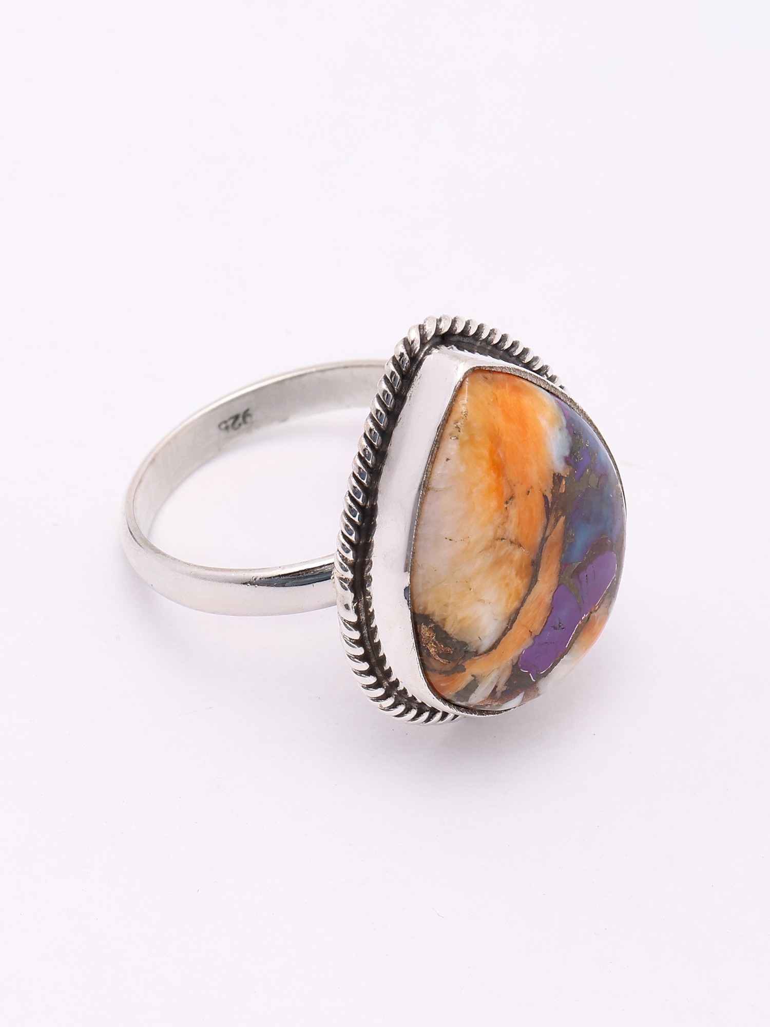 Chic Sterling Silver Ring with Reconstituted Turquoise Stone