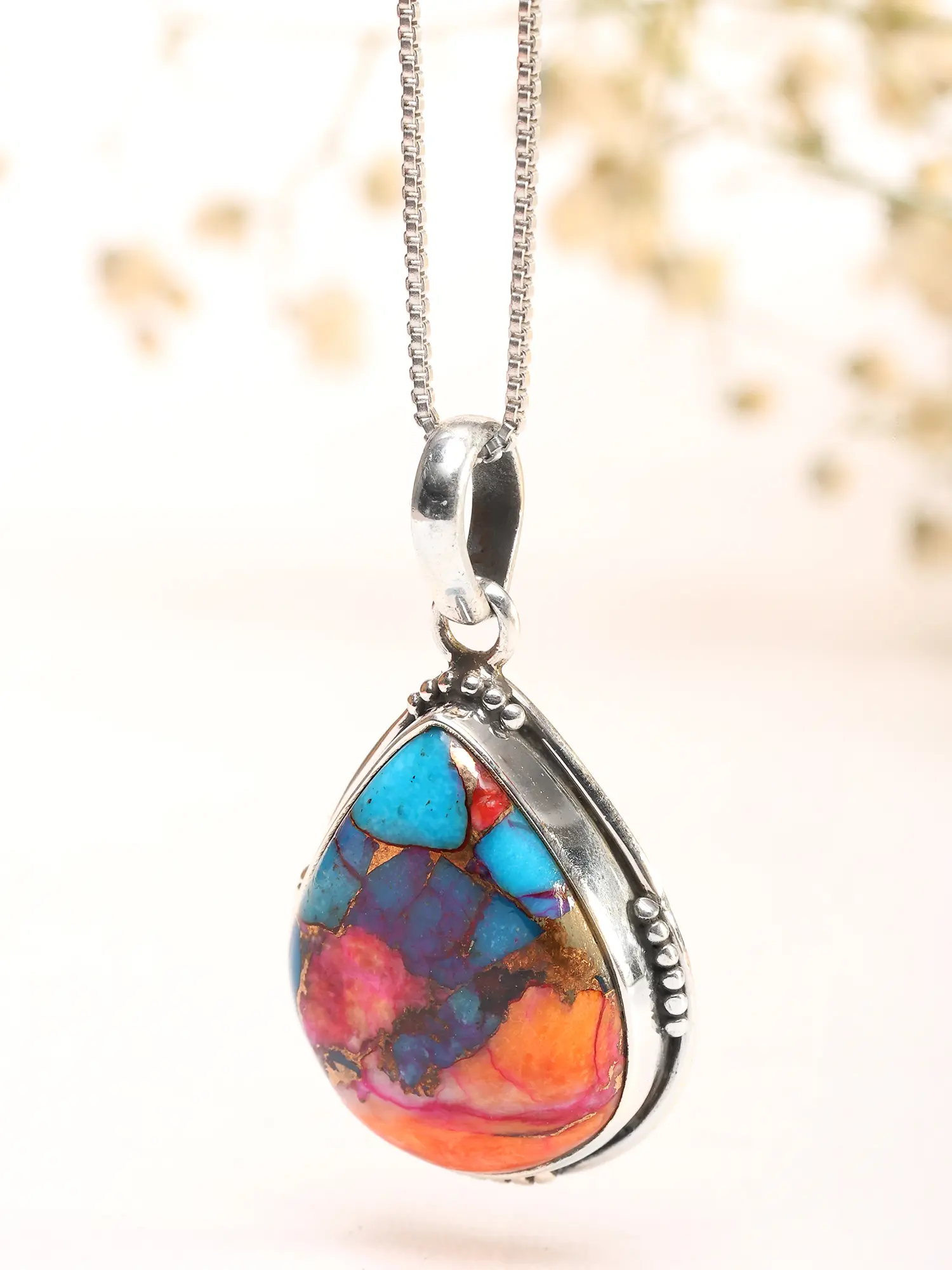 Stelring Silver Pendant with Persian Turquoise