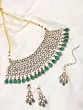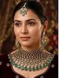 Green Stone Studded Traditional Kundan Bridal Choker Necklace Set with Earrings