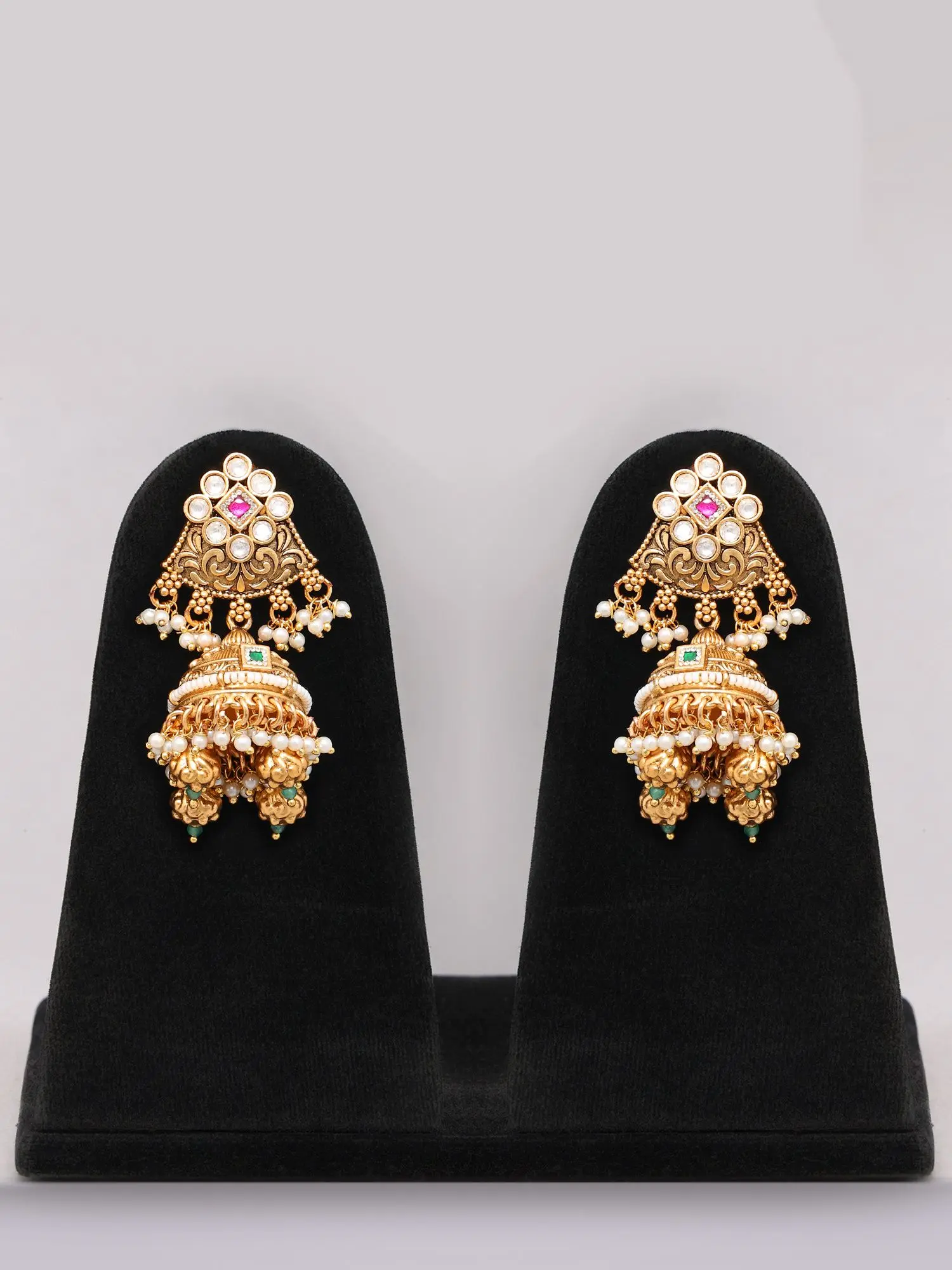 Meenakari Jhumka Earrings with Polki Stones and Pearl Drops