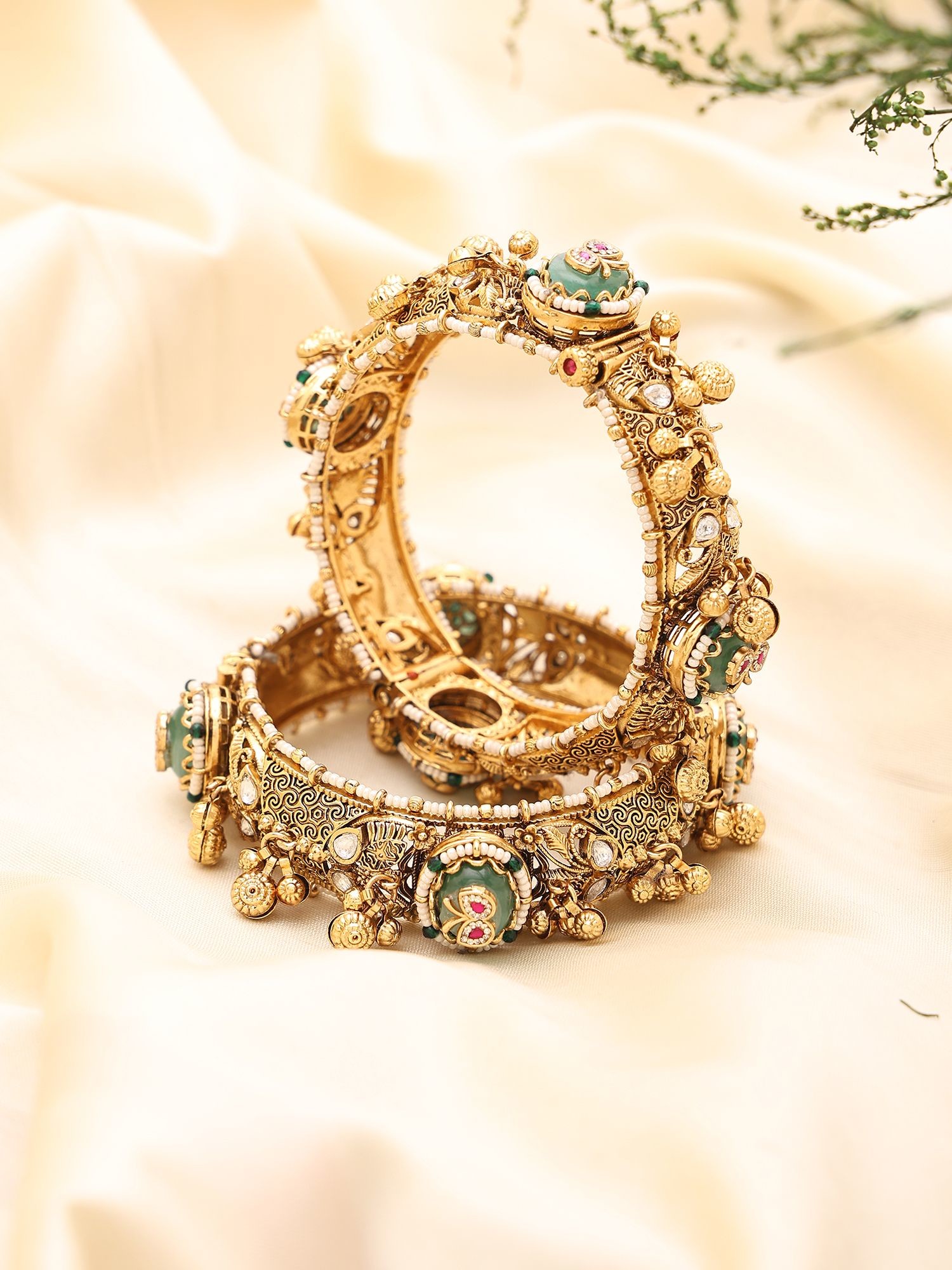 Antique Finish Kundan Bangles with Multi-Color Stones (Pair)
