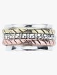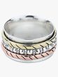 Crafted from durable sterling silver with complementary gold and rose gold tone spinning bands.