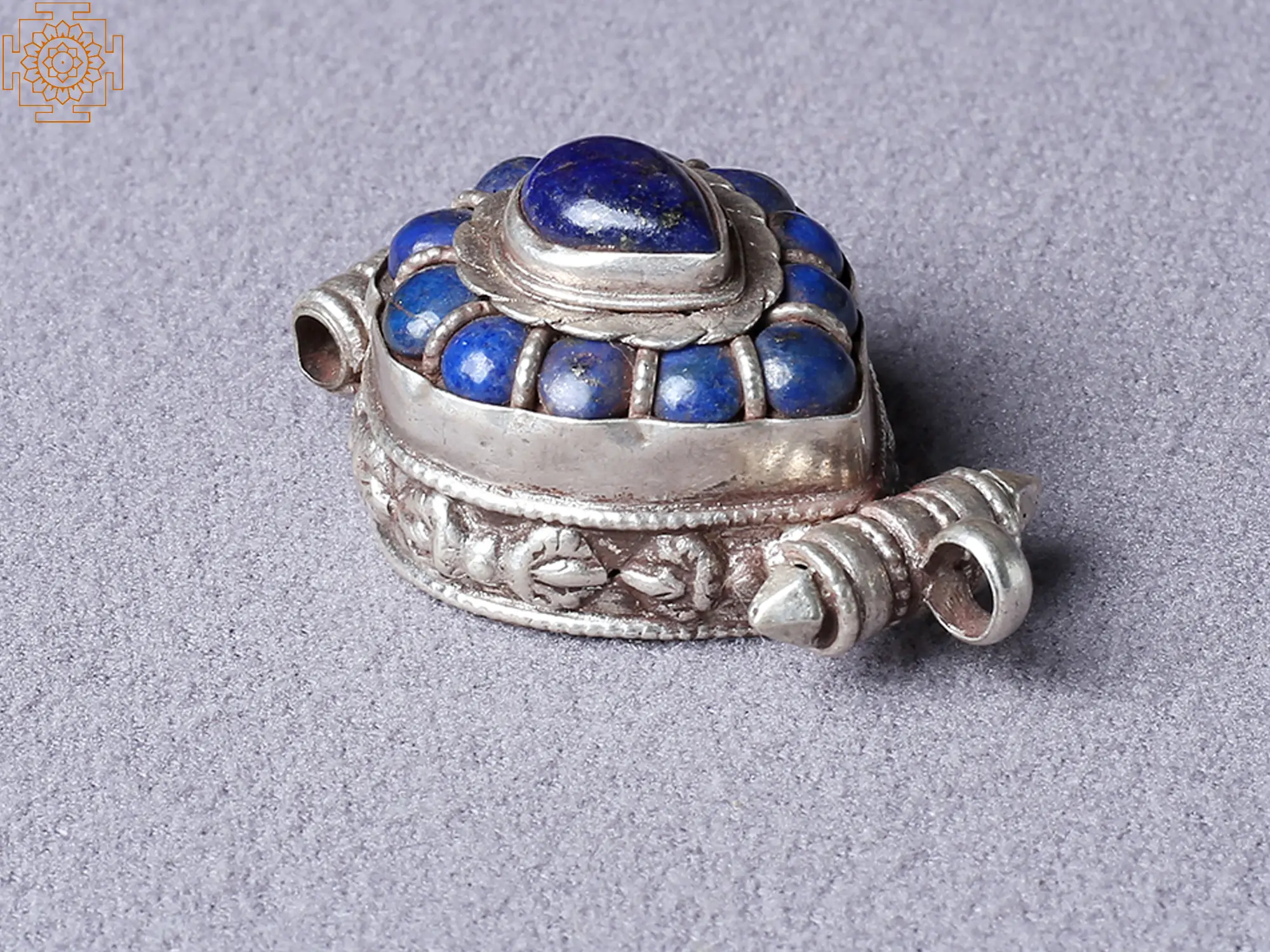 Tibetan Ghau are sacred amulets that can carry prahey scrolls inside the compartment made behind the pendant. This Ghau carries a teardrop shape as the basic structure and the look is elevated with the use of blue Lapis Lazuli arranged in a beautiful shape. Inspired by the rich cultural heritage of Nepal, this pendant seamlessly blends tradition with contemporary elegance, inviting you to embark on a journey where craftsmanship and style converge.