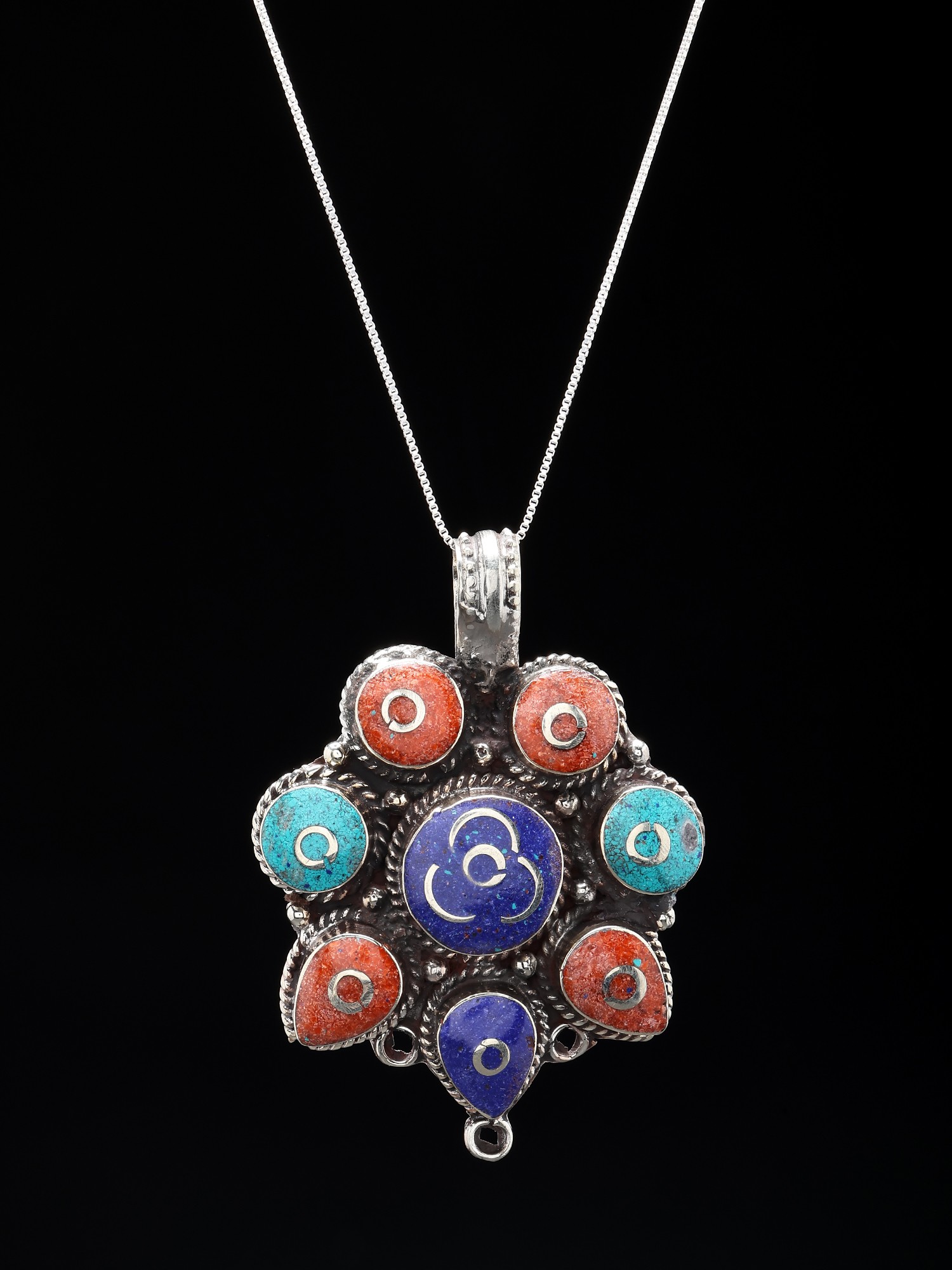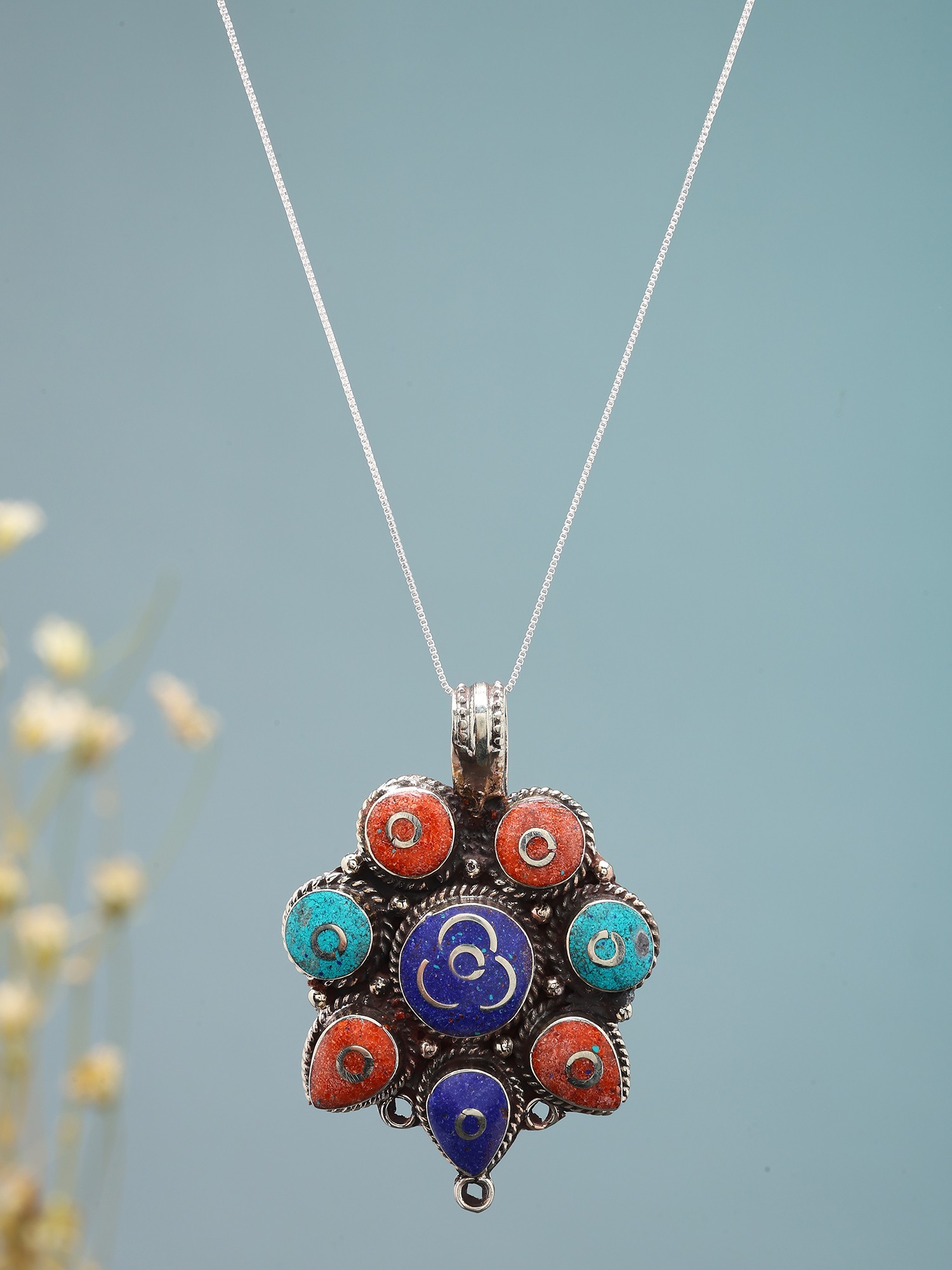 Red Stone Buddha Sterling Silver Pendant with Precious Gemstone